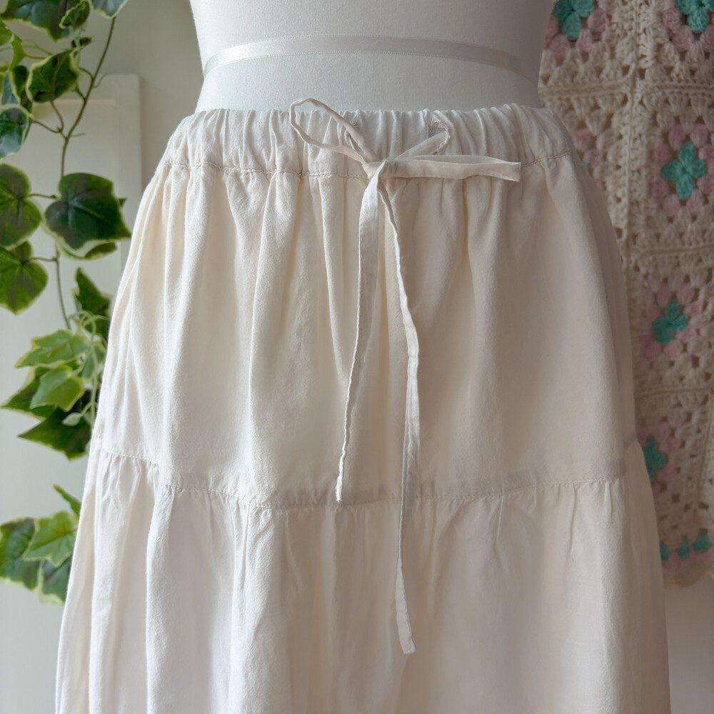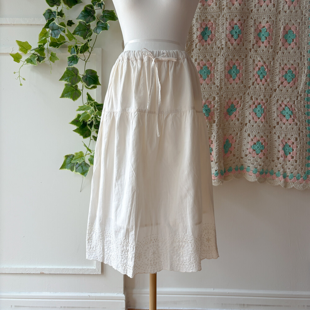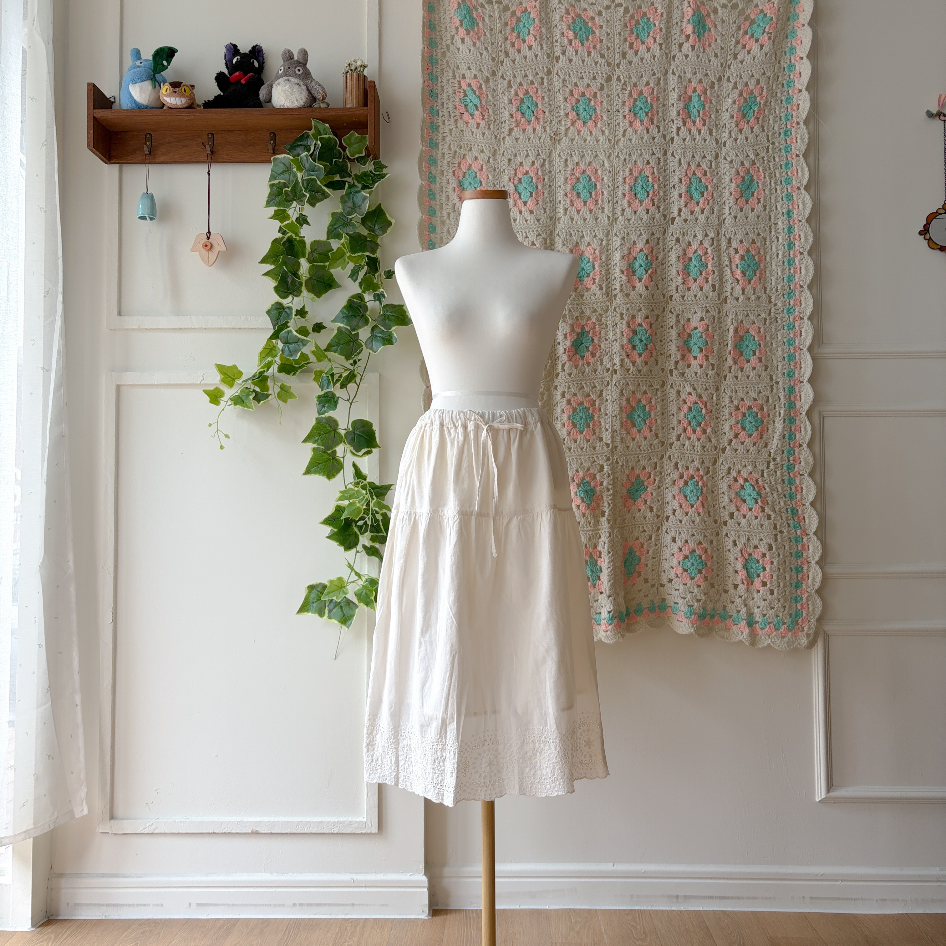 아이보리 색감의 밑단자수 펀칭 플레인 스커트예요