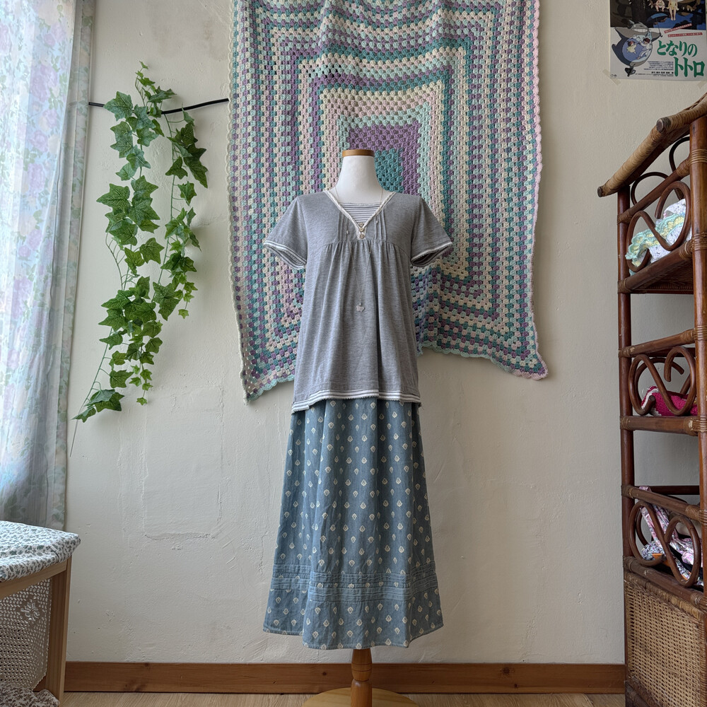 그레이 색감의 반소매 티셔츠예요