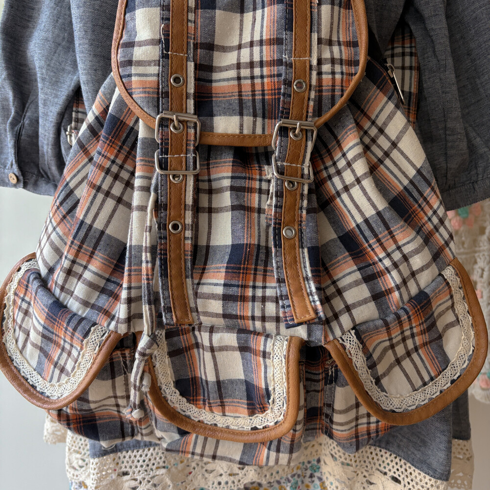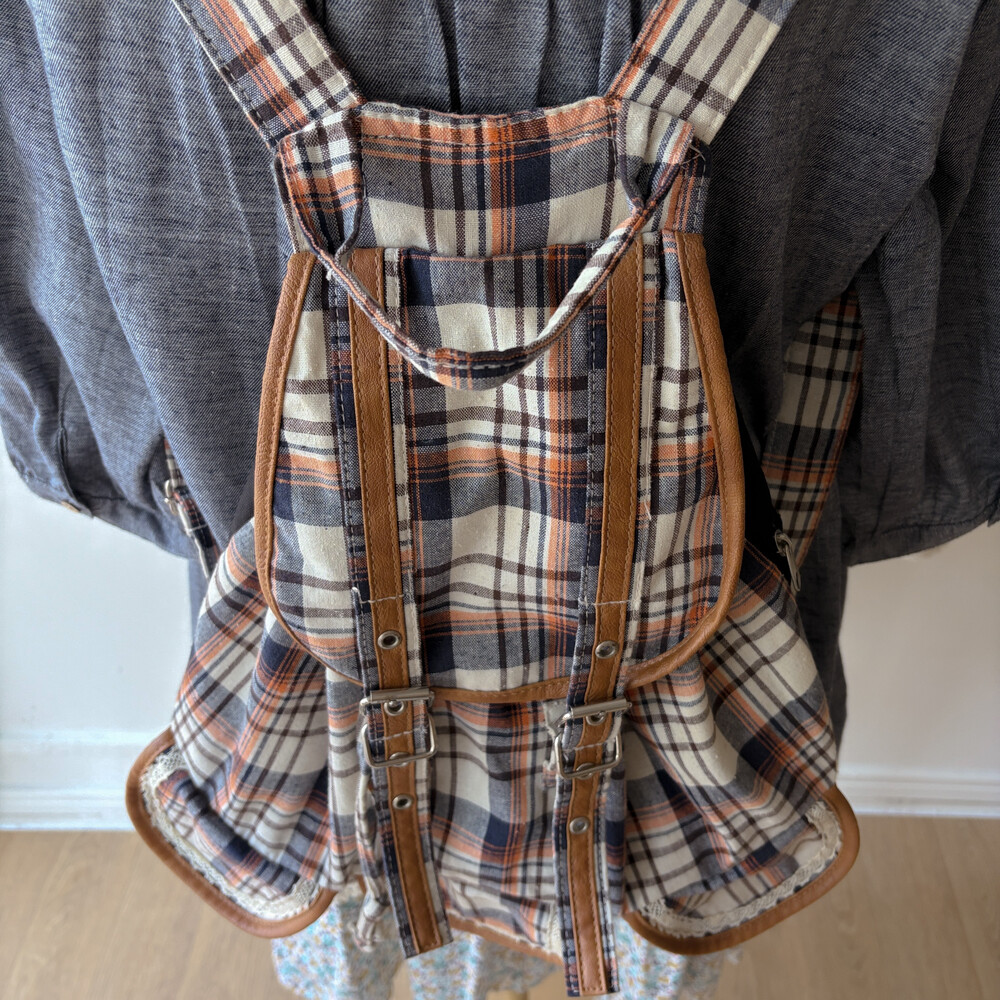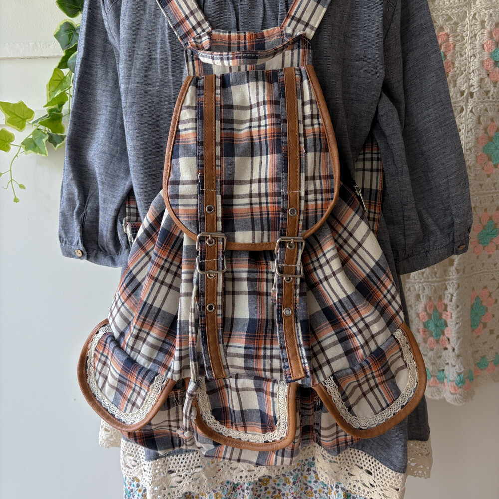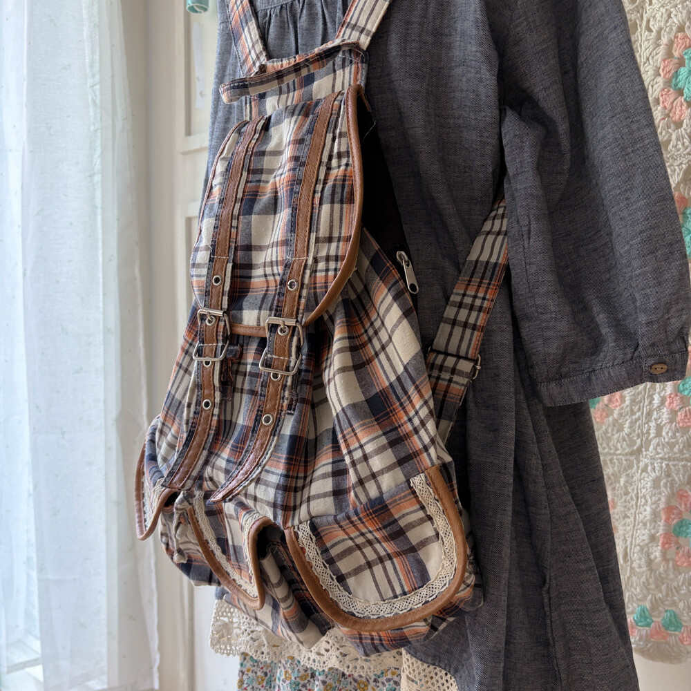 navy&orange check 3pocket backpack