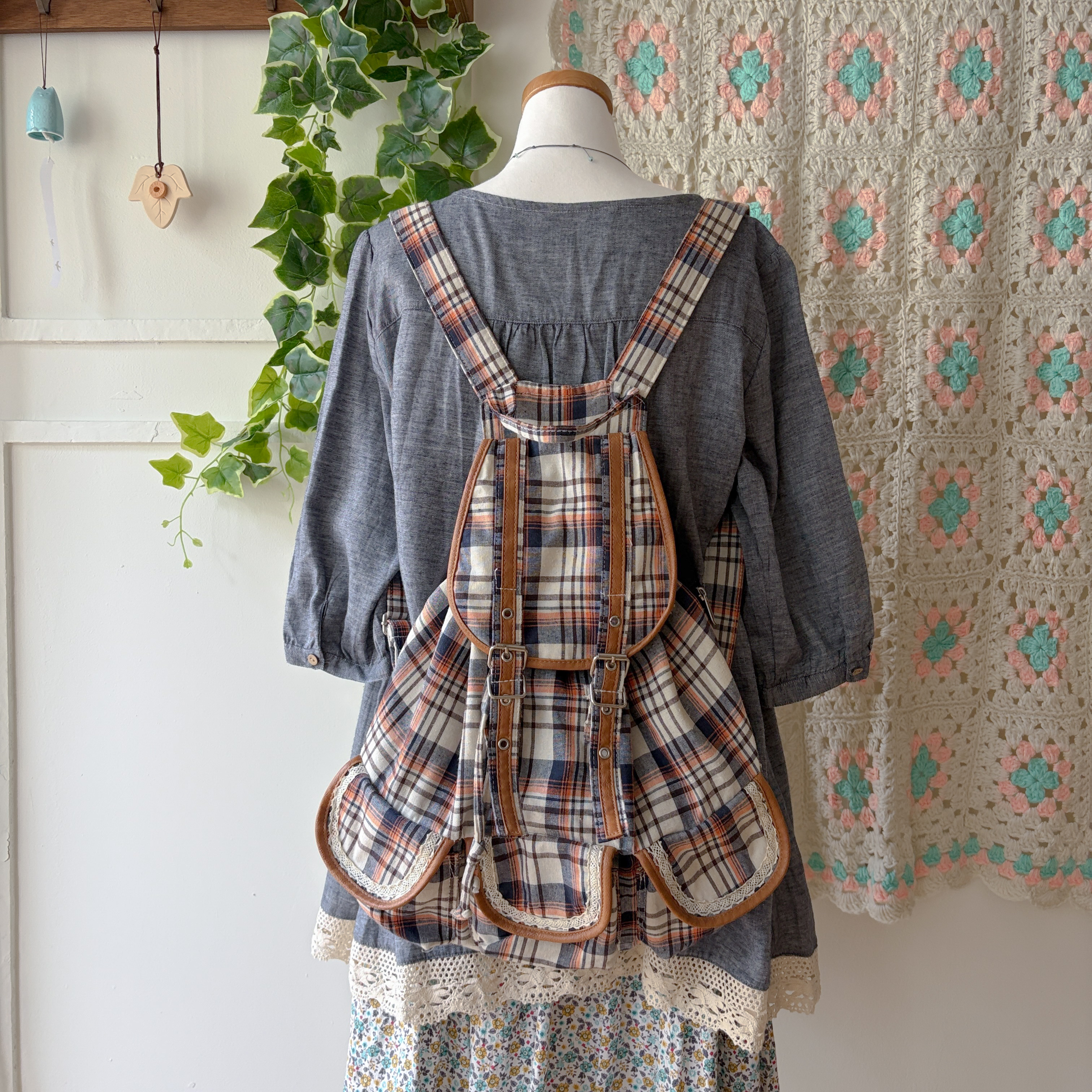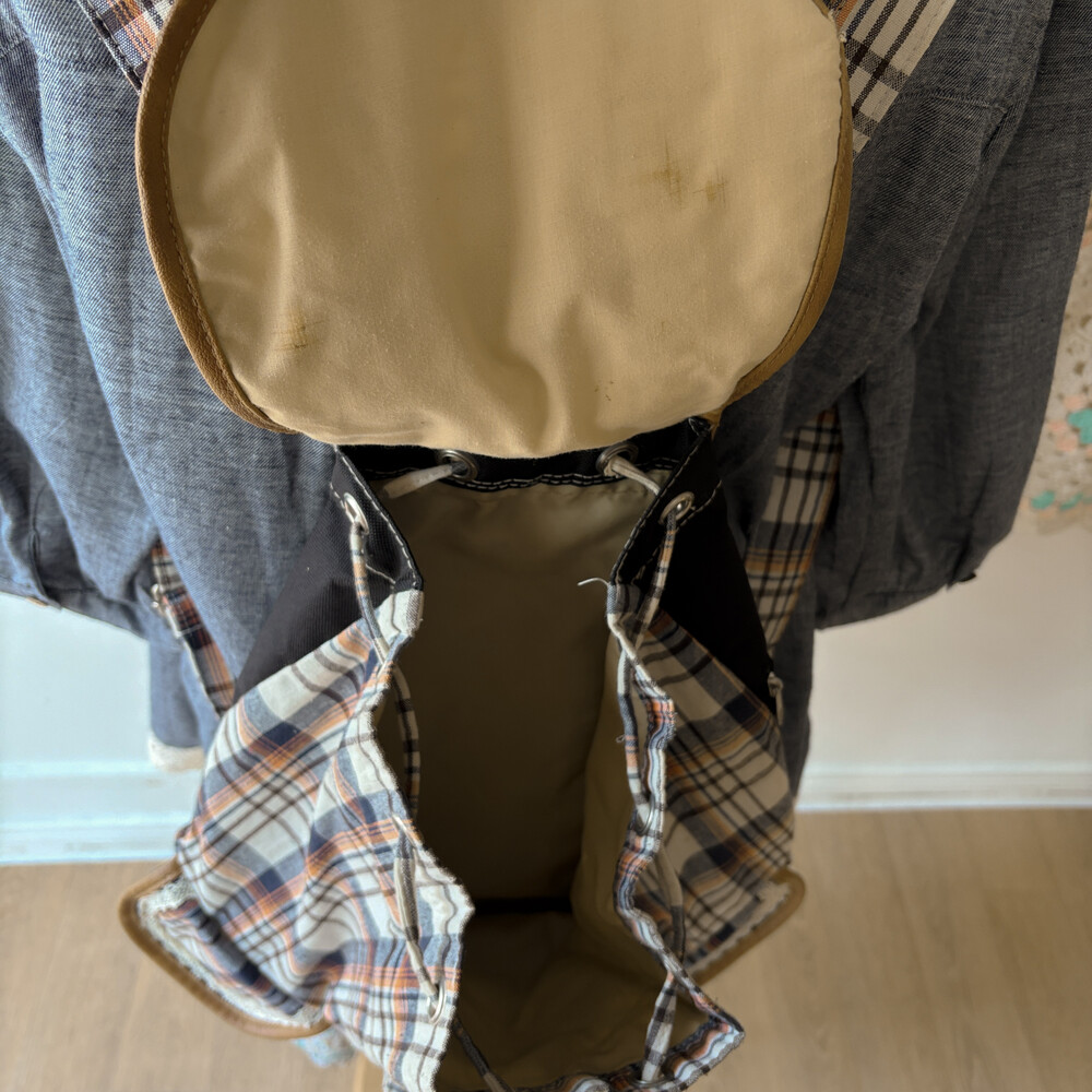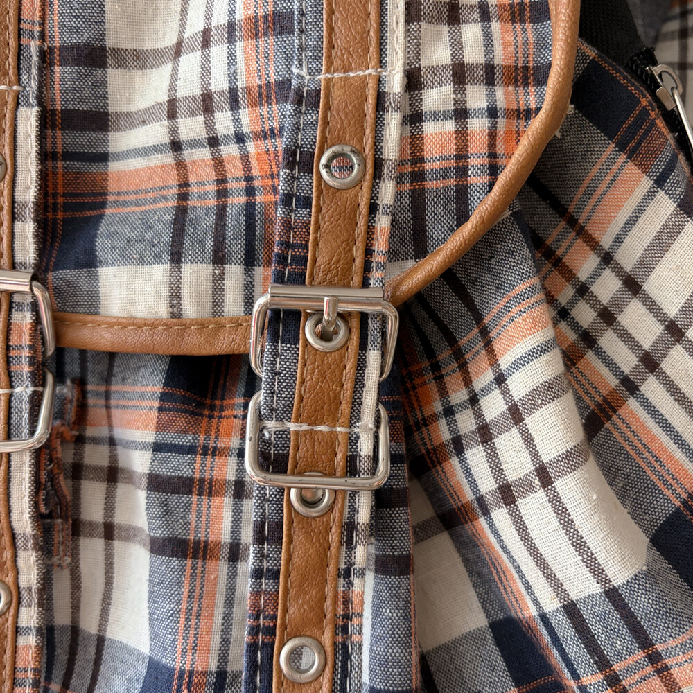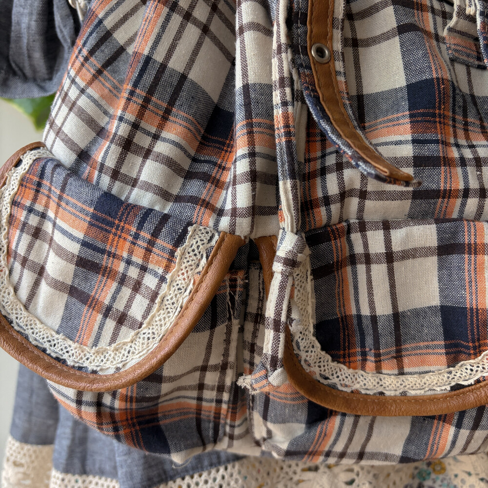 navy&orange check 3pocket backpack