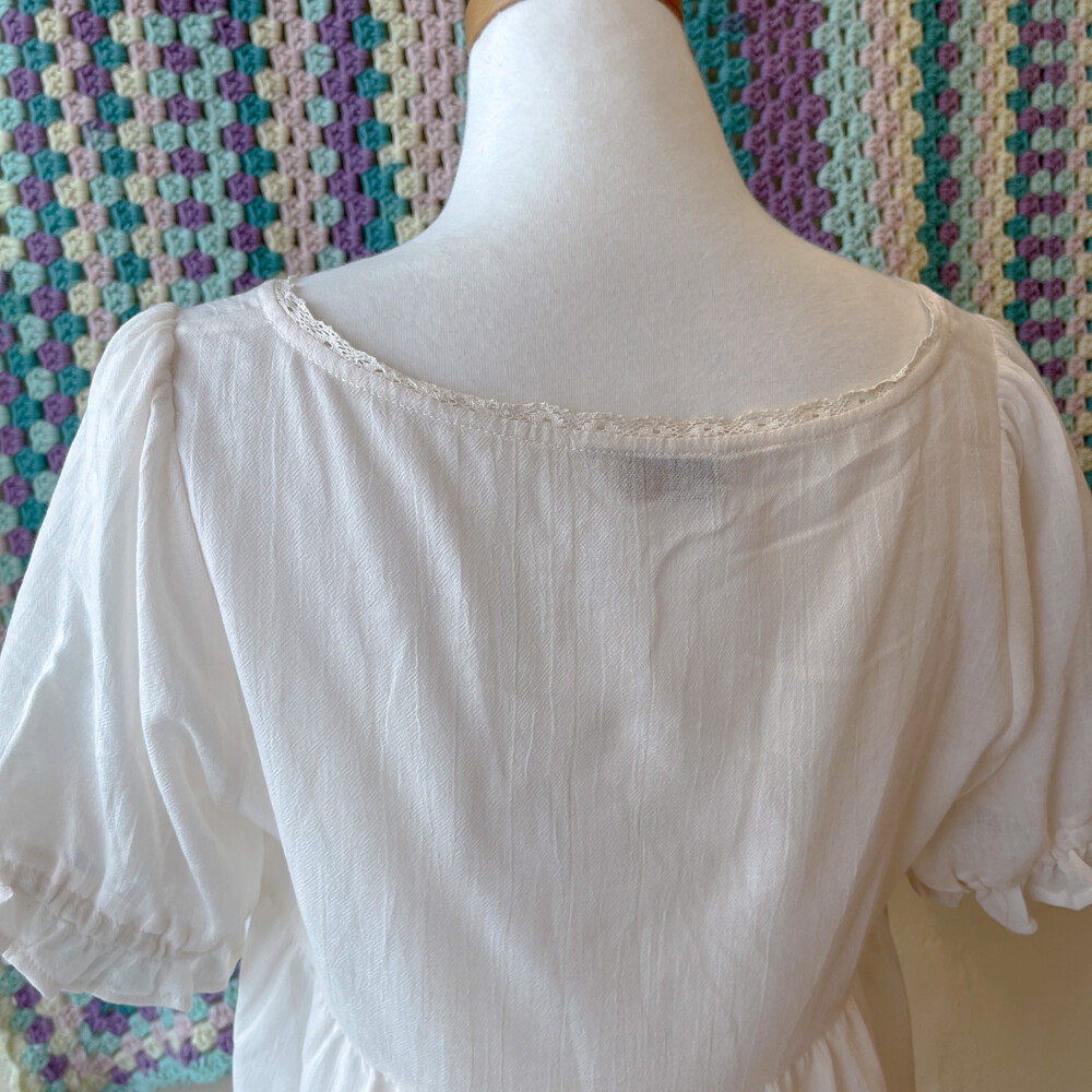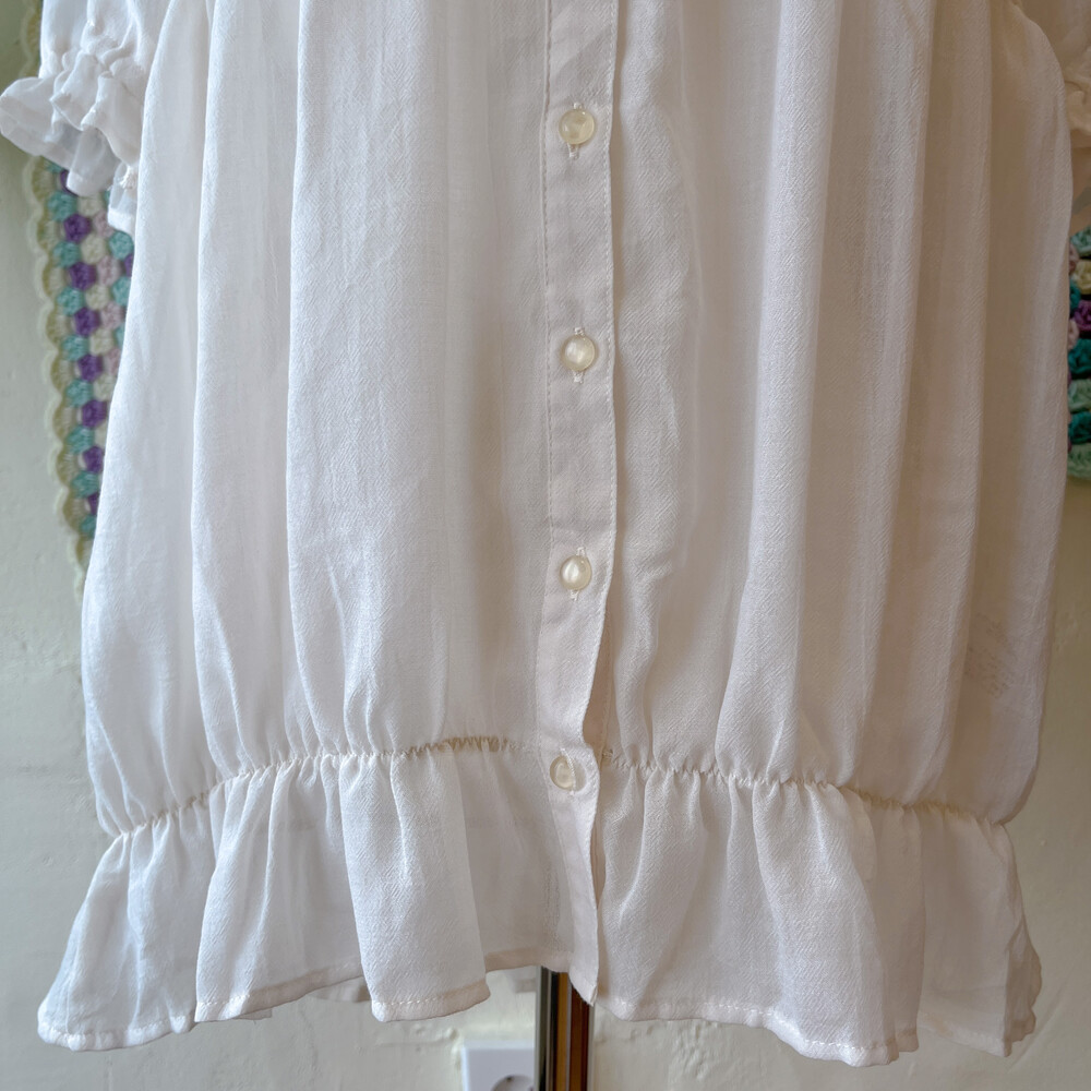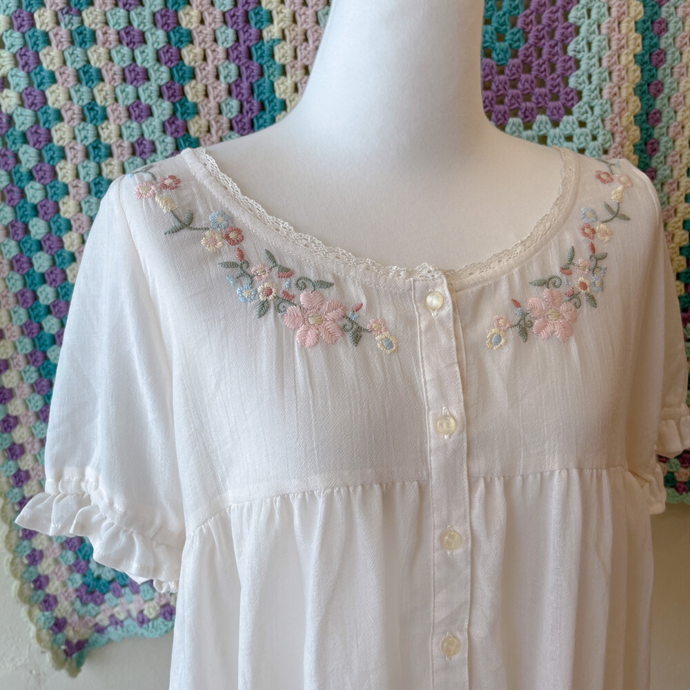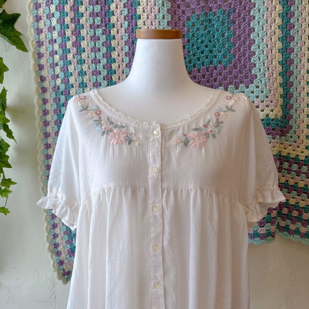 파스텔 색감의 자수 포인트 반팔 블라우스예요