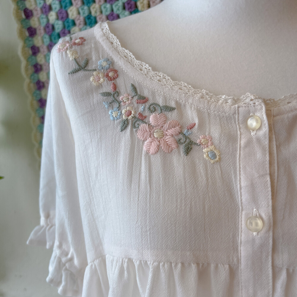 pastel pink&blue flower embroidery bl