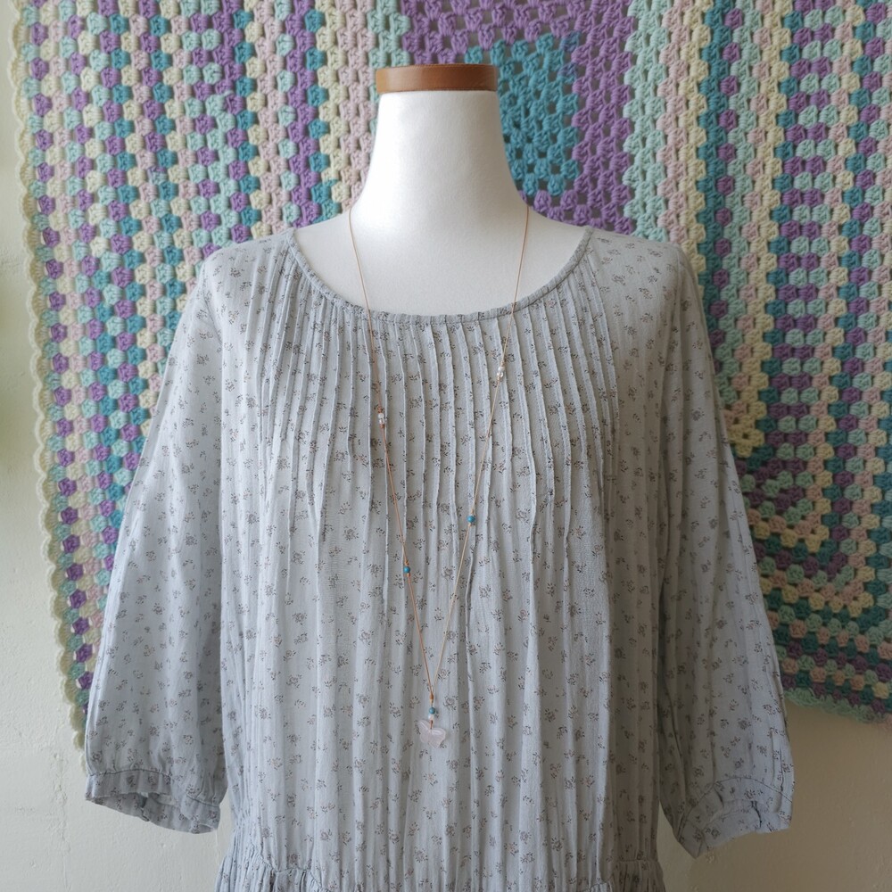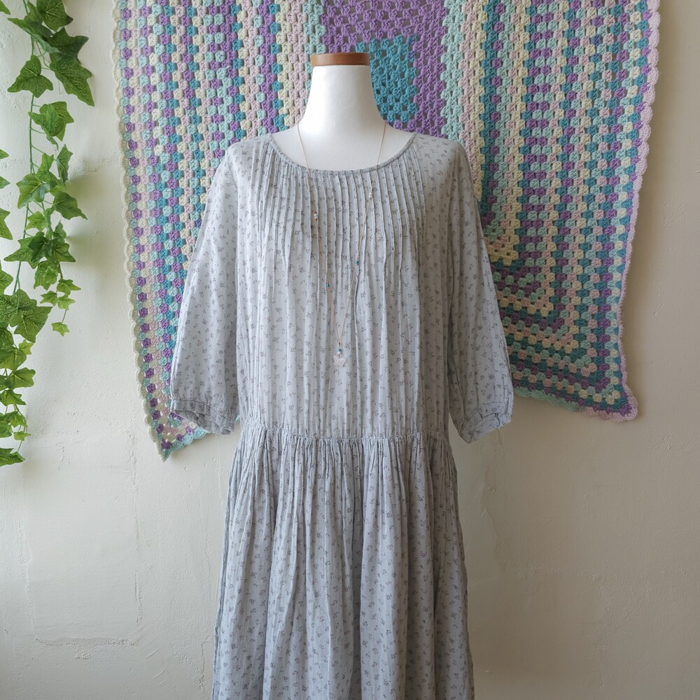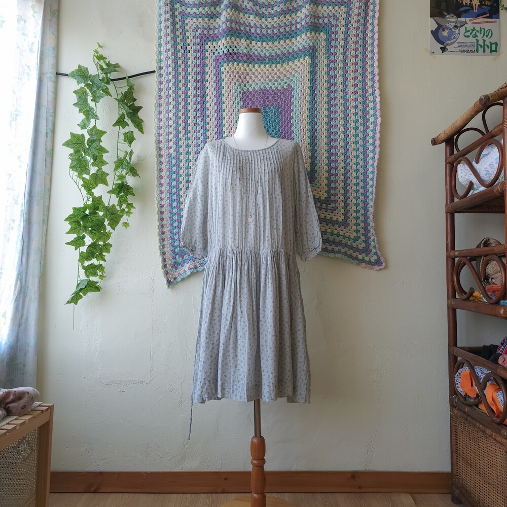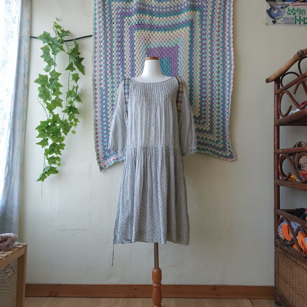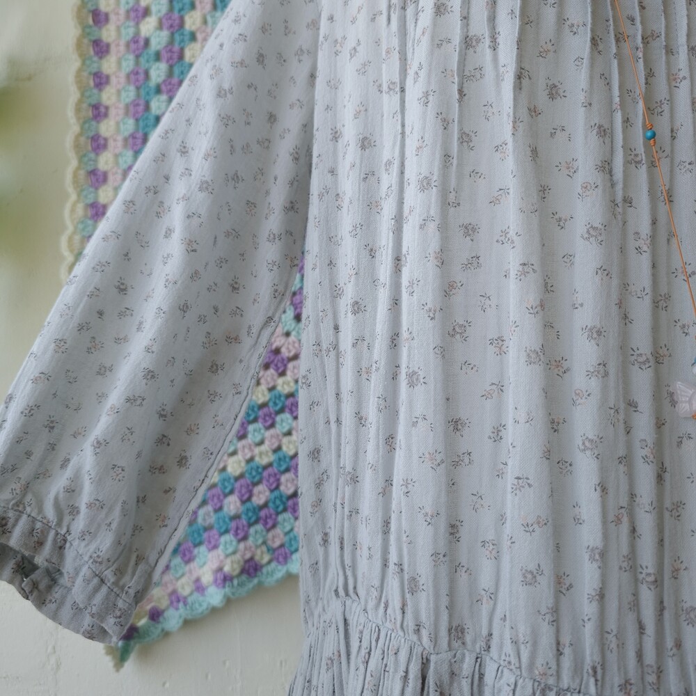 소라색의 잔꽃무늬 코튼 원피스예요