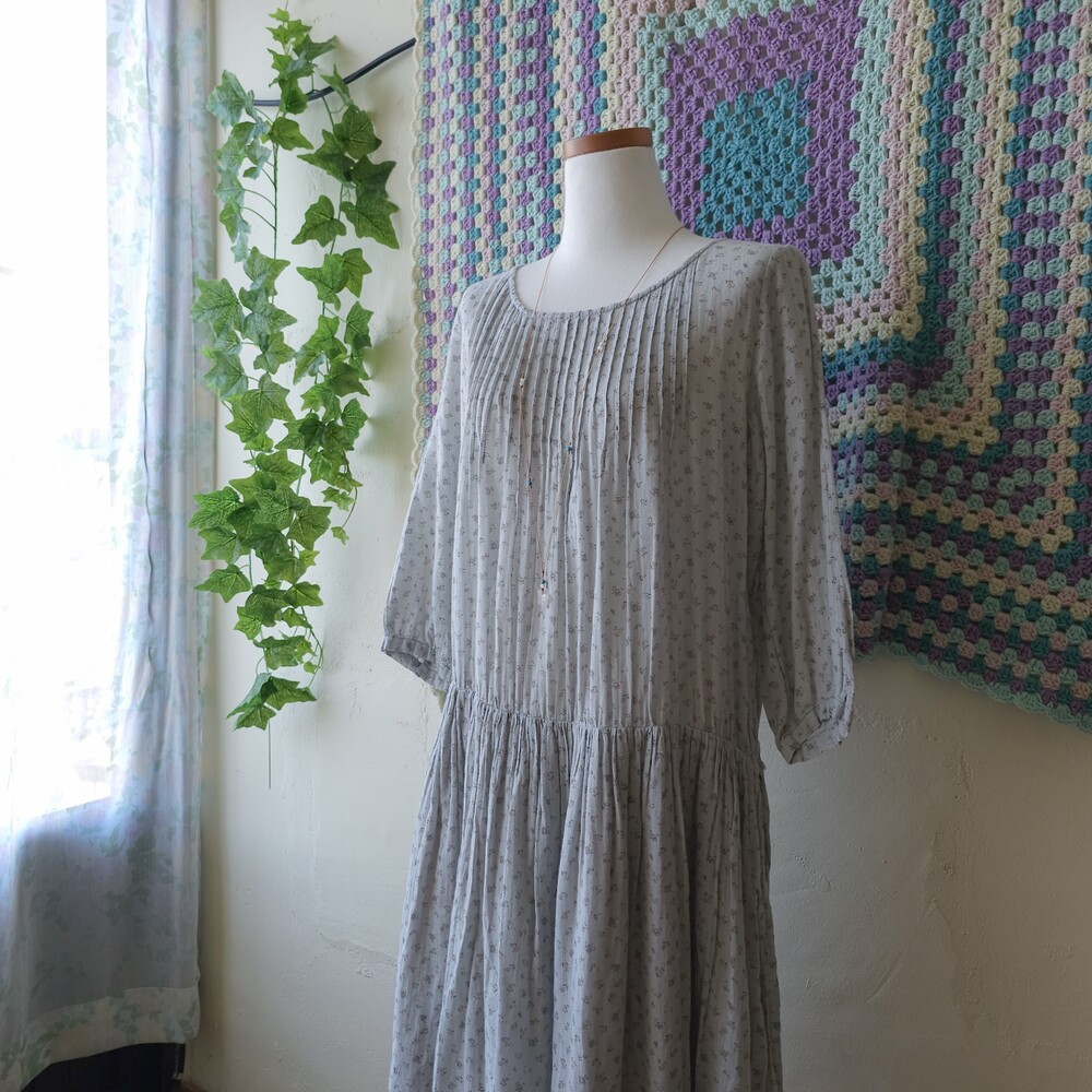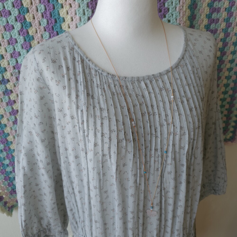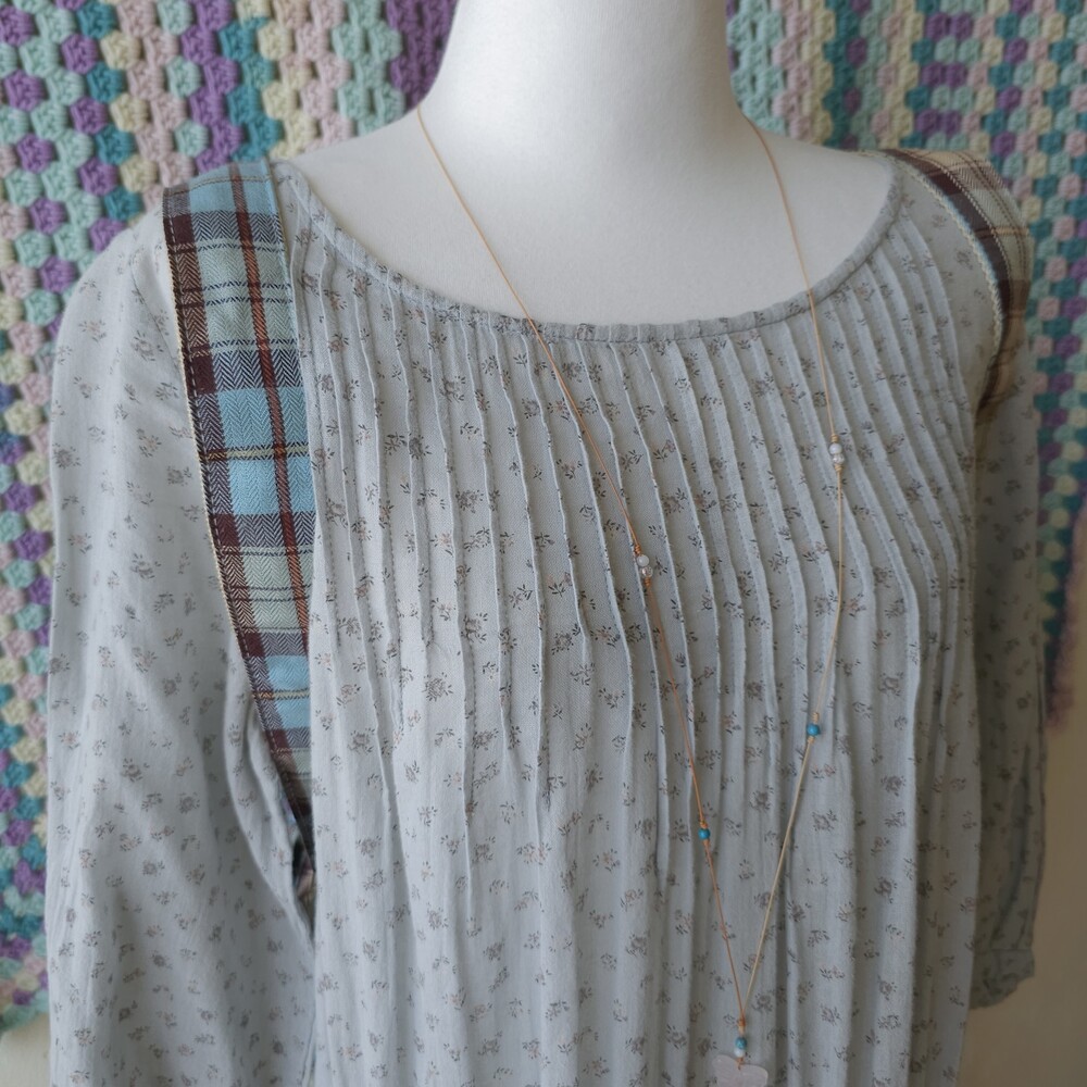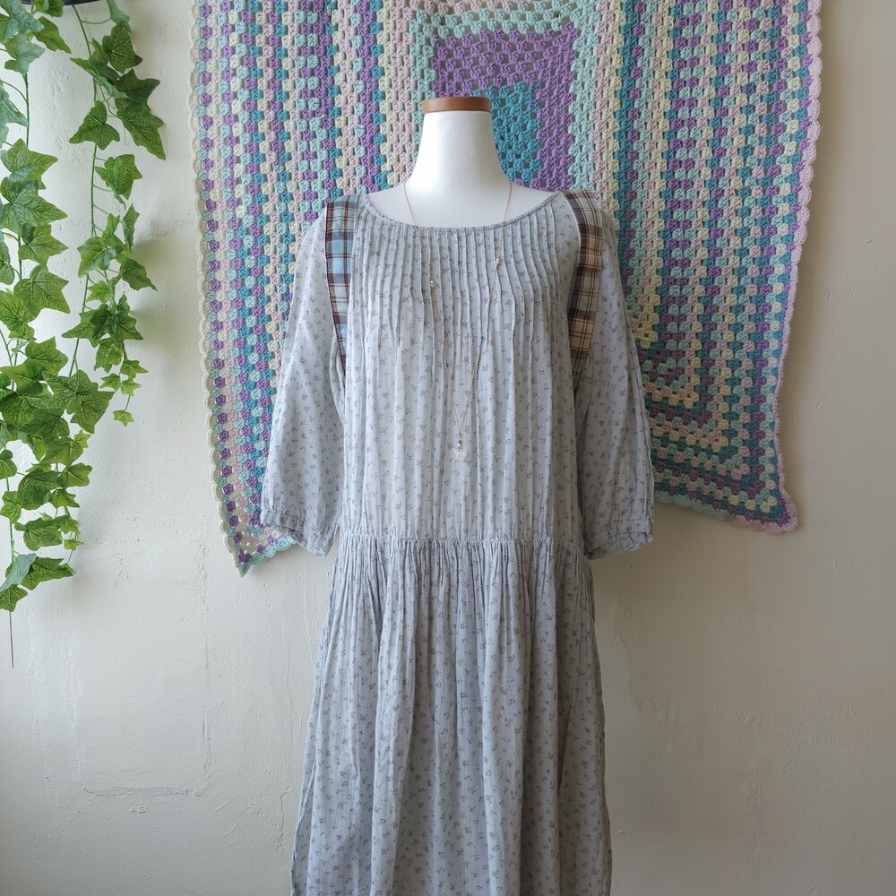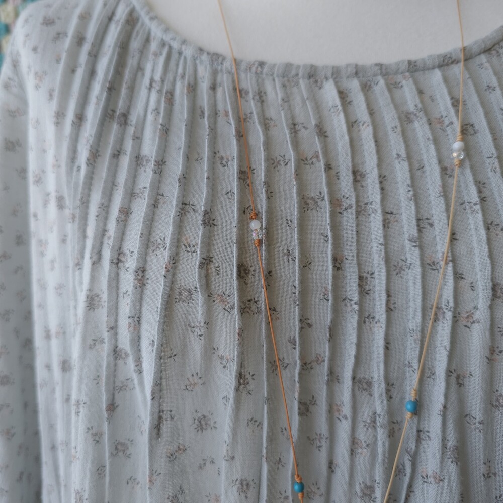 소라색의 잔꽃무늬 코튼 원피스예요