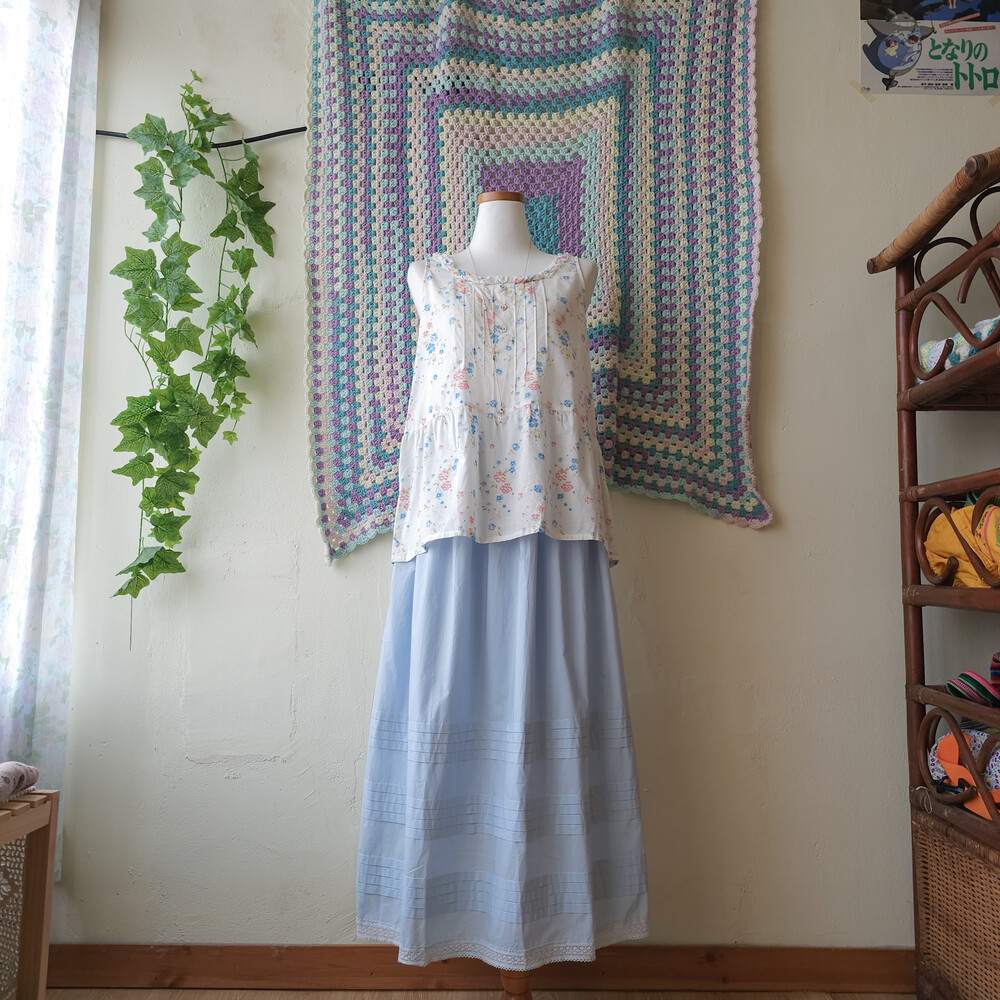 light blue pintuck&lace sk