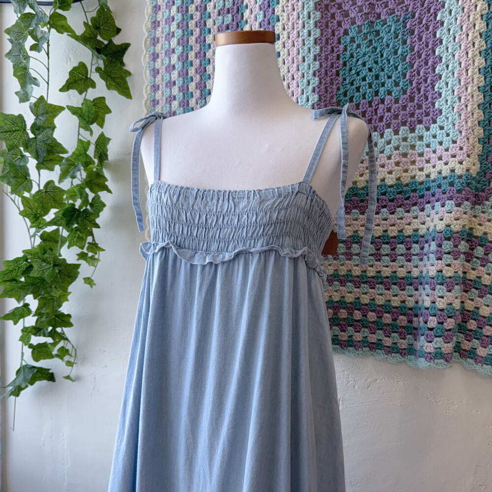 프릴 포인트의 연청 끈원피스예요