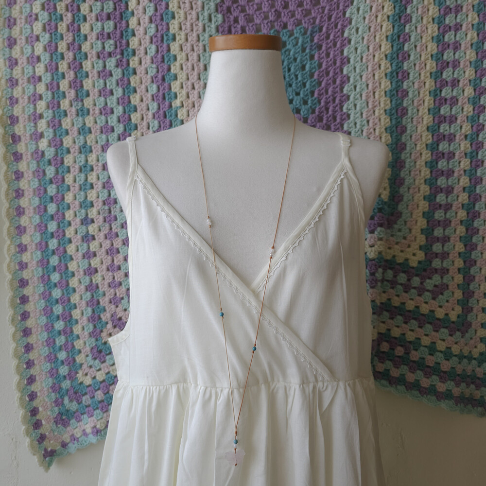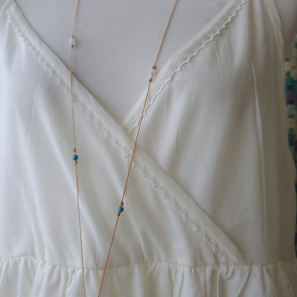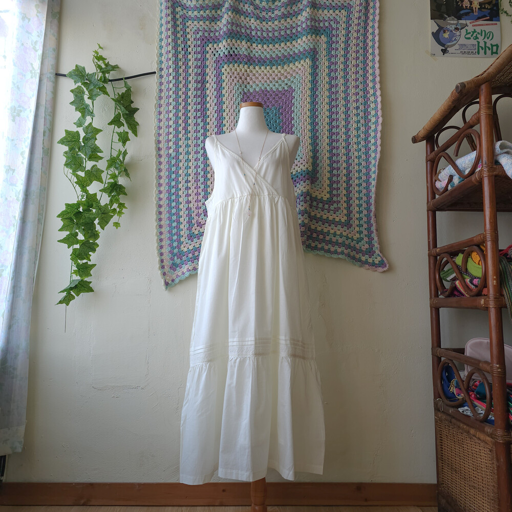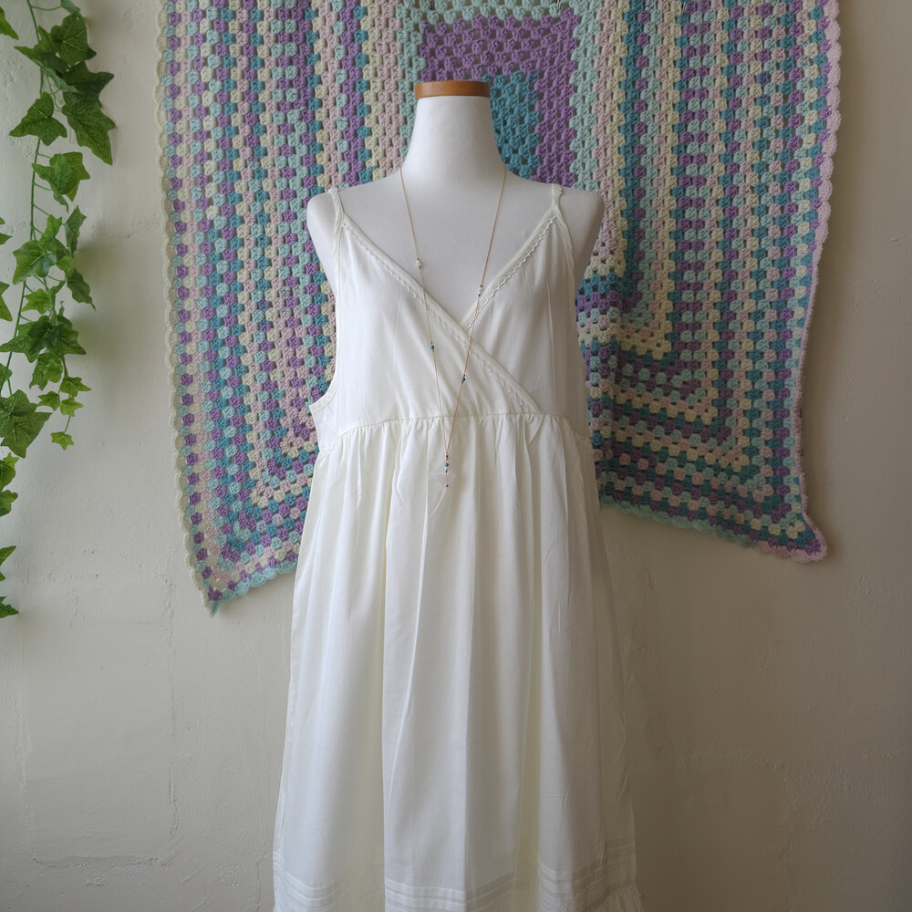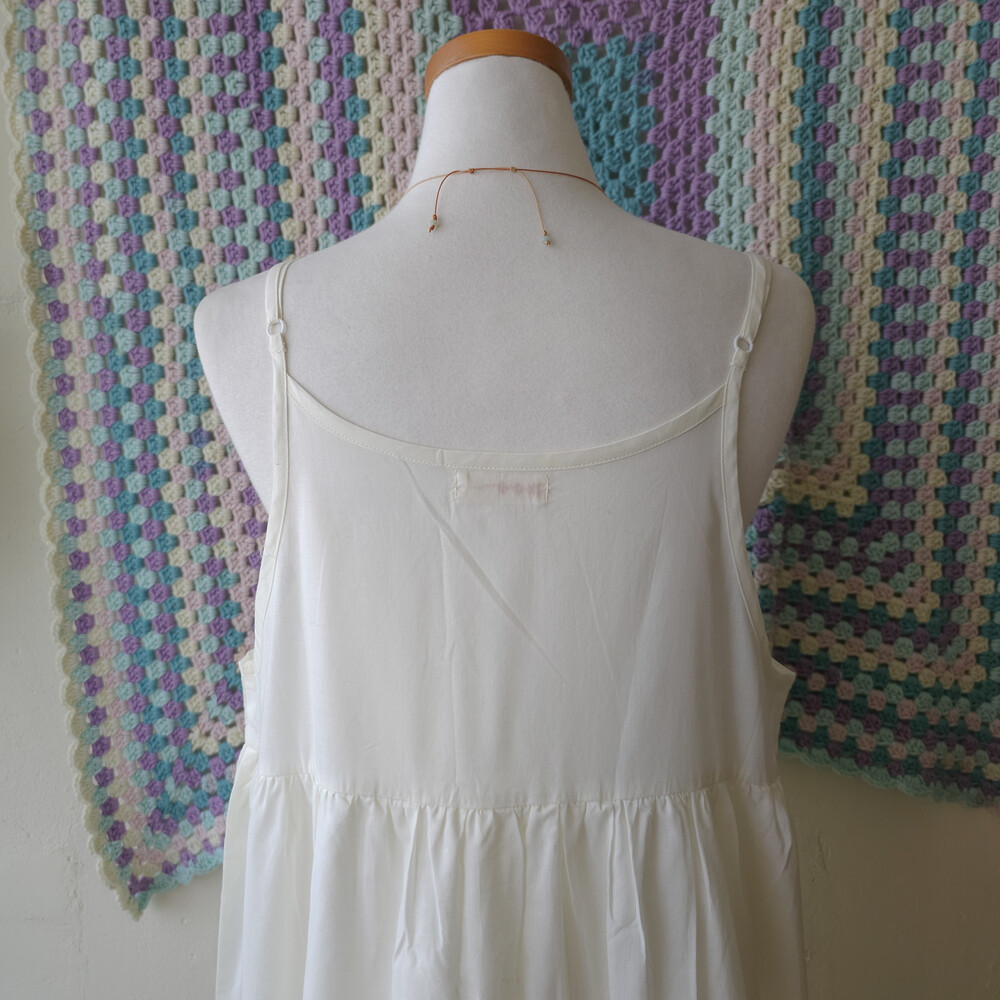 아이보리 색감의 브이넥 끈원피스예요