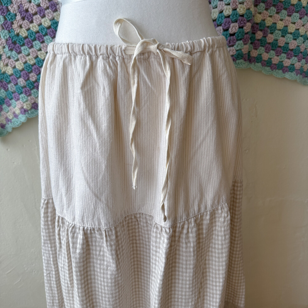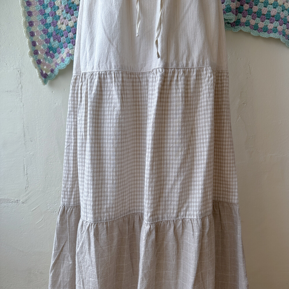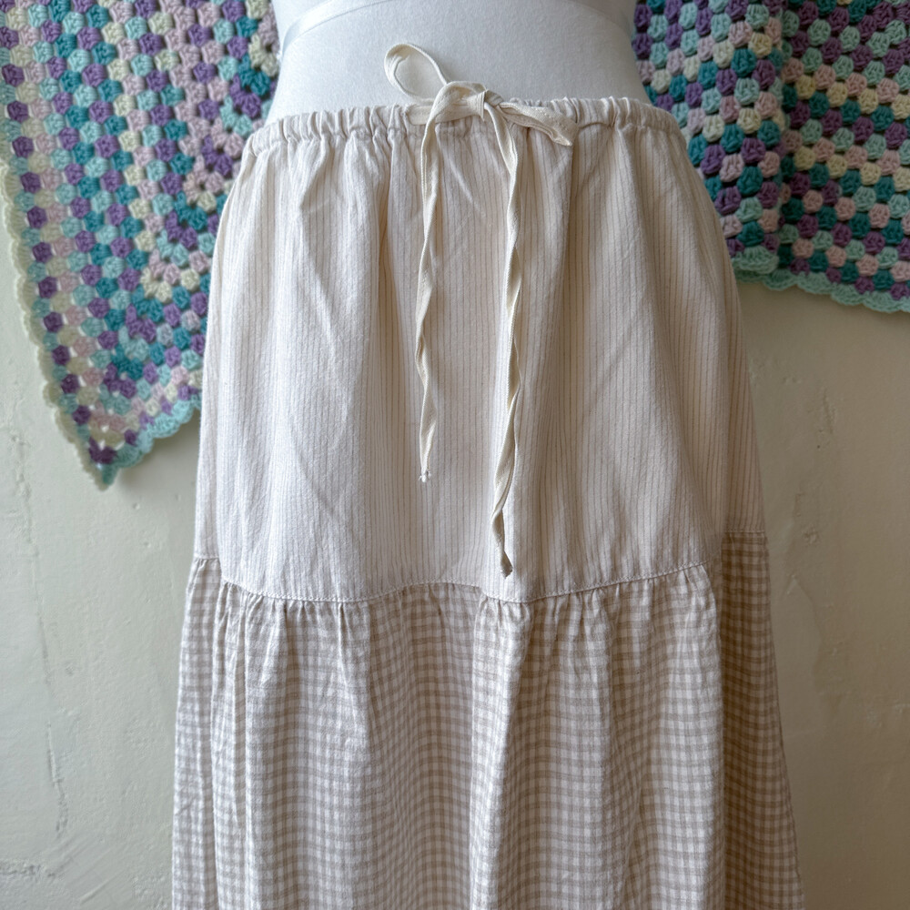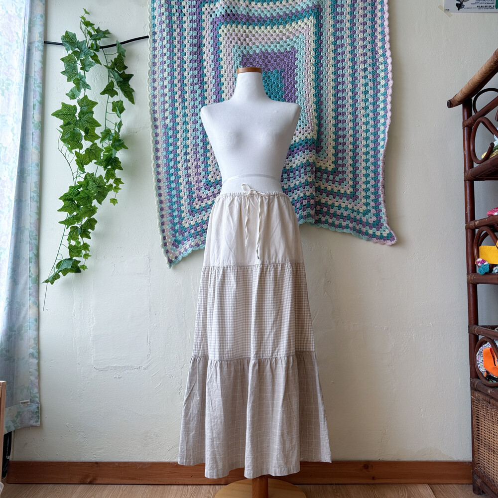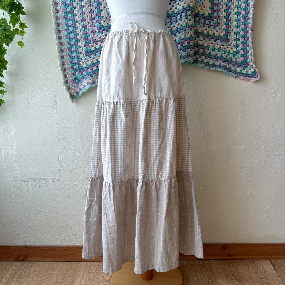 스트라이프, 체크 패턴의 패치워크 코튼 스커트예요