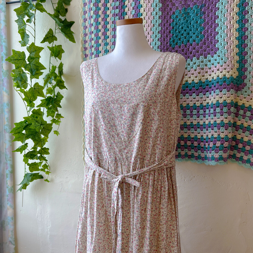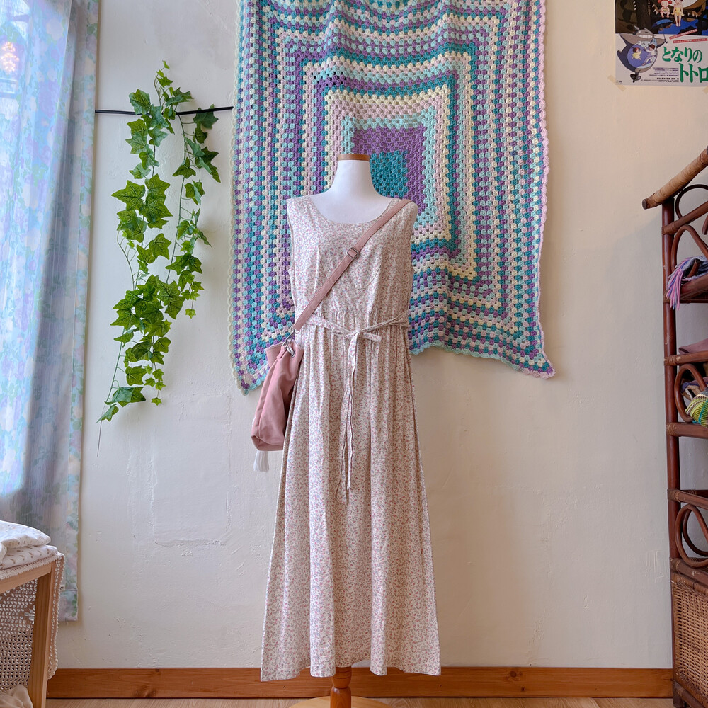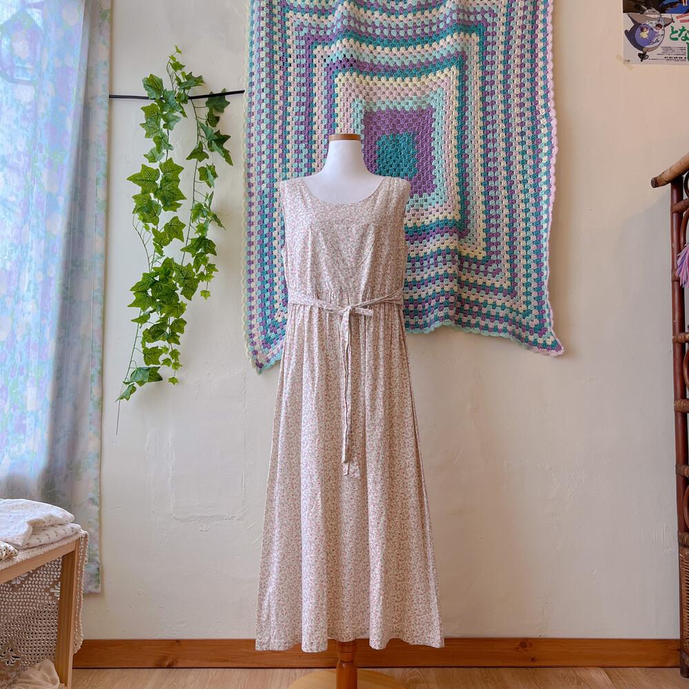 핑크, 블루 잔꽃 패턴의 코지한 민소매 원피스예요