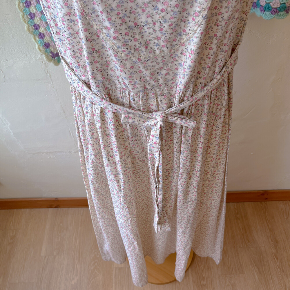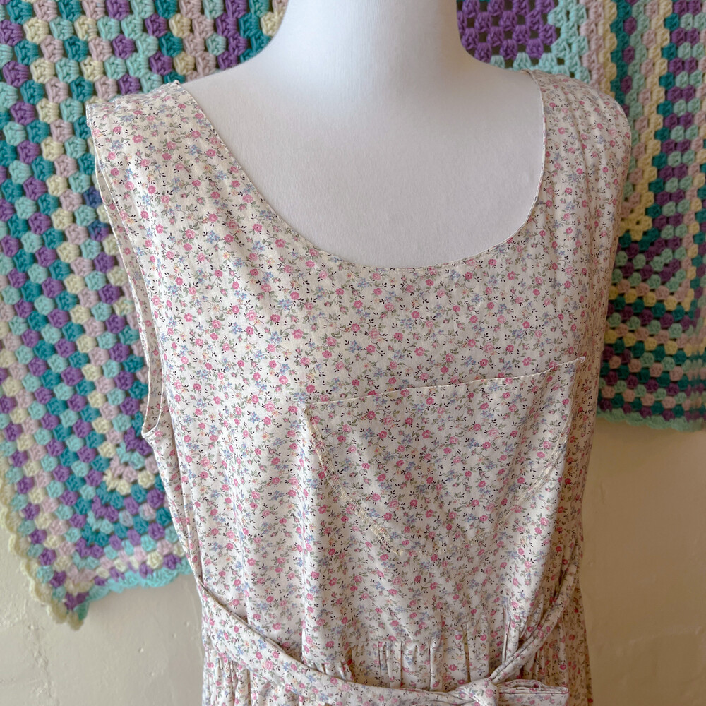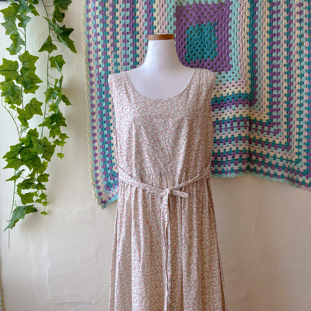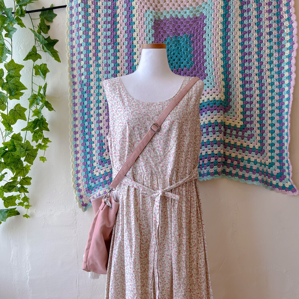 핑크, 블루 잔꽃 패턴의 코지한 민소매 원피스예요