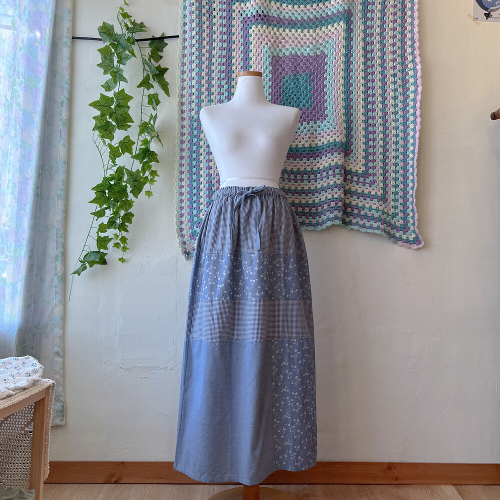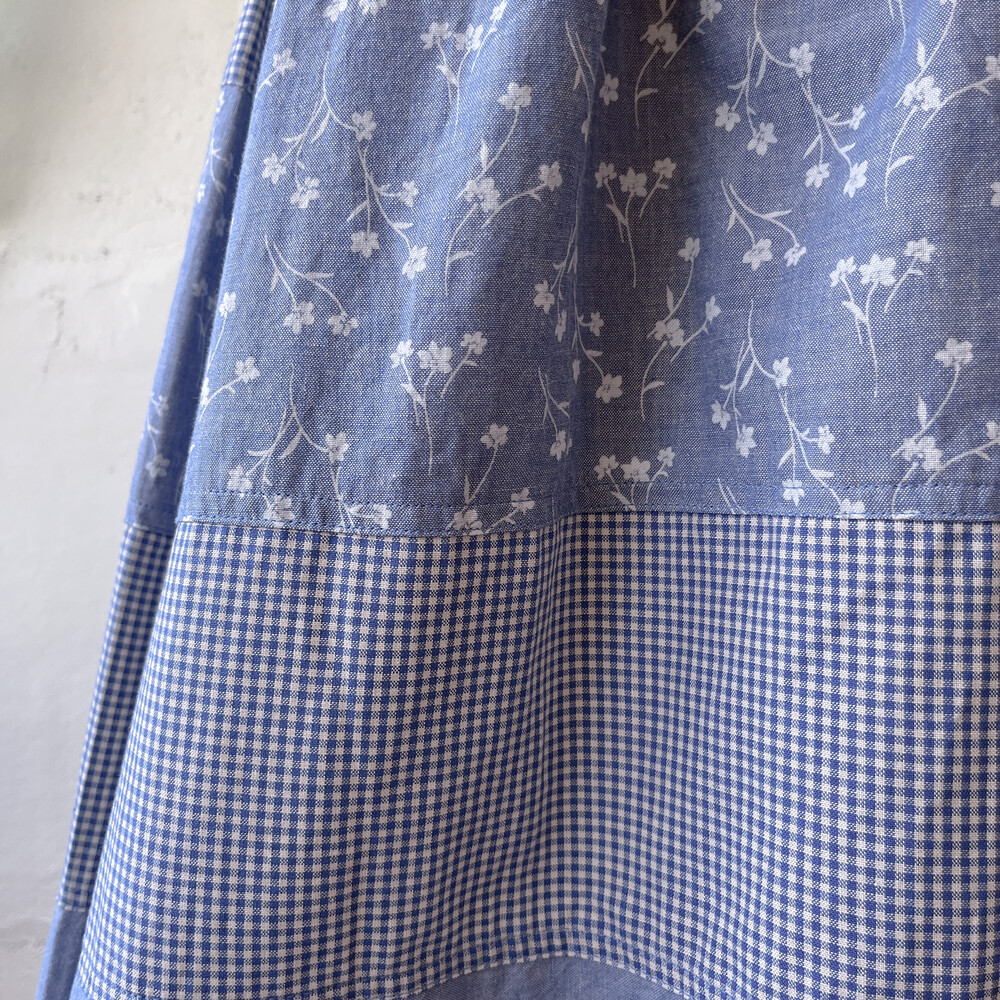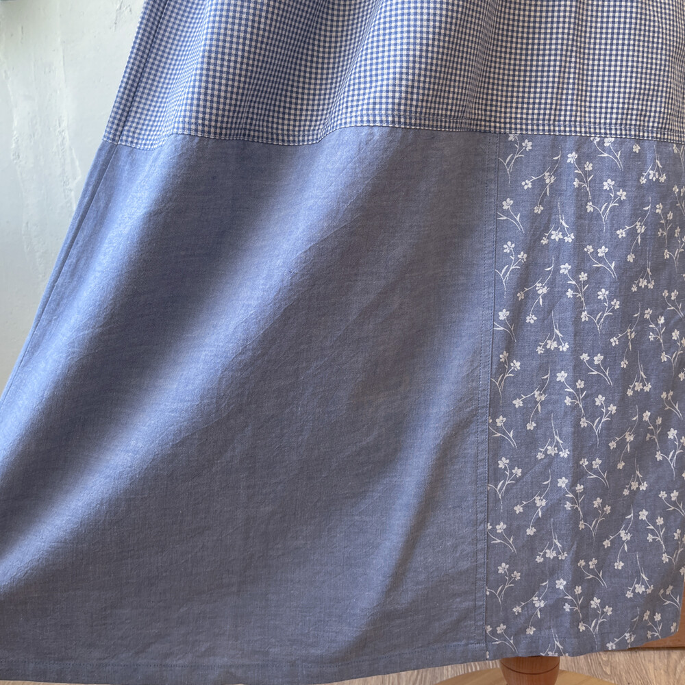 옅은 중청 데님이구요! 꽃무늬와 체크 패치 조합이 사랑스러워요