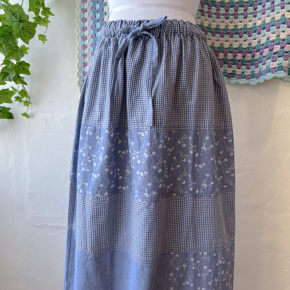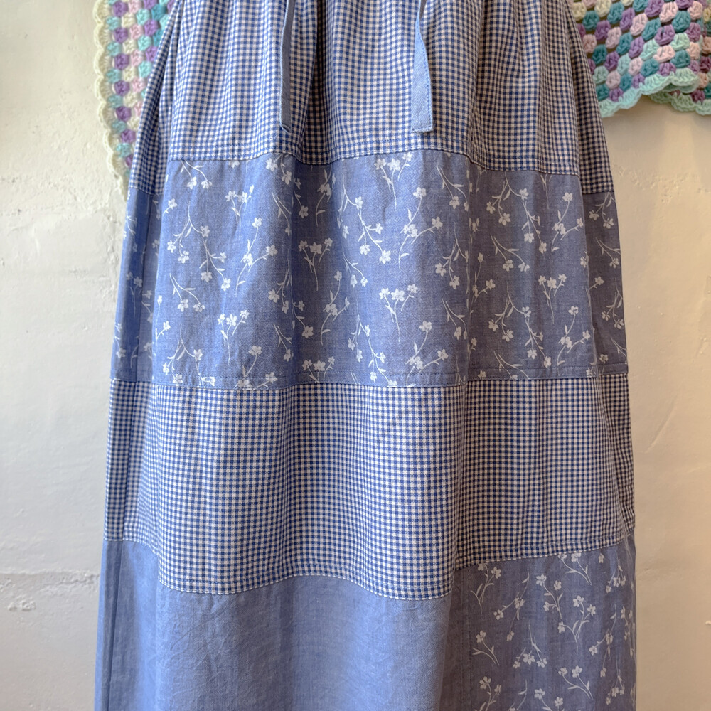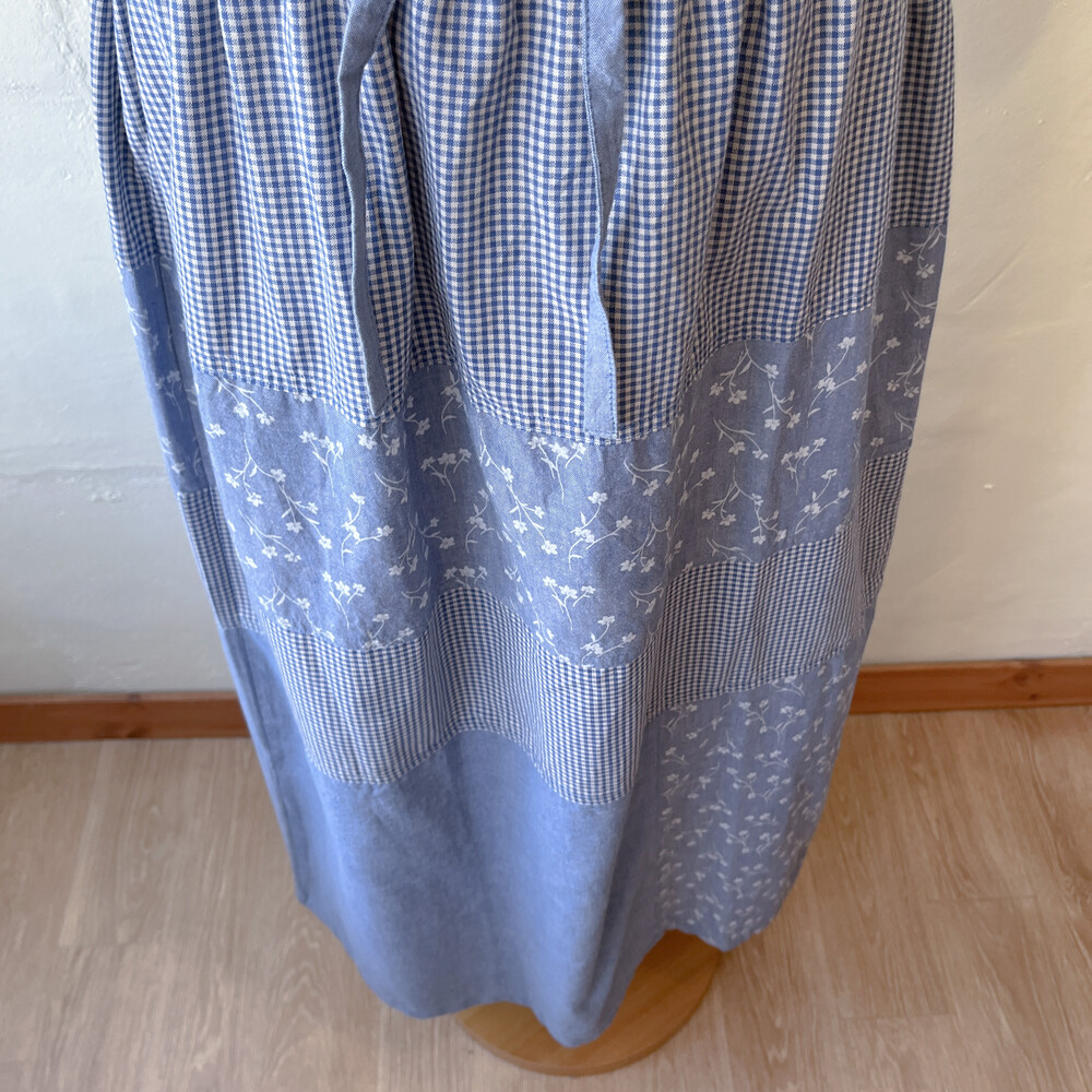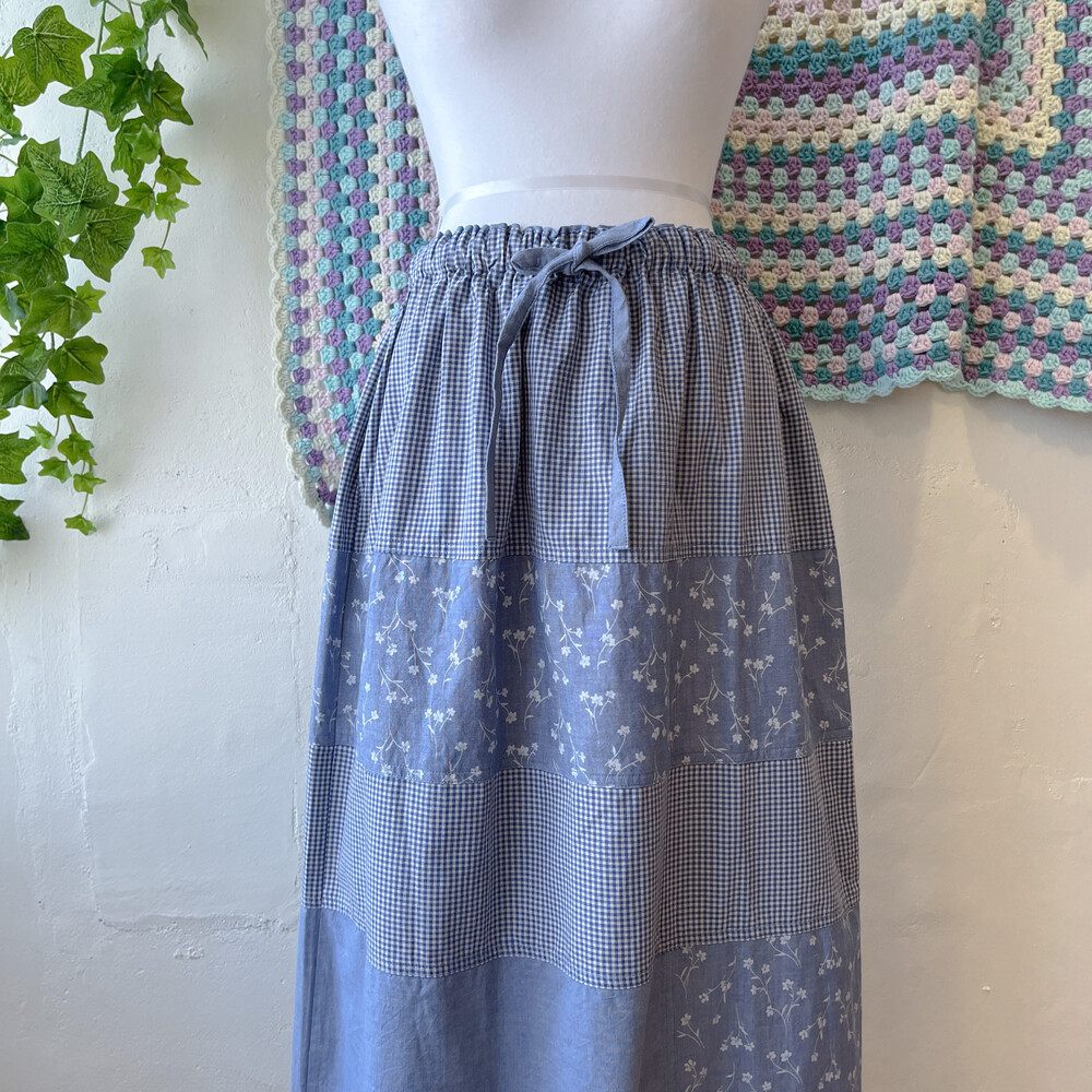 옅은 중청 데님이구요! 꽃무늬와 체크 패치 조합이 사랑스러워요