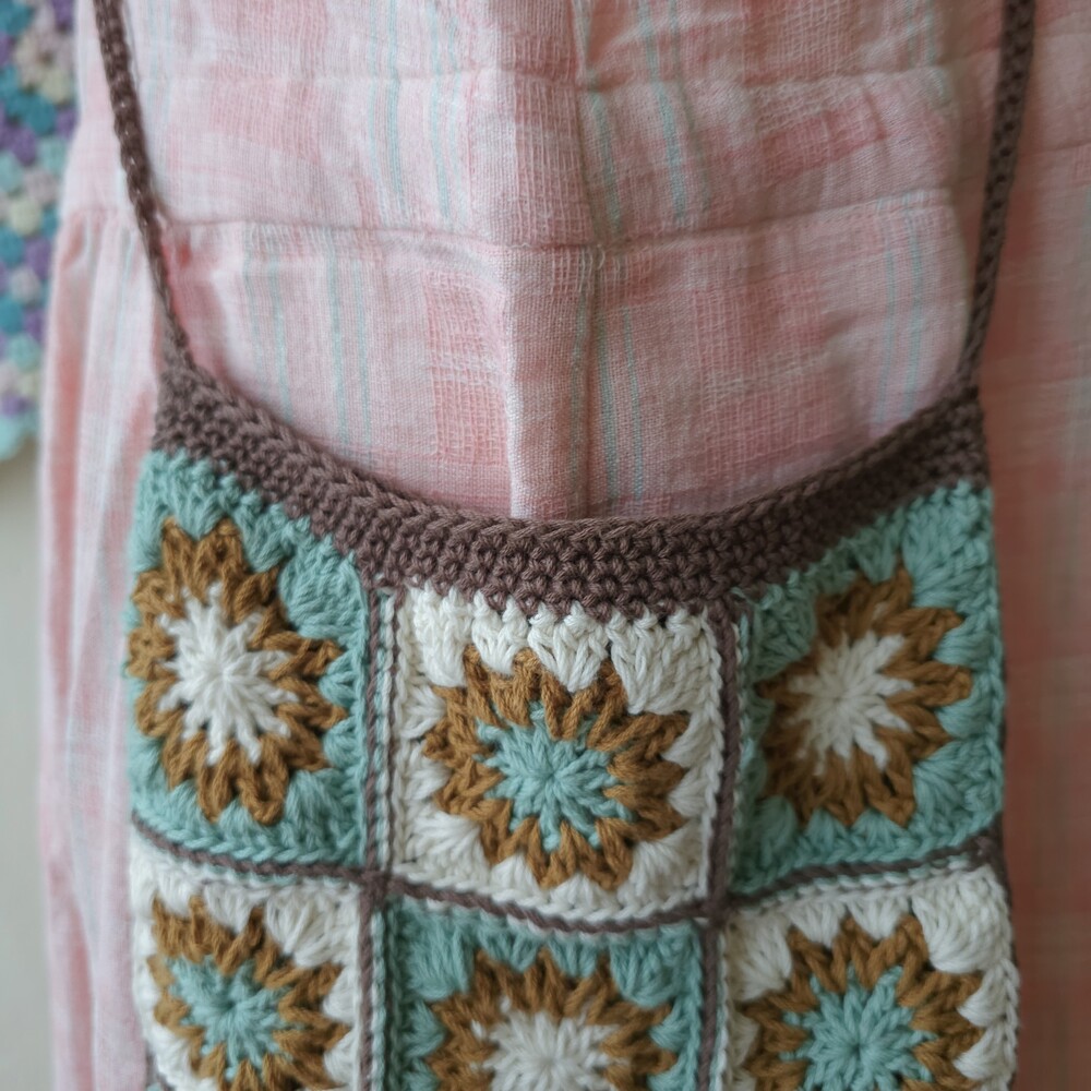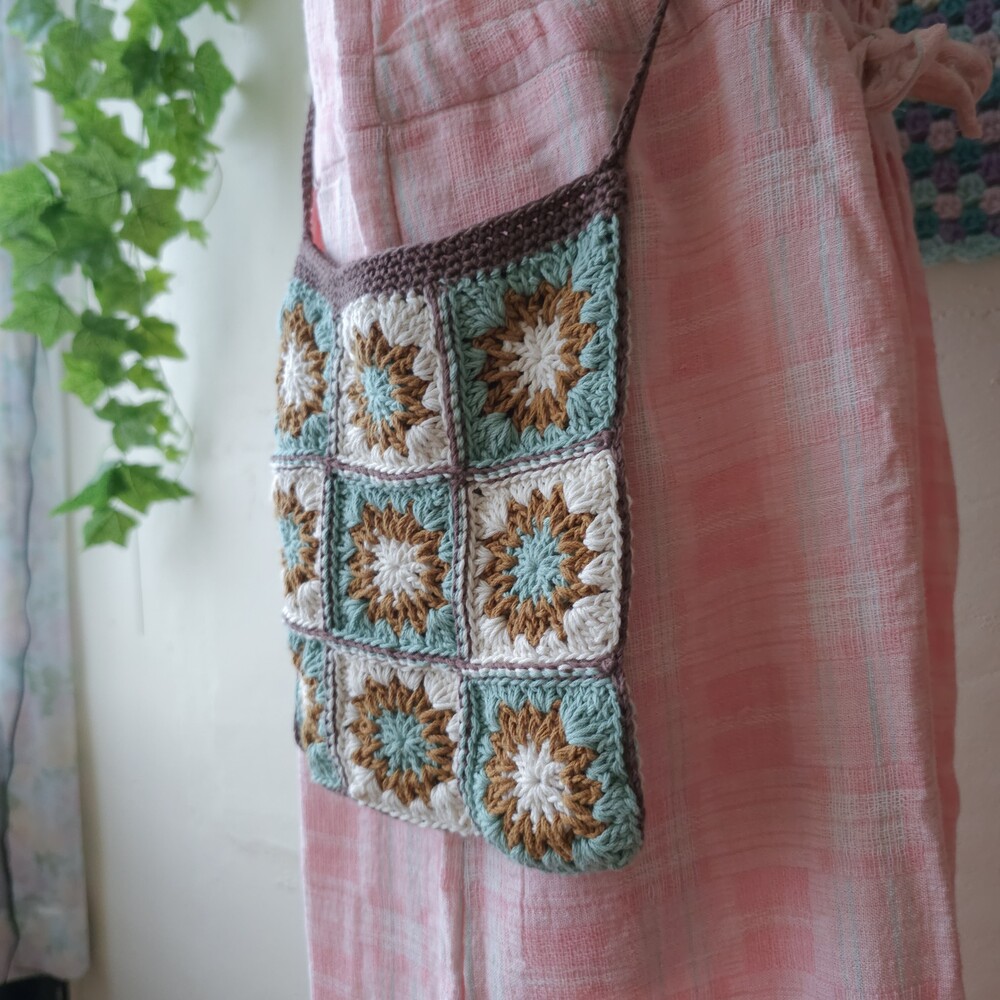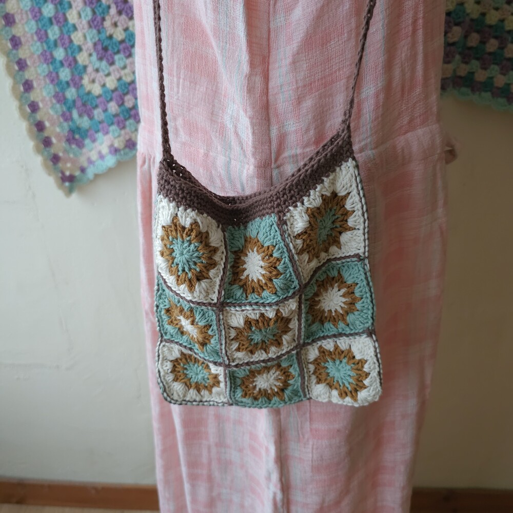 mint-blue&brown granny square cross bag