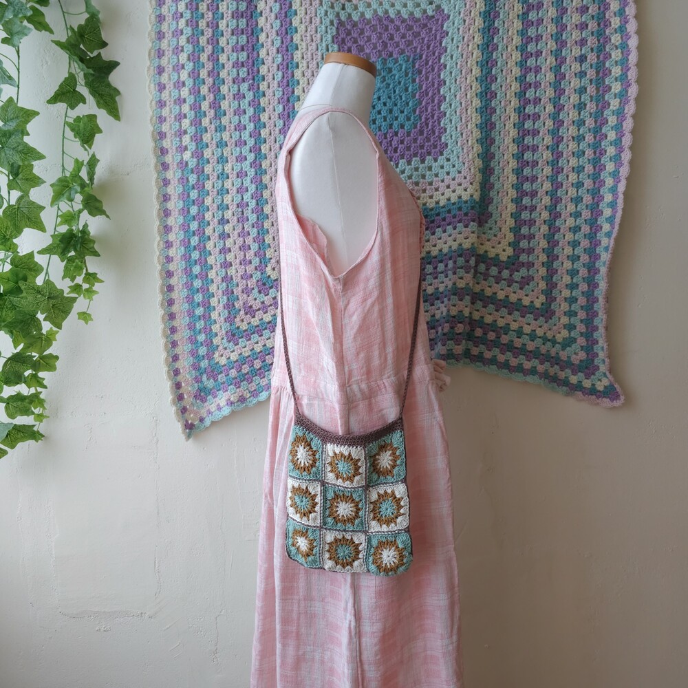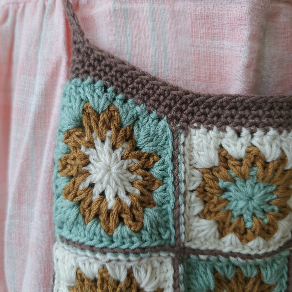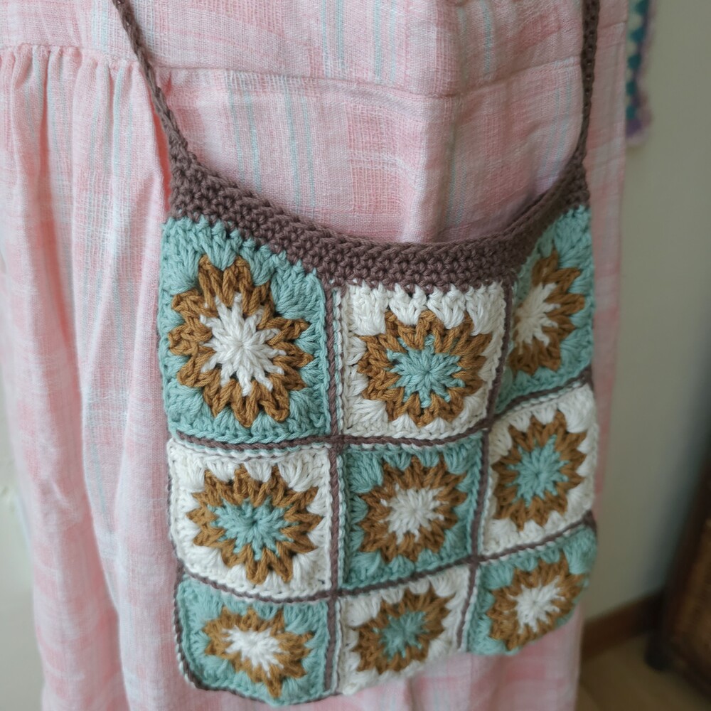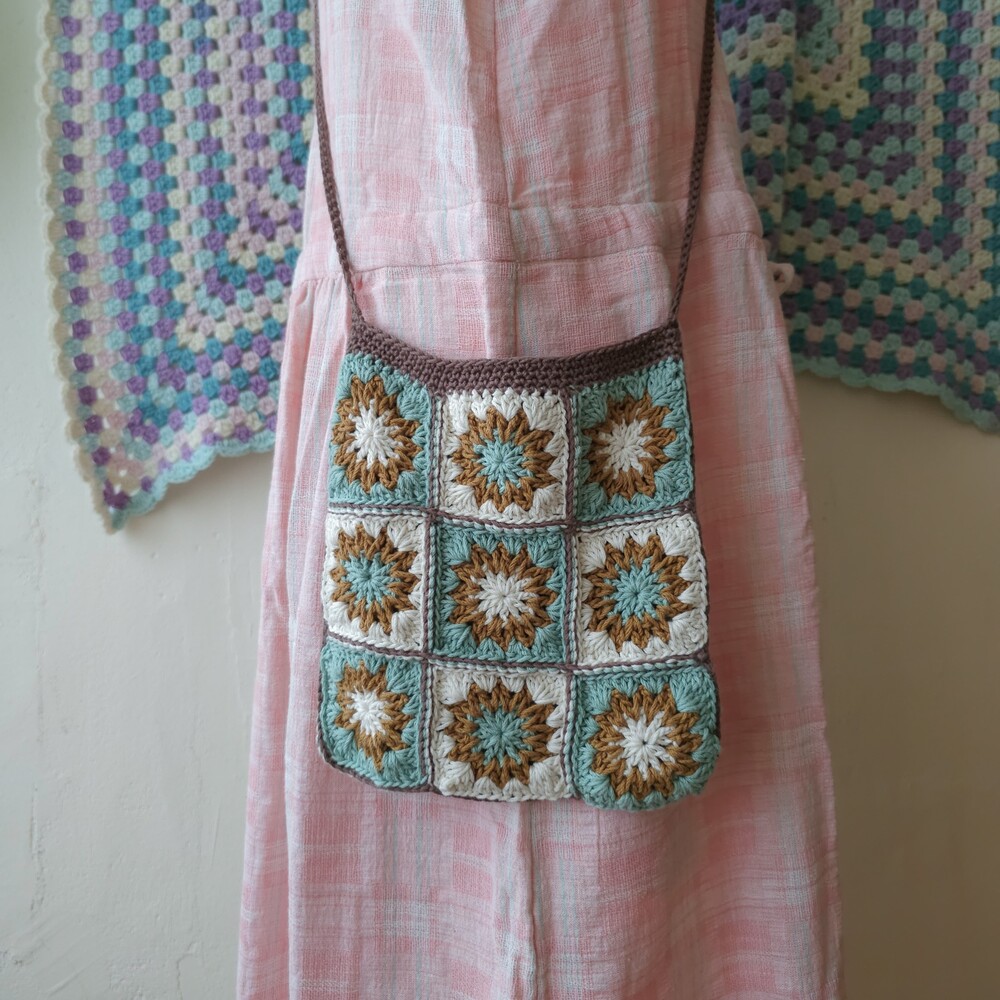 mint-blue&brown granny square cross bag