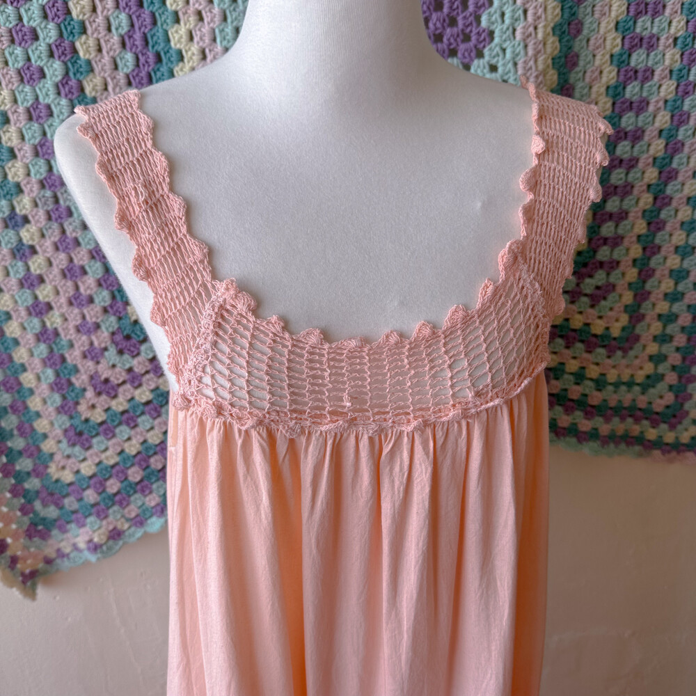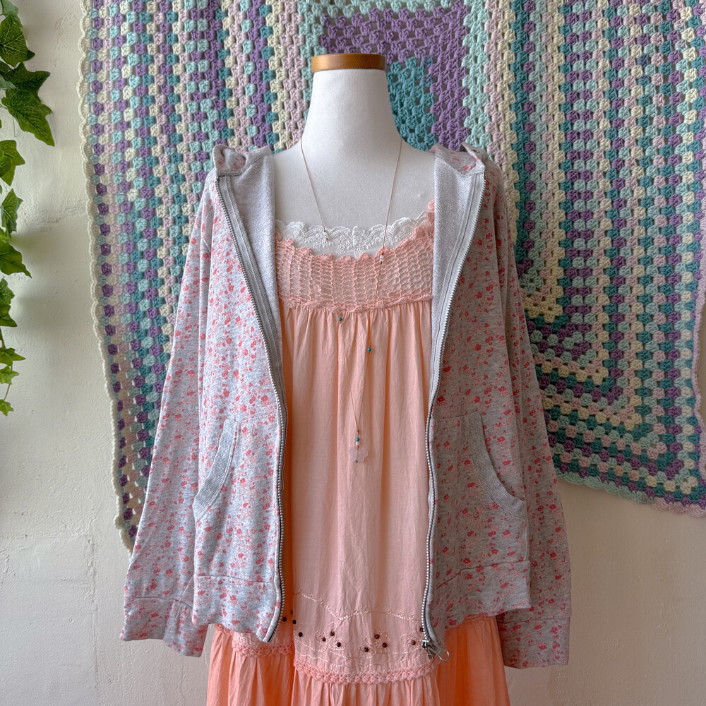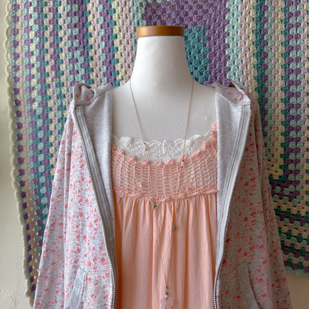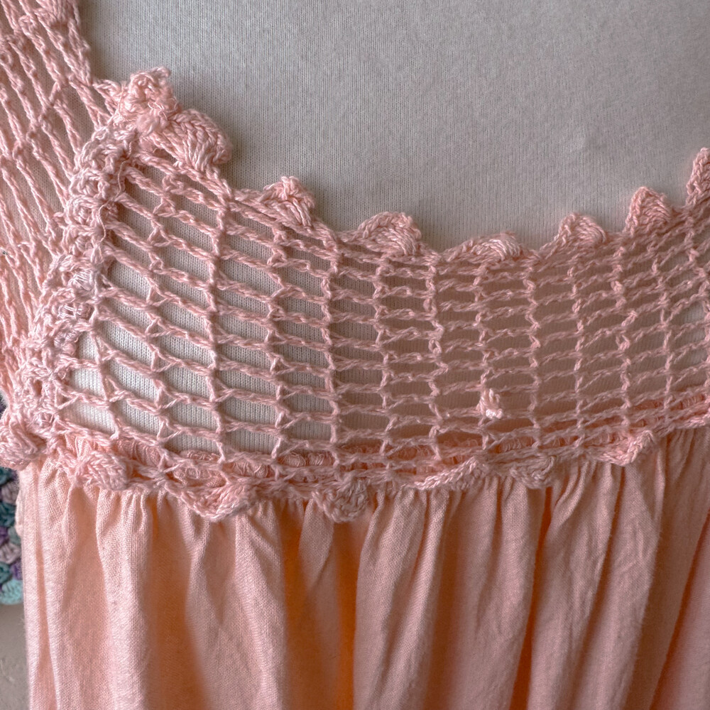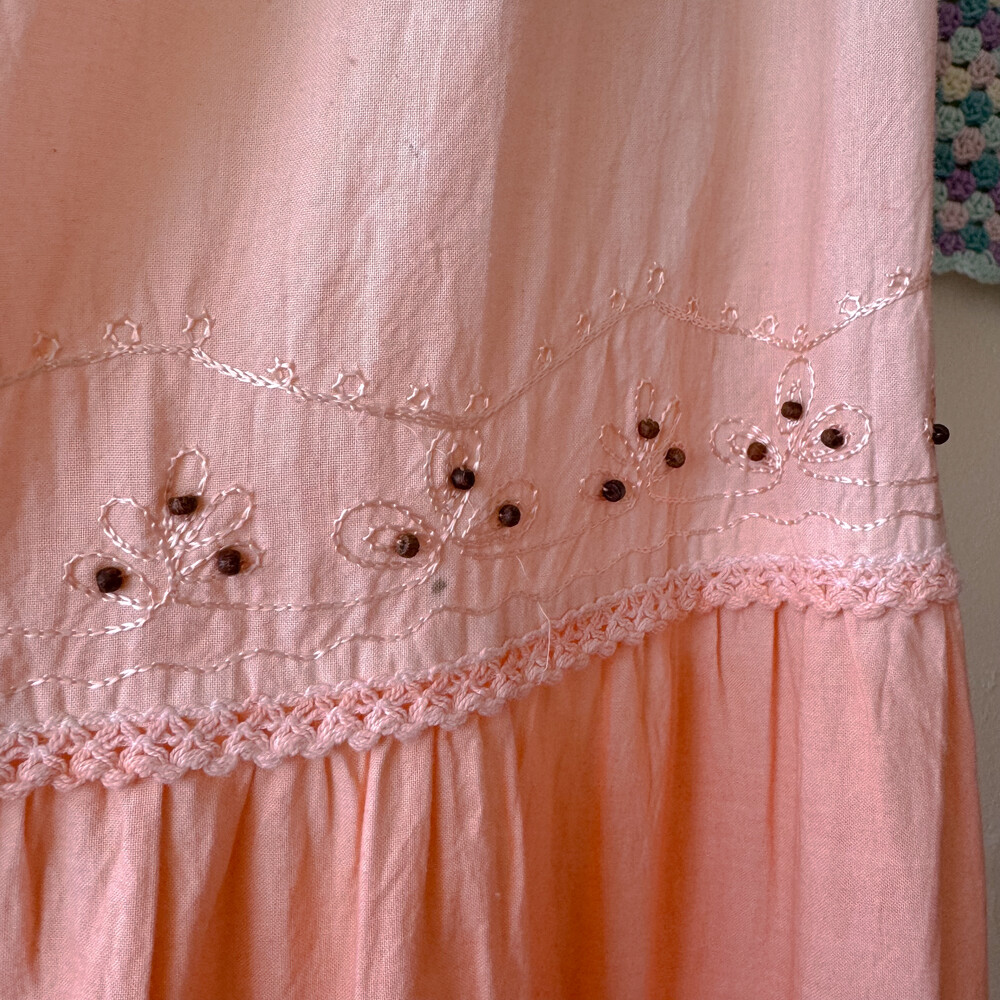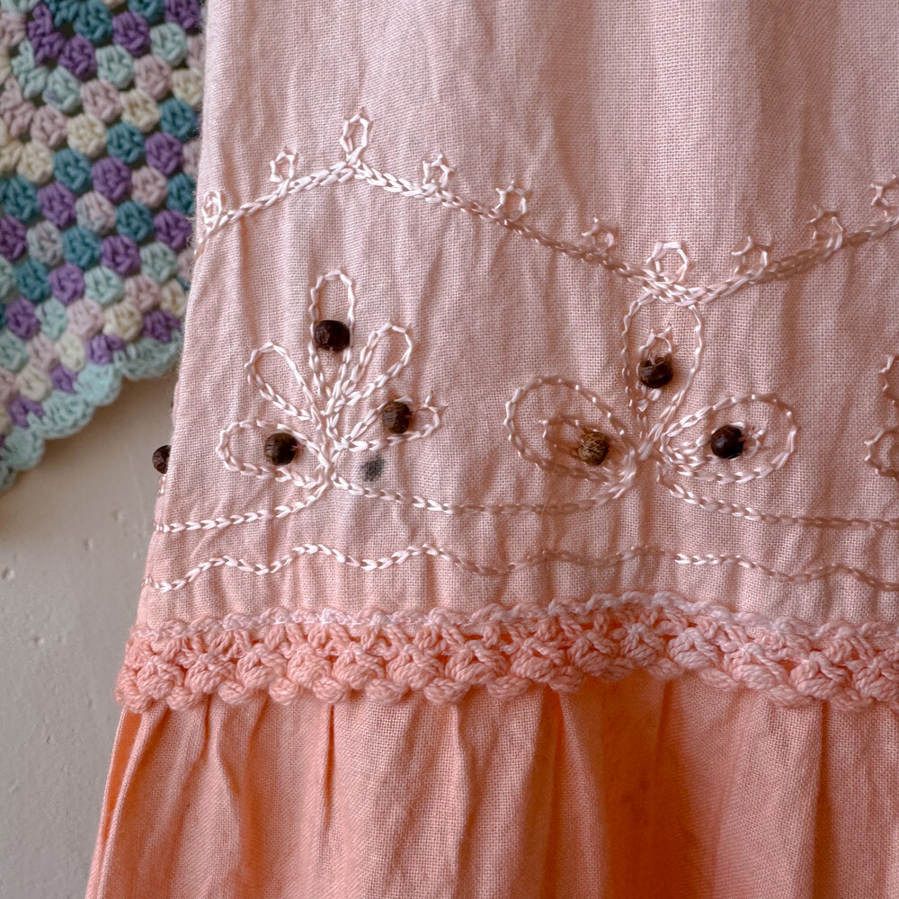 살구와 핑크가 섞인 색감의 그라데이션 원피스예요