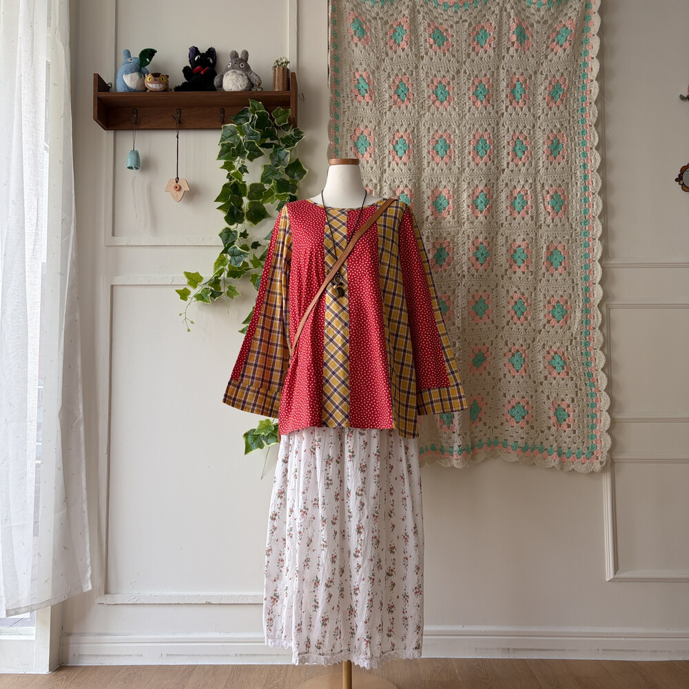 모리모리한 느낌의 패치워크 블라우스예요