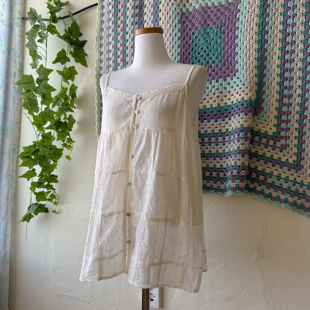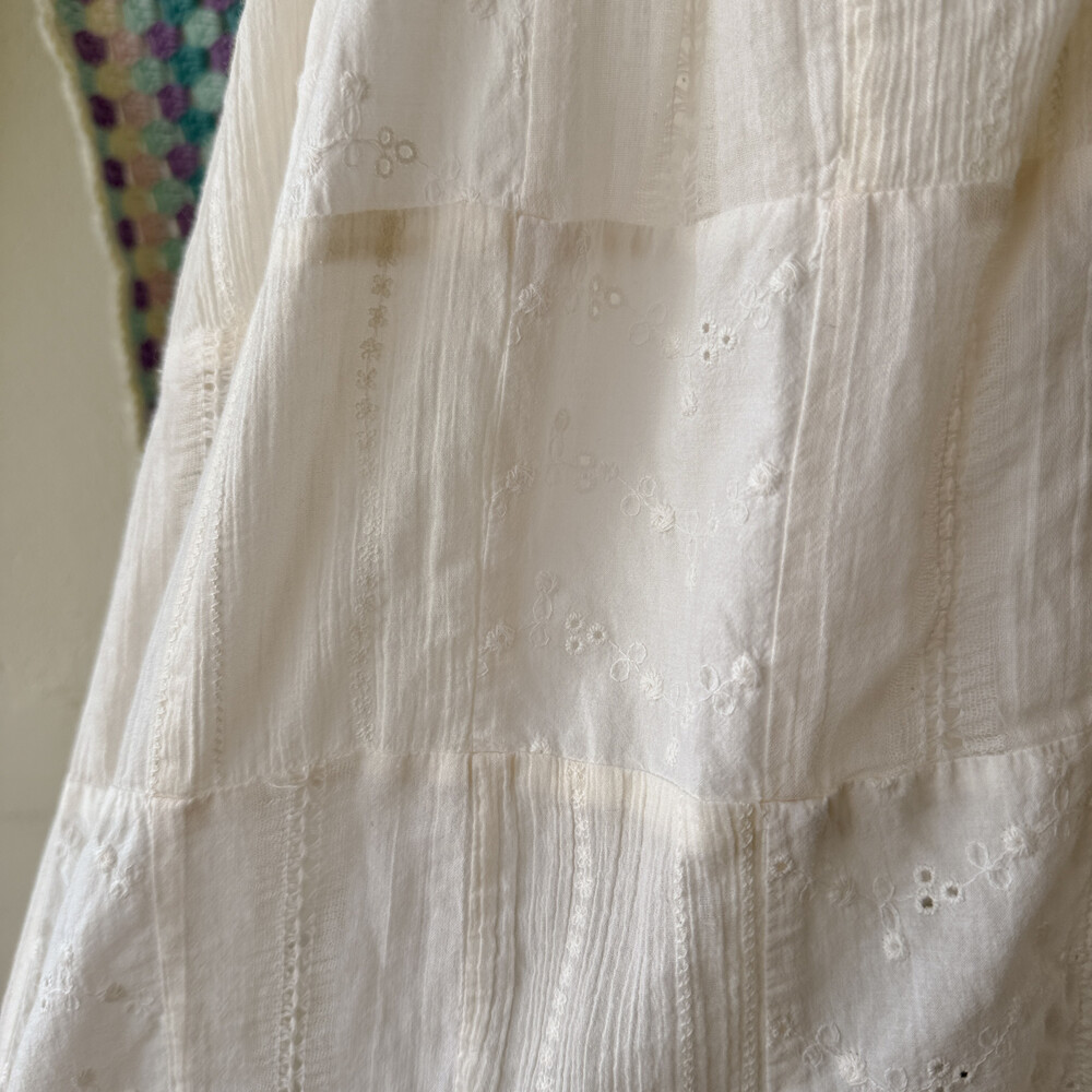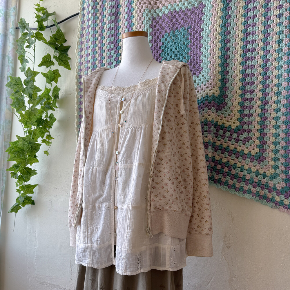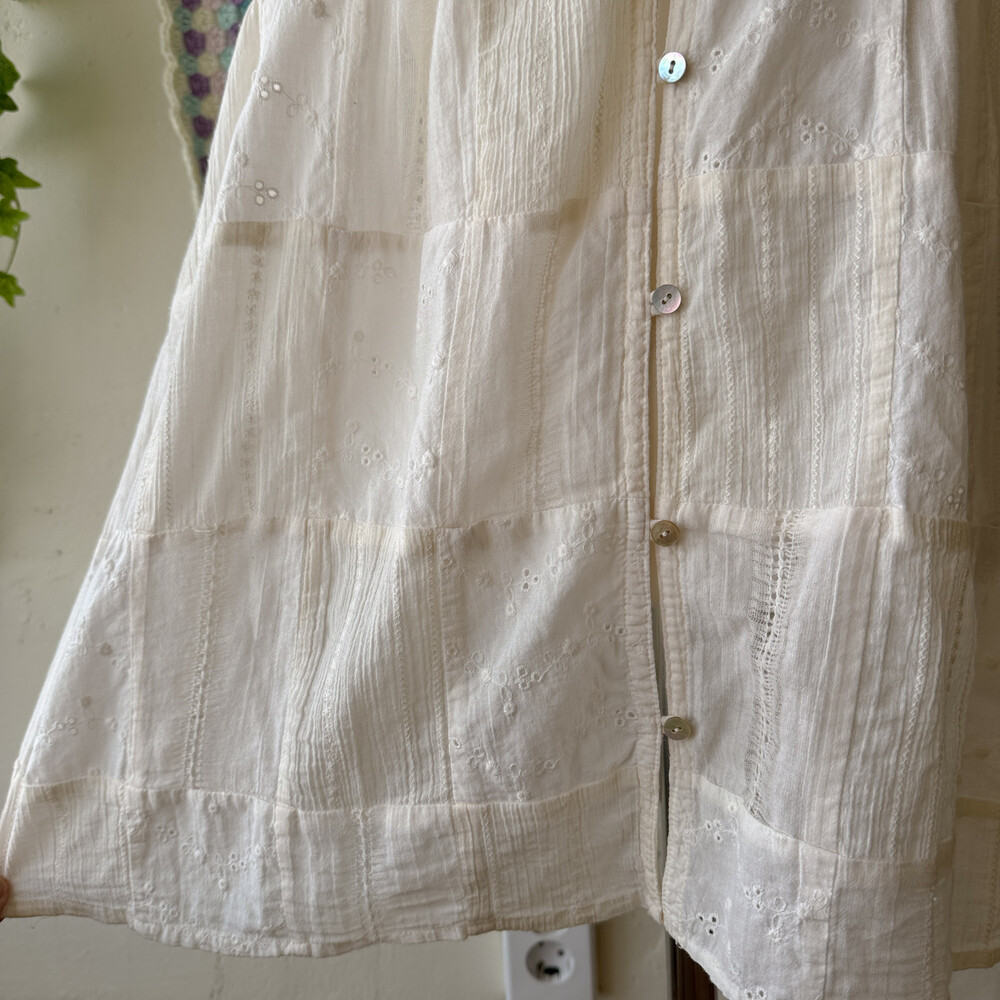 아이보리 색감의 패치워크 슬리브리스 블라우스예요