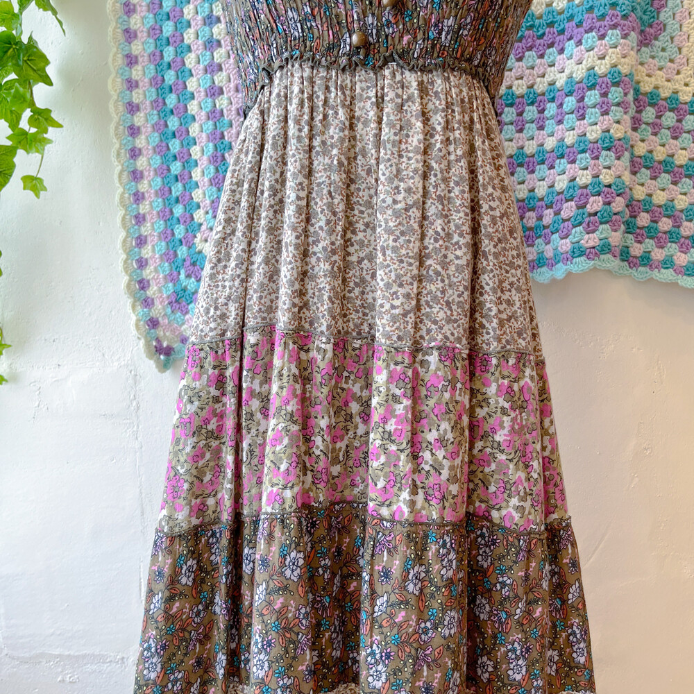 코튼 소재구요, 꽃무늬들이 가득한 웜톤 원피스랍니다