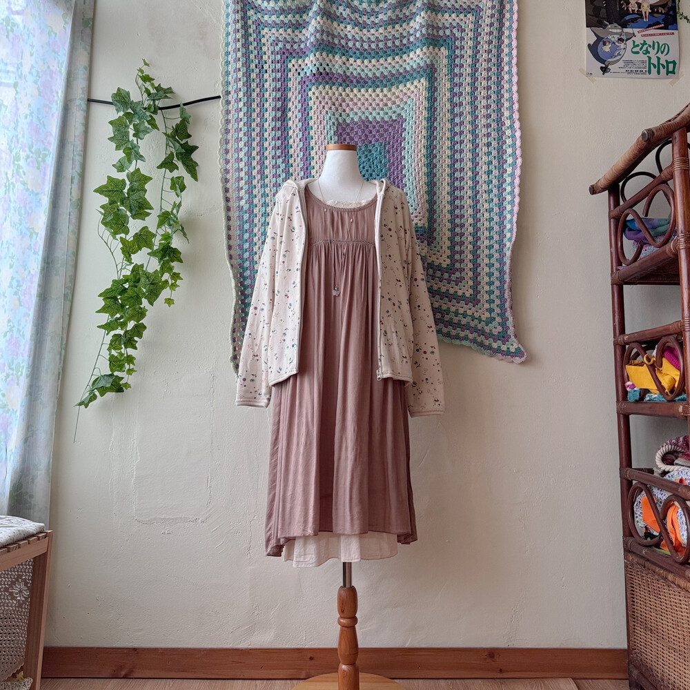 연베이지 색감의 후드 집업 가디건이에요