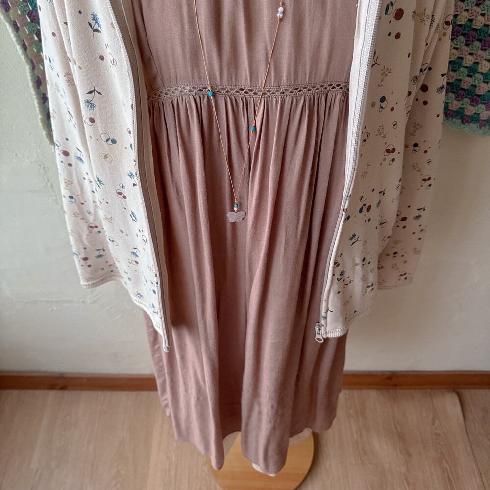 정사이즈 핏이구요, 지퍼 닫지 않고 원피스 위에 걸쳐 입으면
