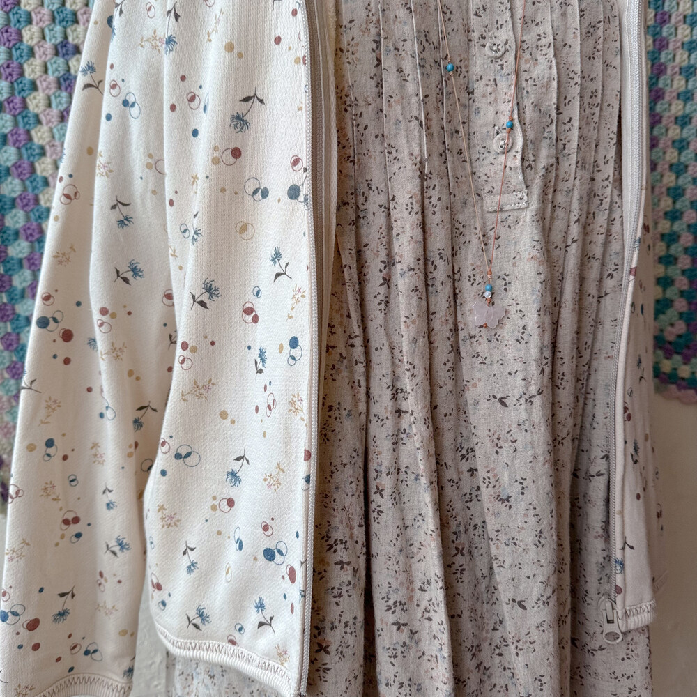 dandelion&bubble pattern hood zipup