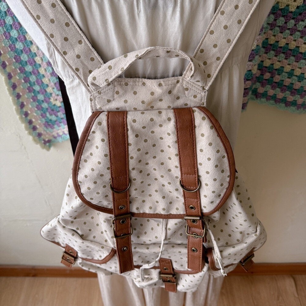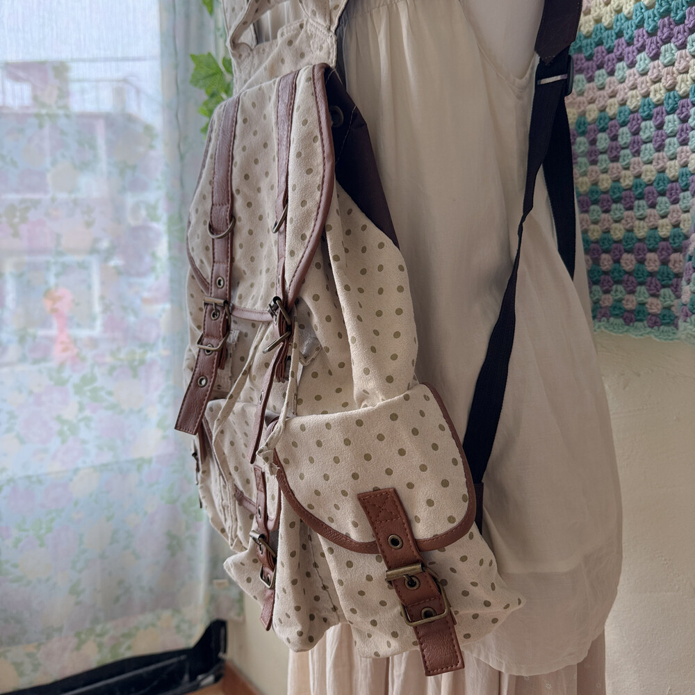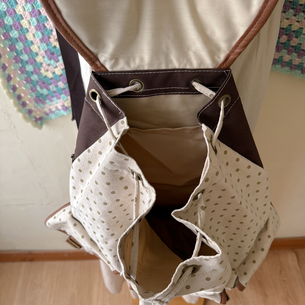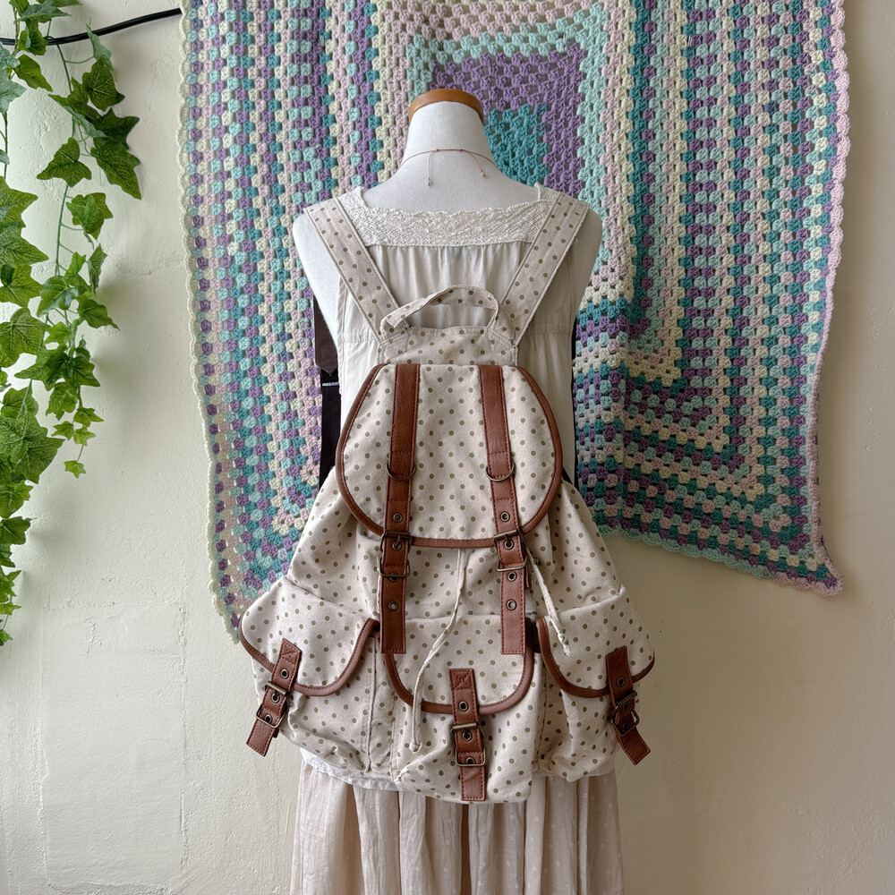 밝은 오트밀 색감의 도트 3포켓 백팩이에요