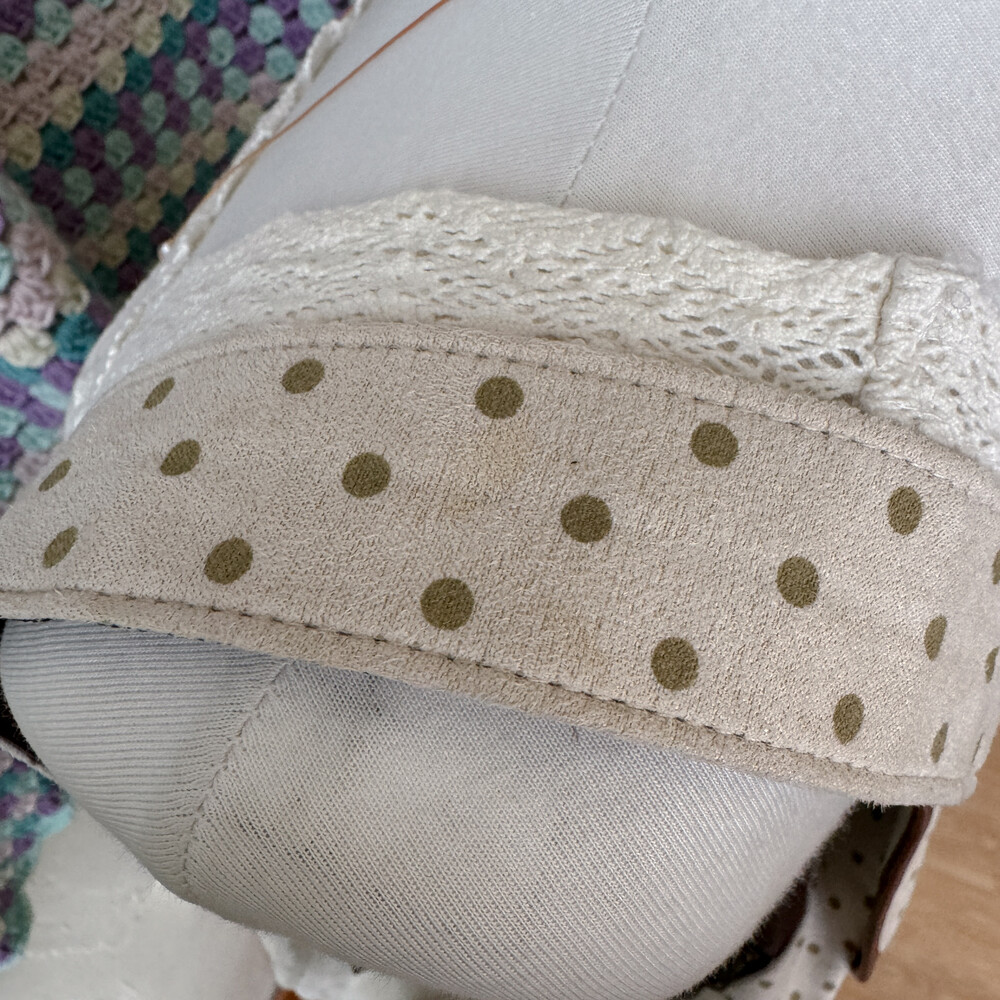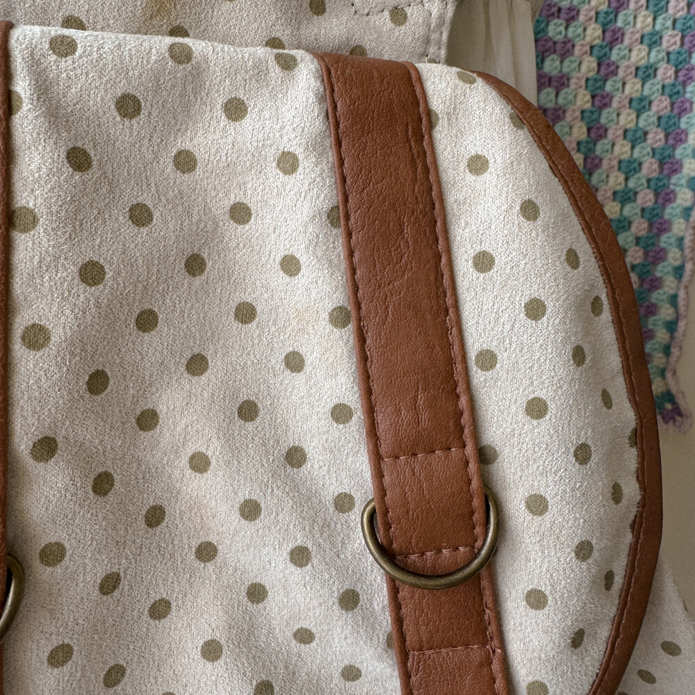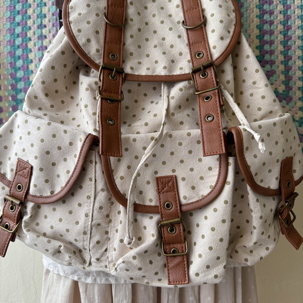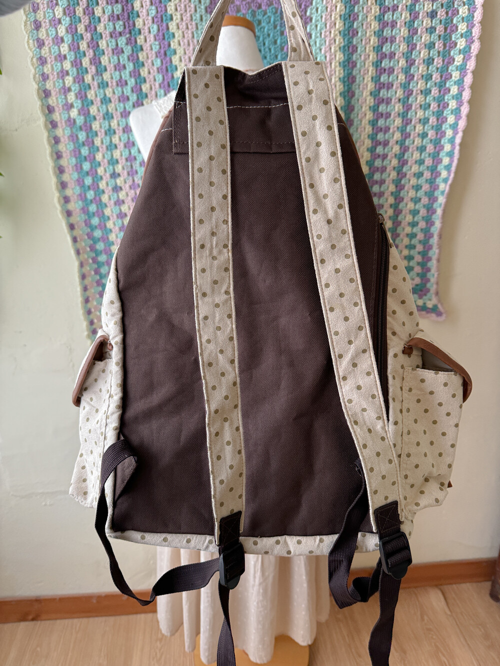 밝은 오트밀 색감의 도트 3포켓 백팩이에요