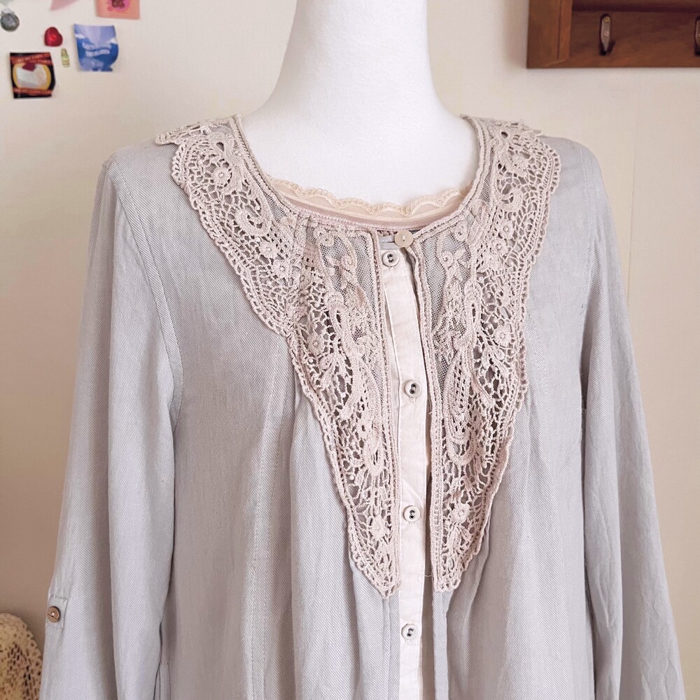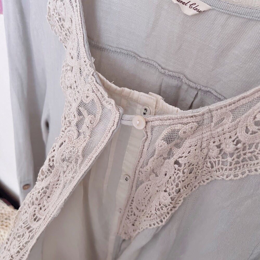 가슴 쪽 레이스 포인트와 밑단 핀턱 디자인이
