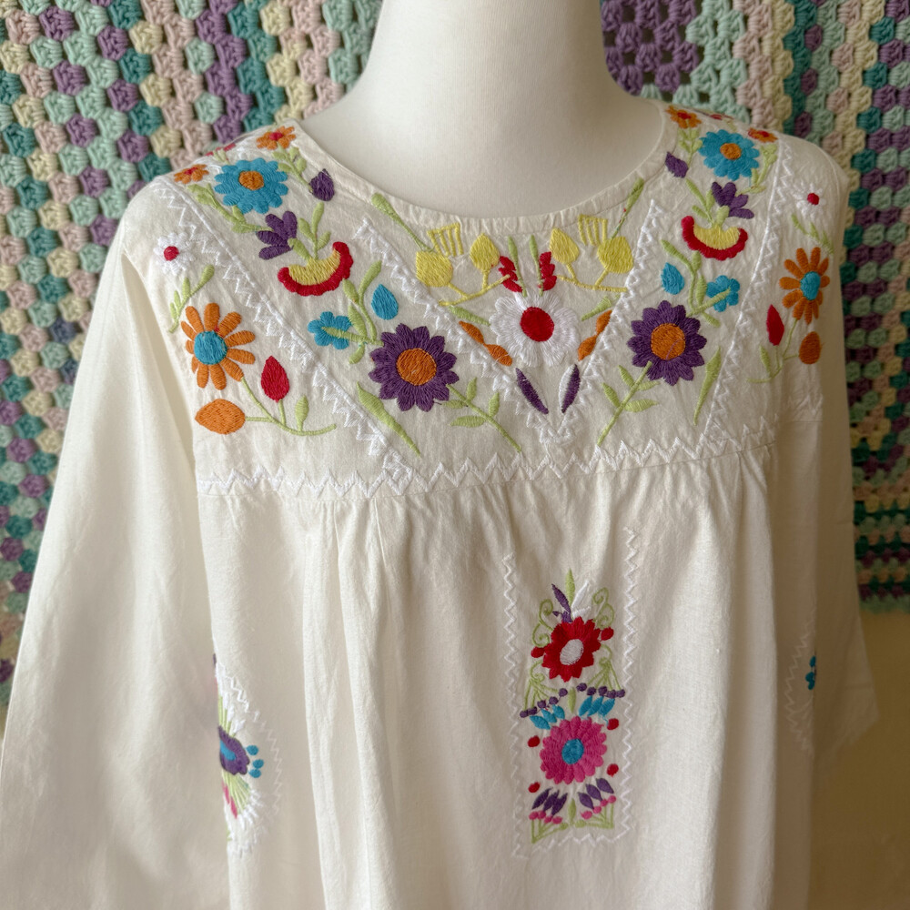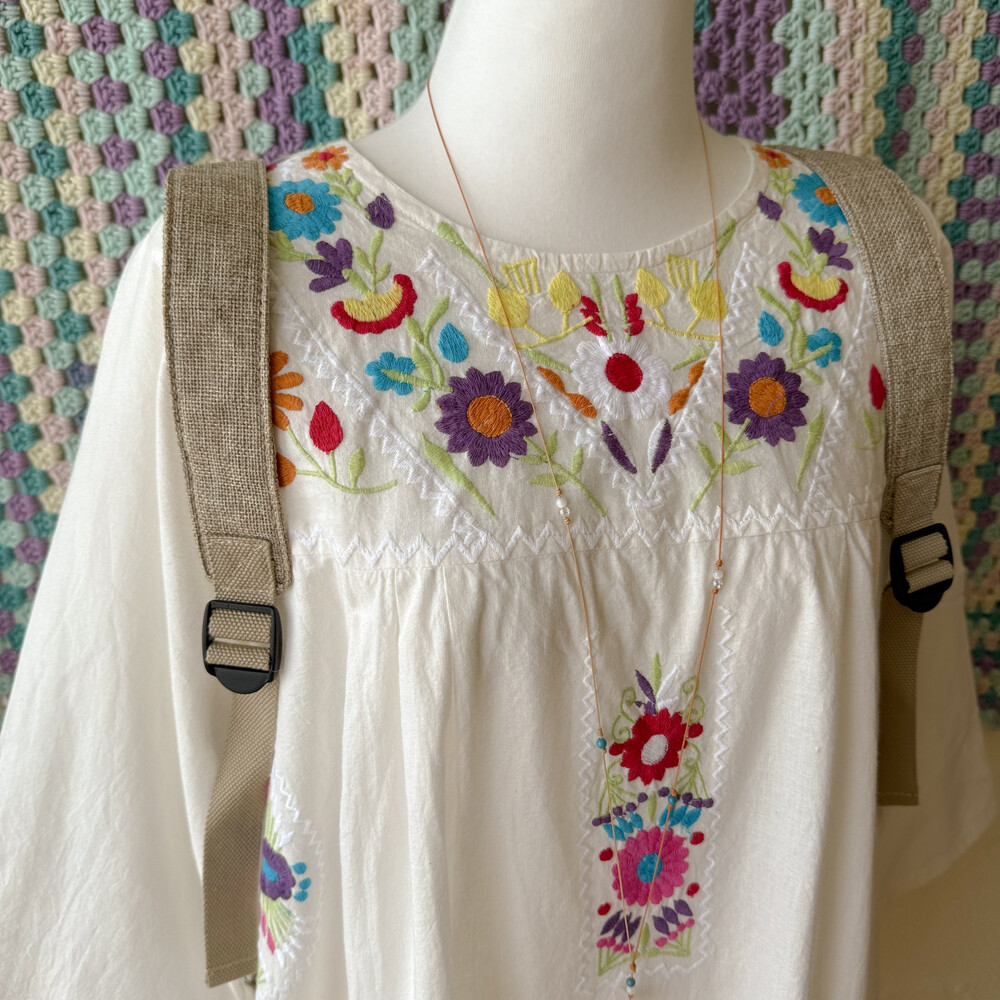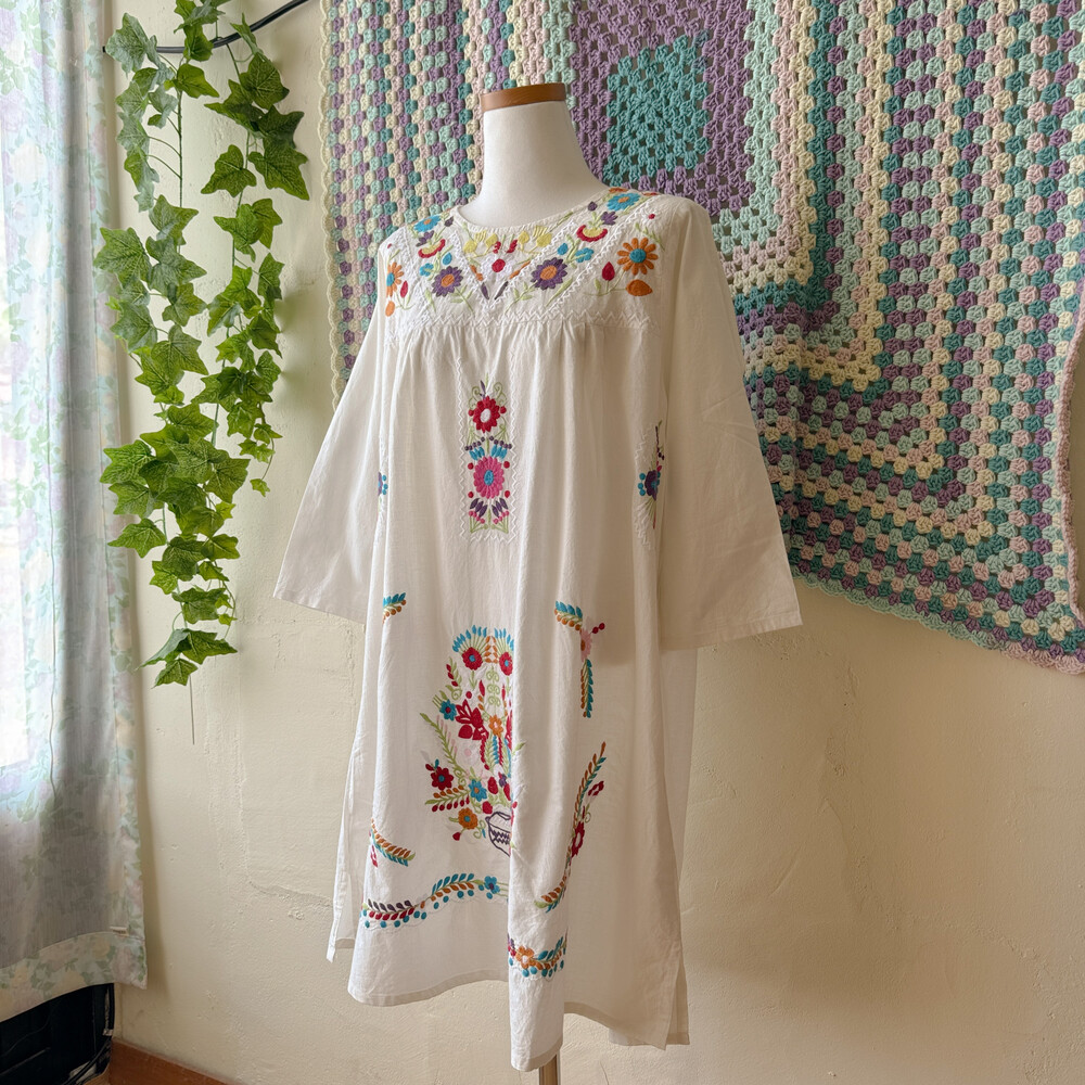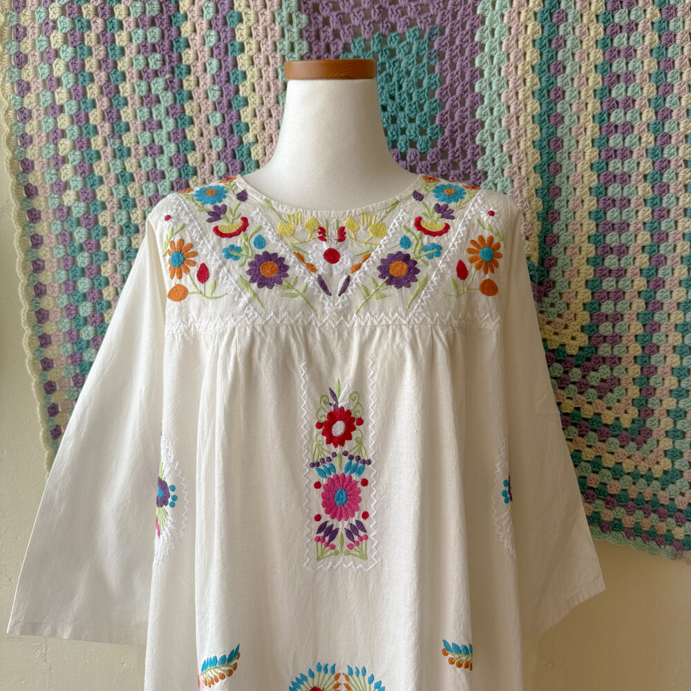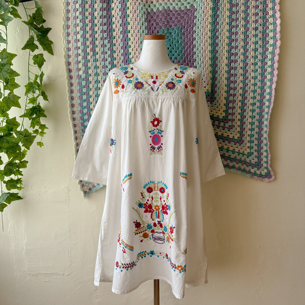 멕시칸 자수 디자인의 코튼 원피스예요