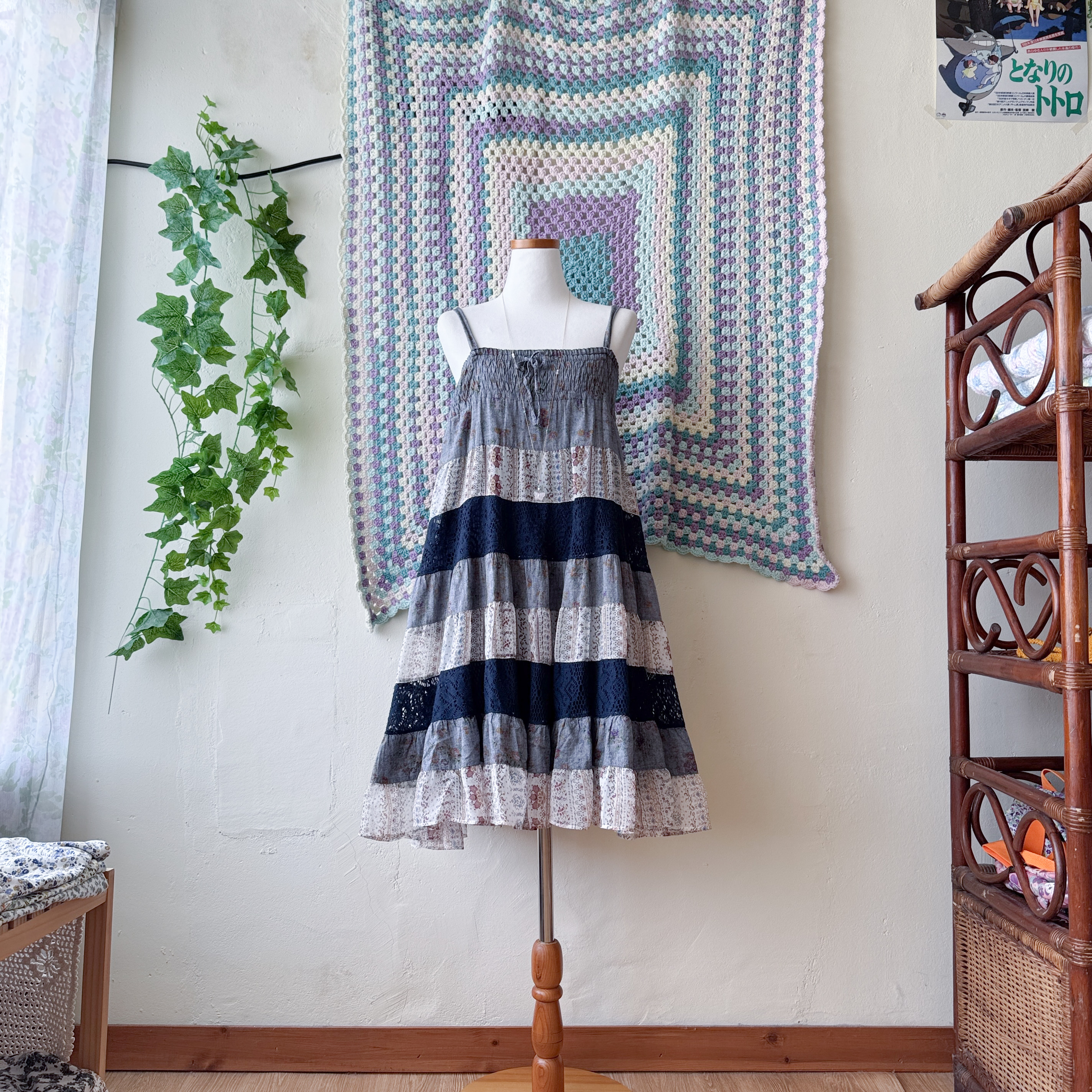 중청색감 코튼, 네이비 레이스, 화이트 쉬폰 패치가 조합되어 있구요