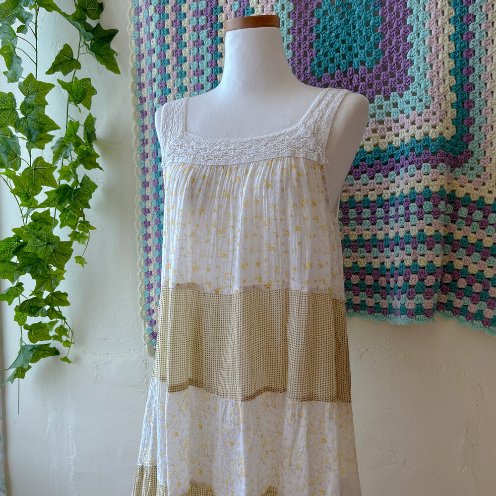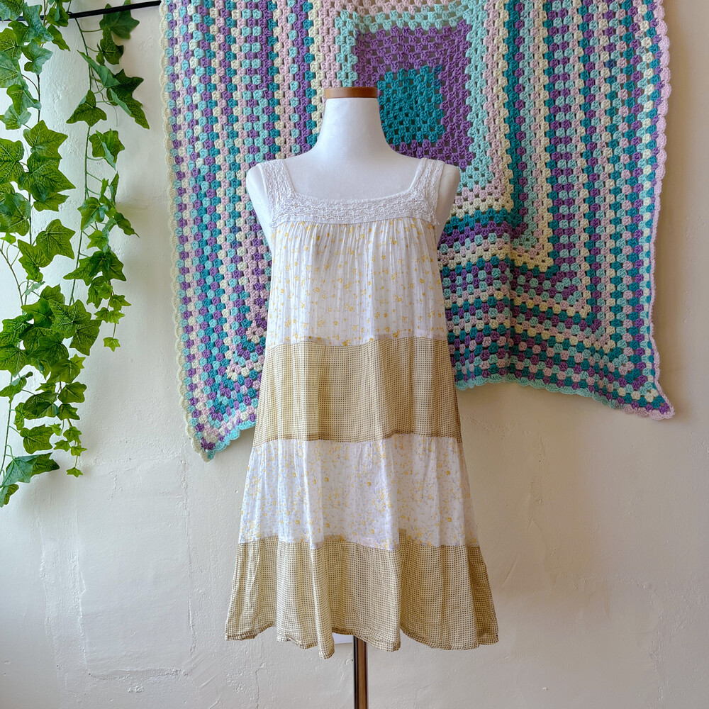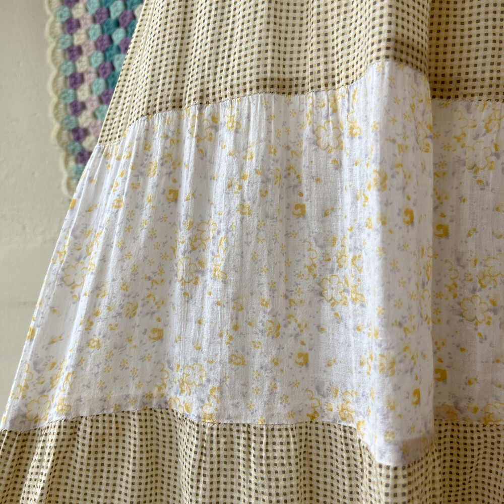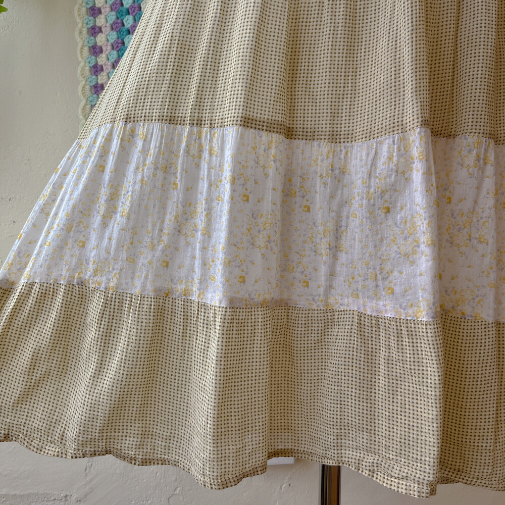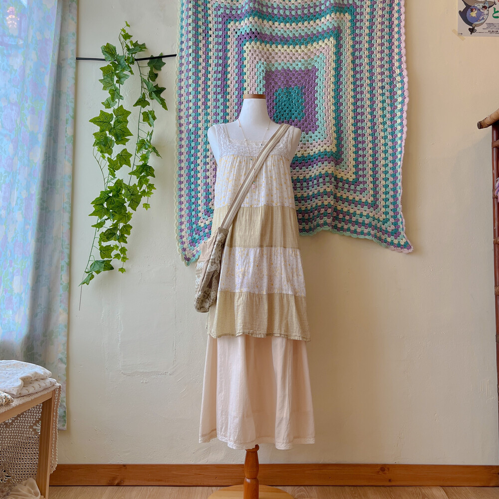 노랑 잔꽃 베이스의 패치워크 튜닉 원피스예요