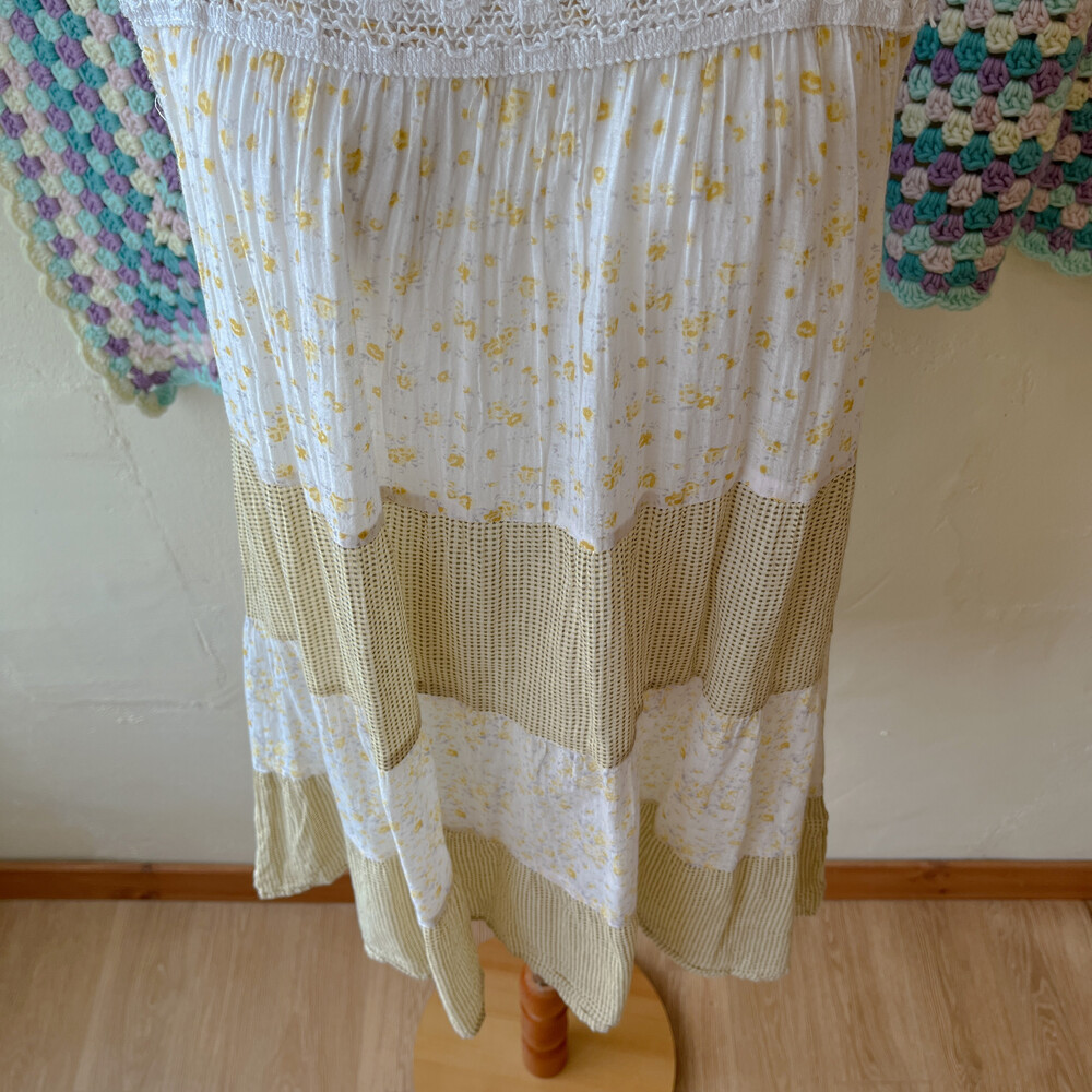 yellow flower crochet patch tunic