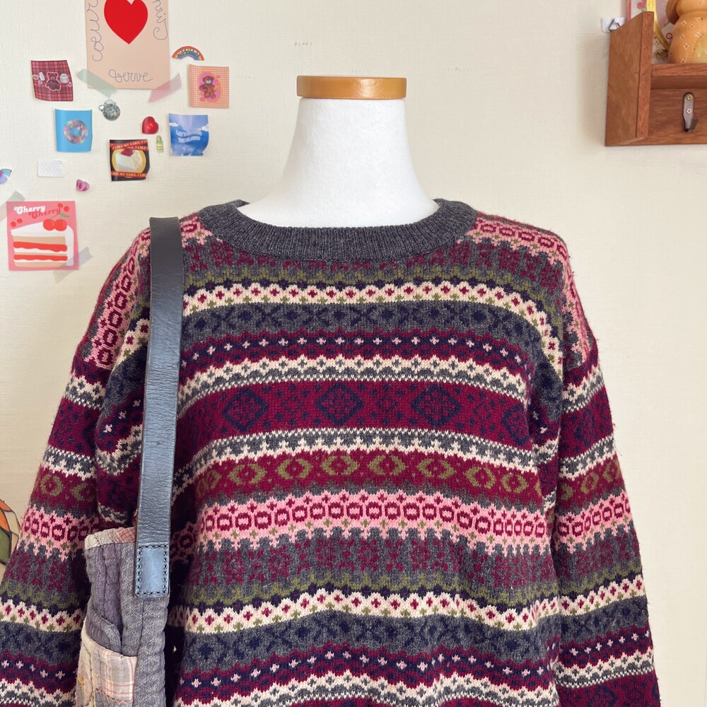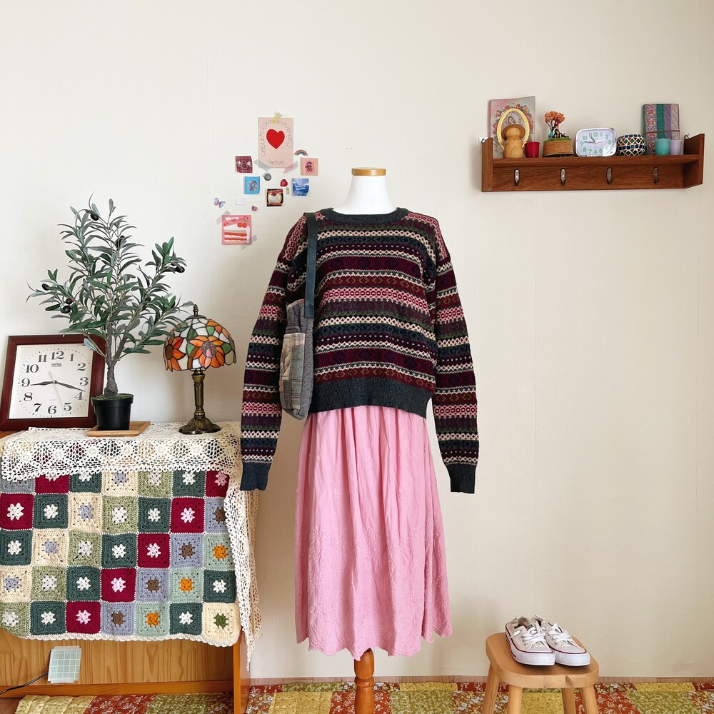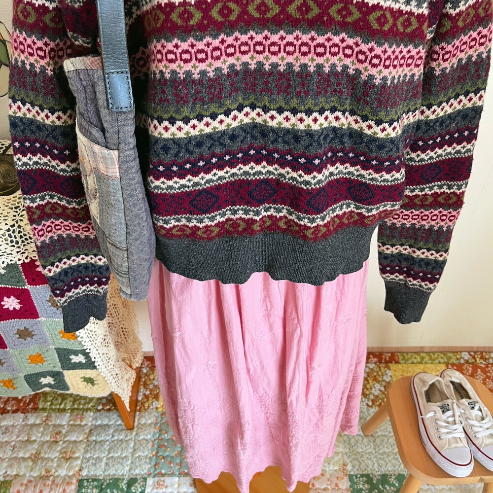 mori pink&gray pattern knit