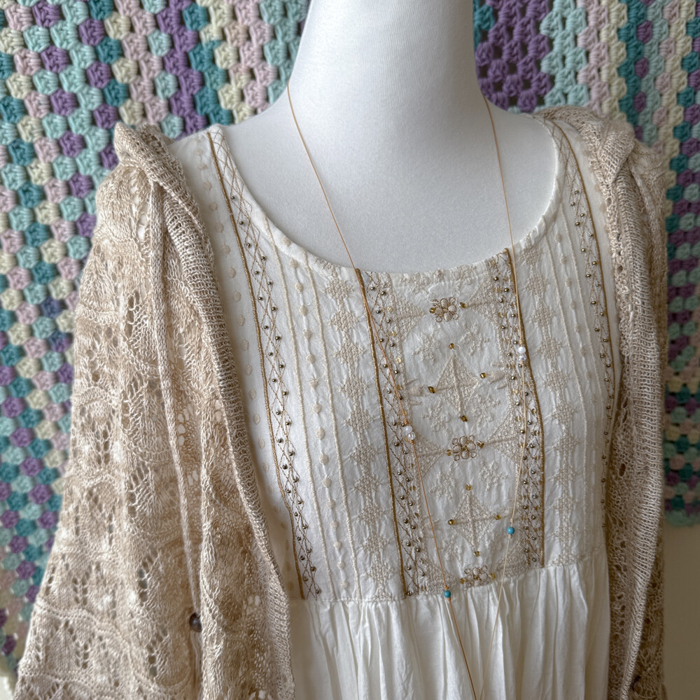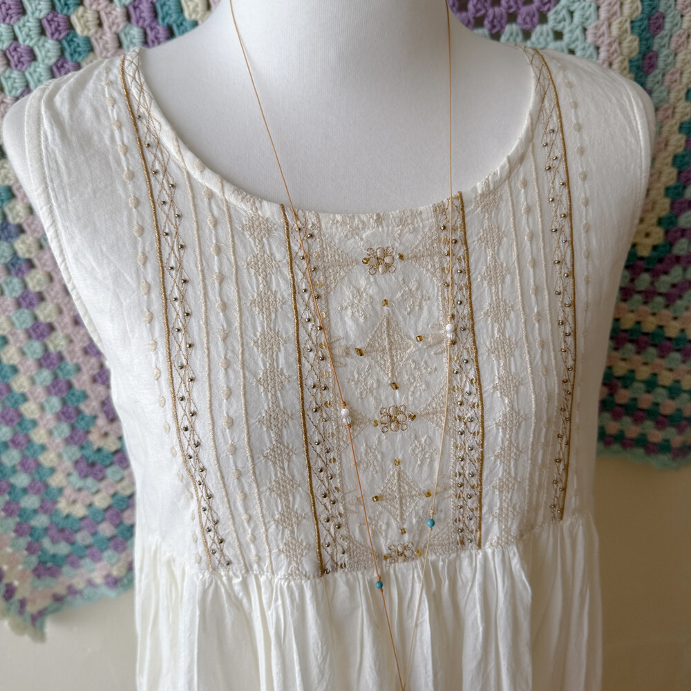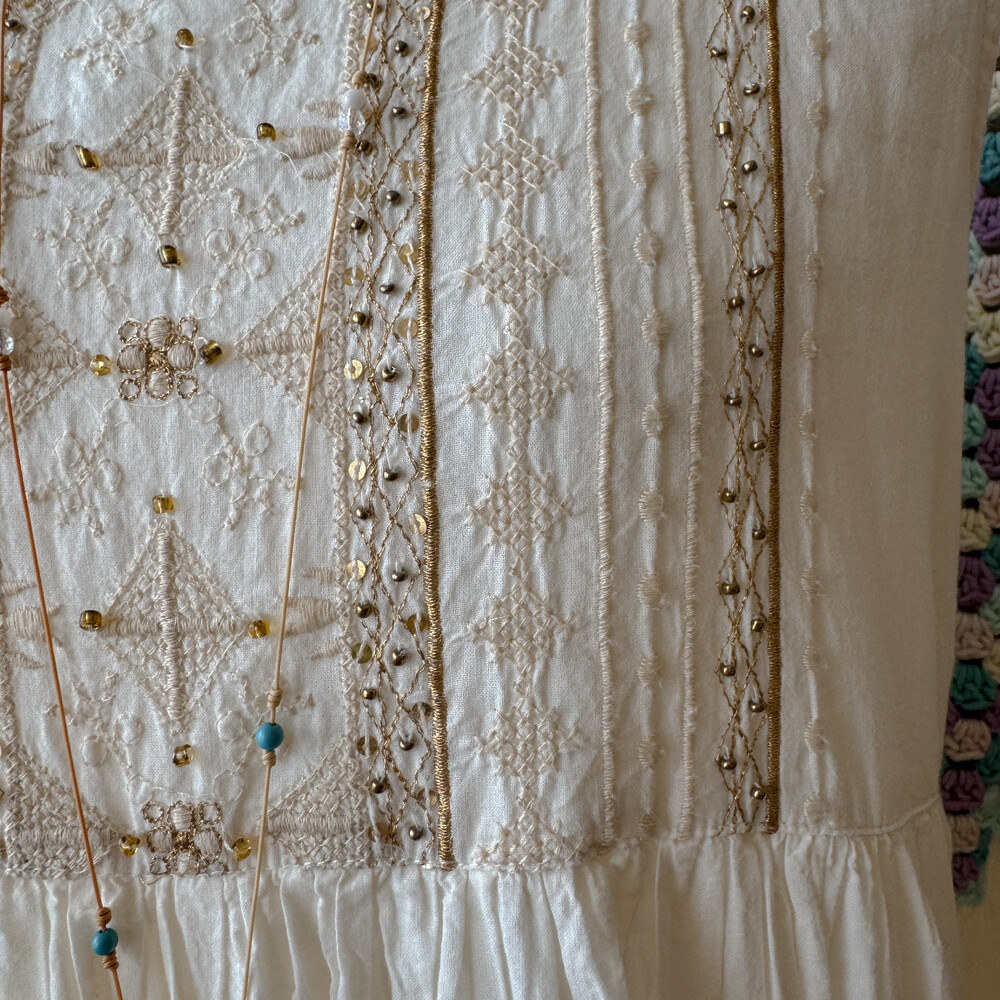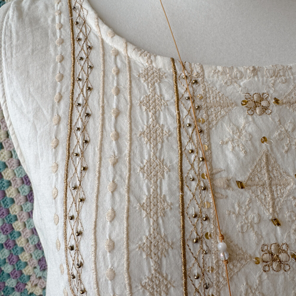 가슴에 연베이지와 금사 자수, 비즈들이 들어가 있어서