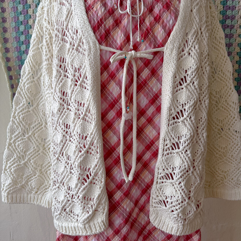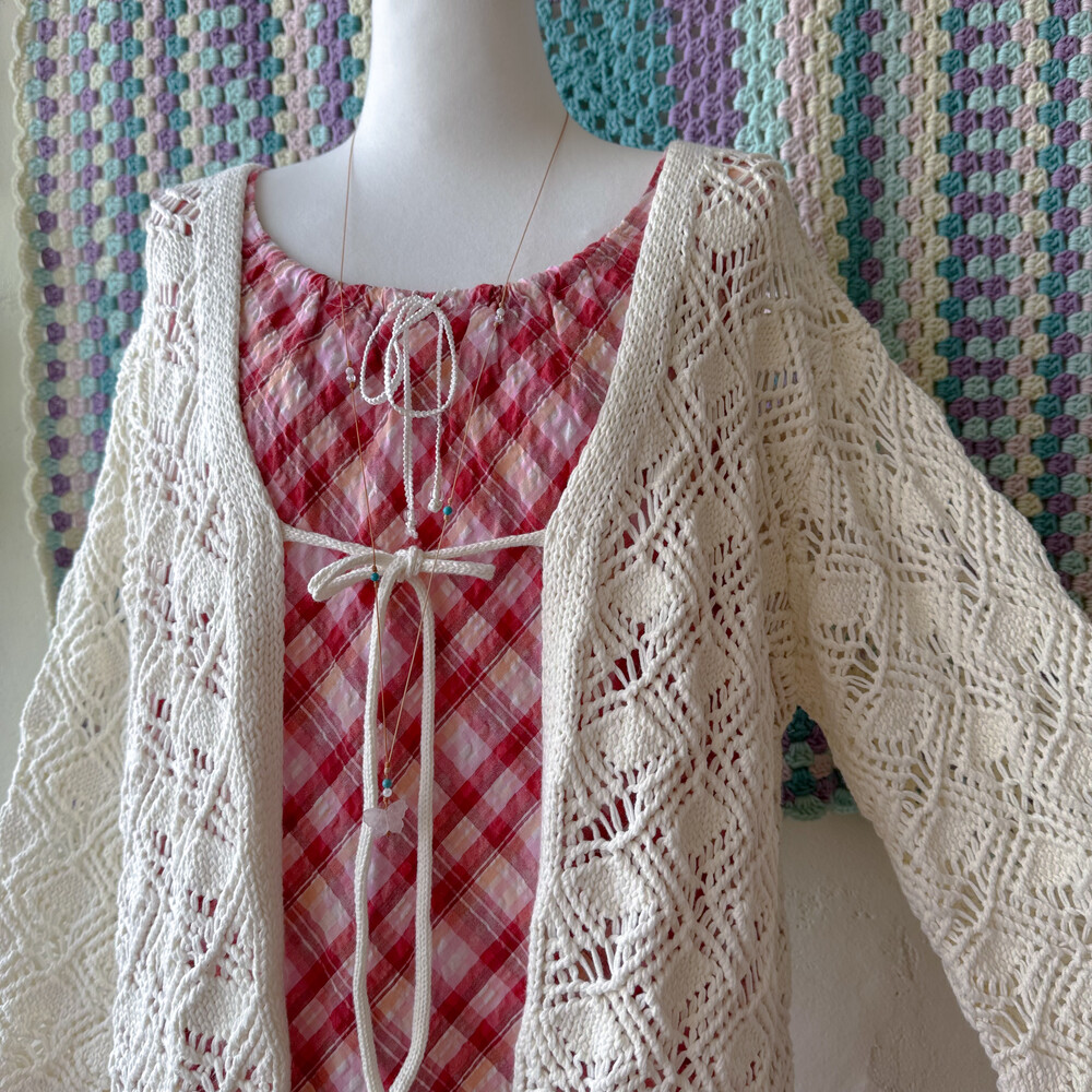 아이보리 색감의 긴소매 펀칭 가디건이에요