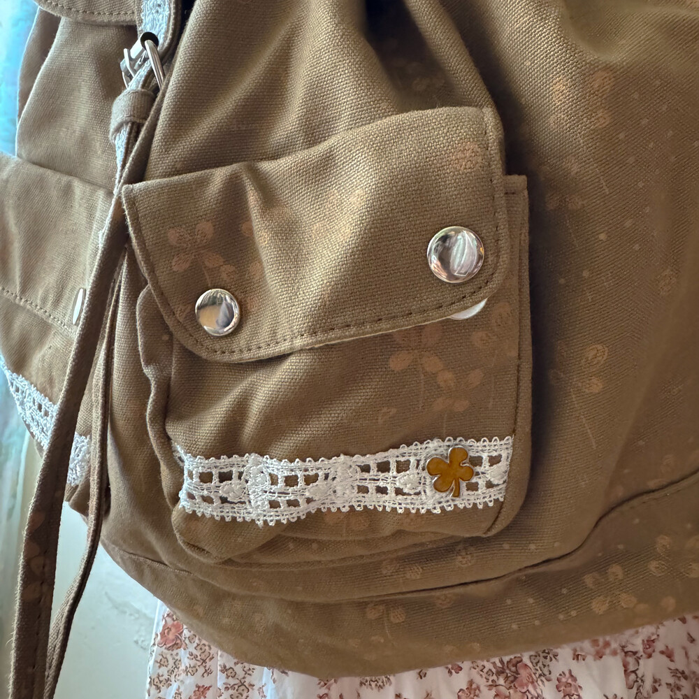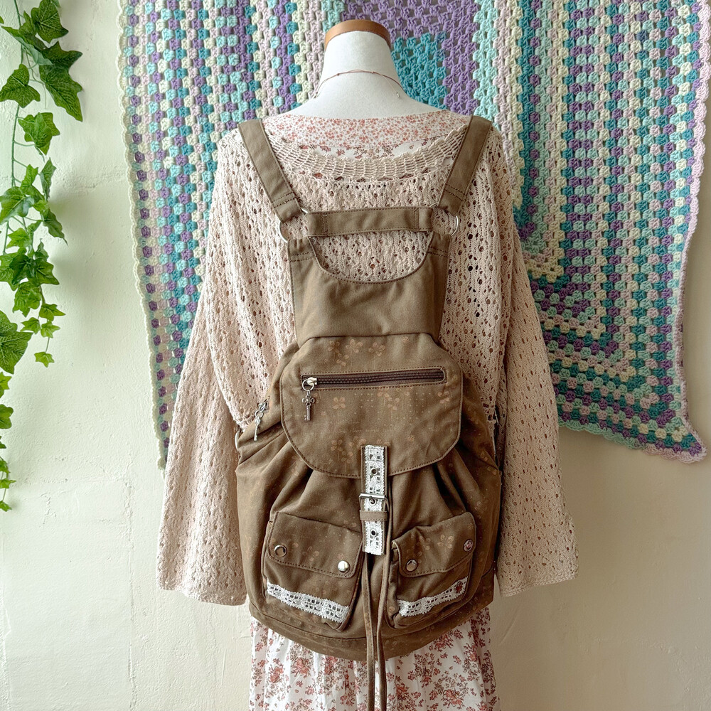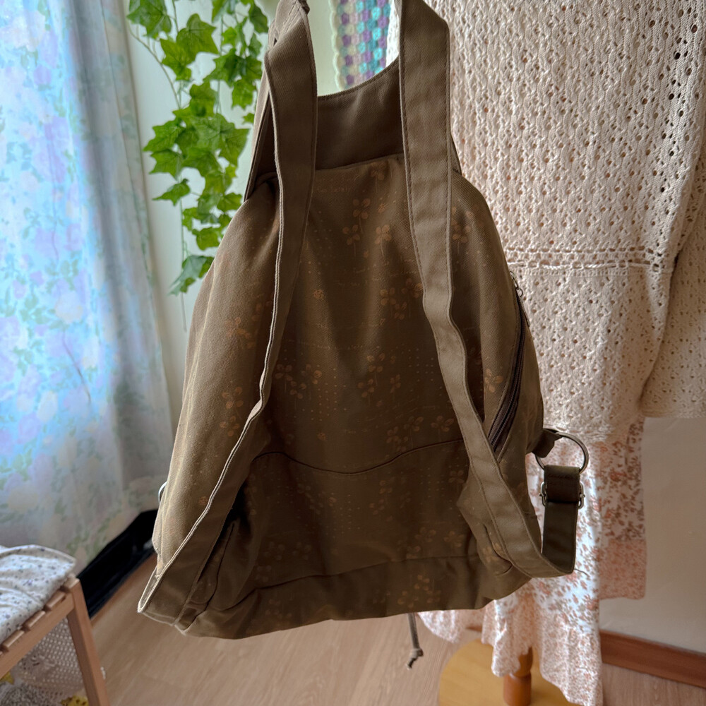 브라운 바탕에 황토색 꽃무늬가 가득한 백팩이에요