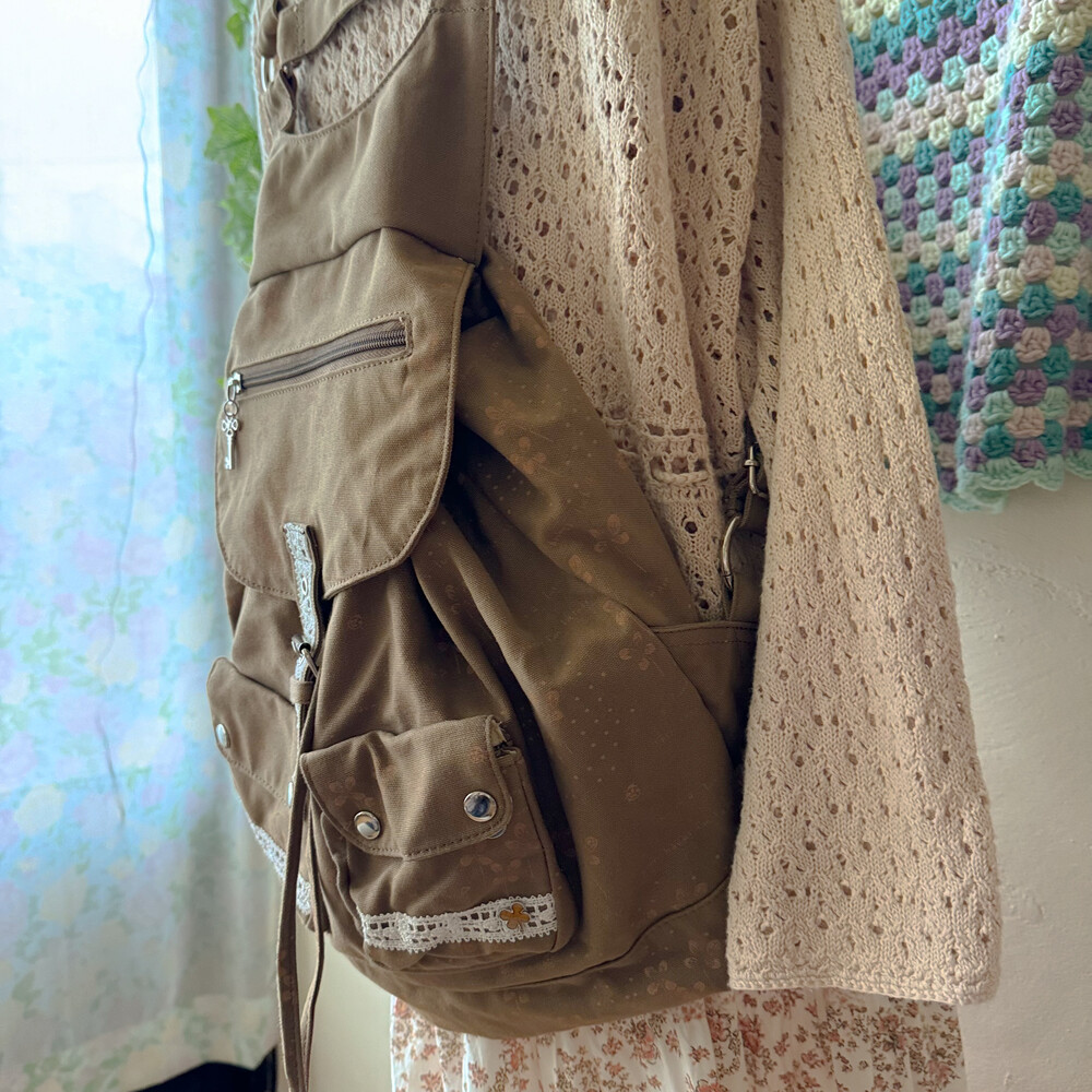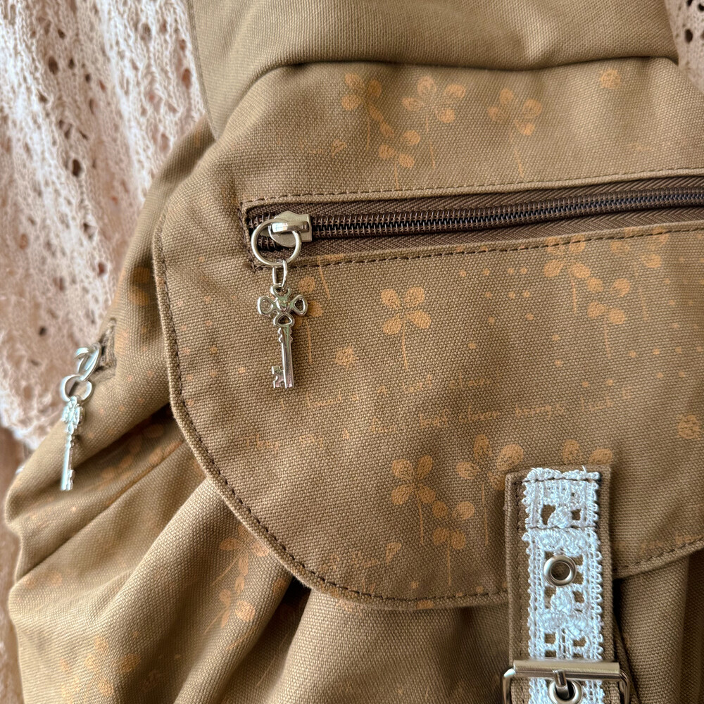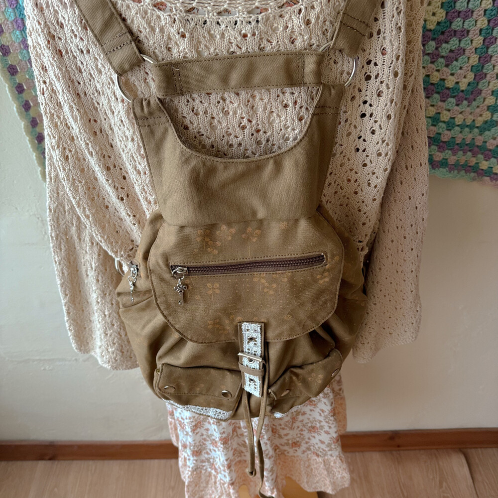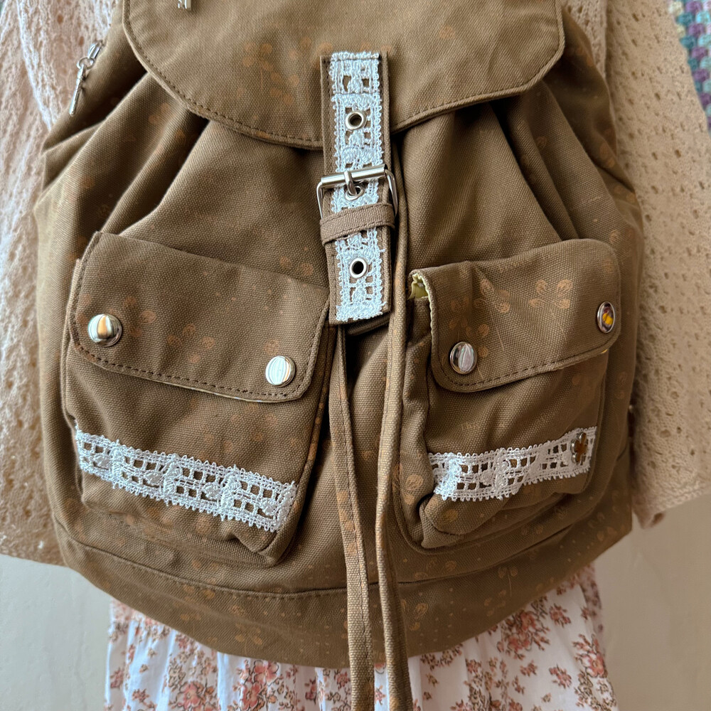 브라운 바탕에 황토색 꽃무늬가 가득한 백팩이에요