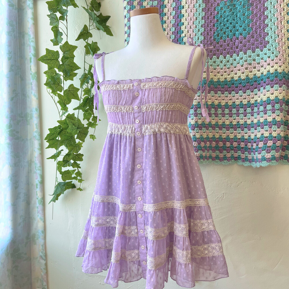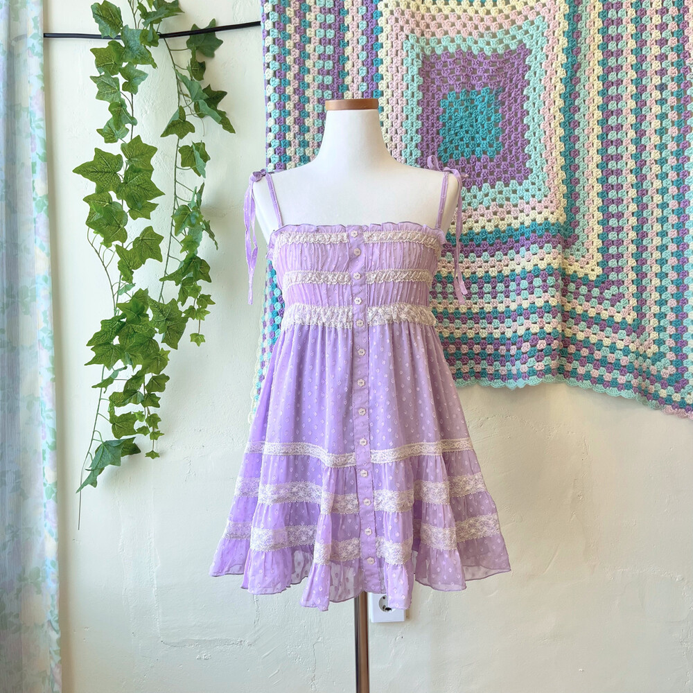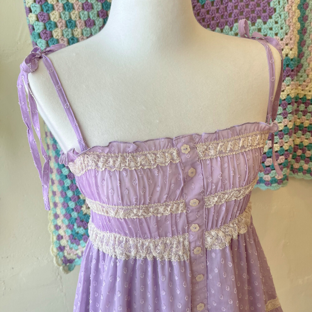 purple pompom&lace fairy tunic
