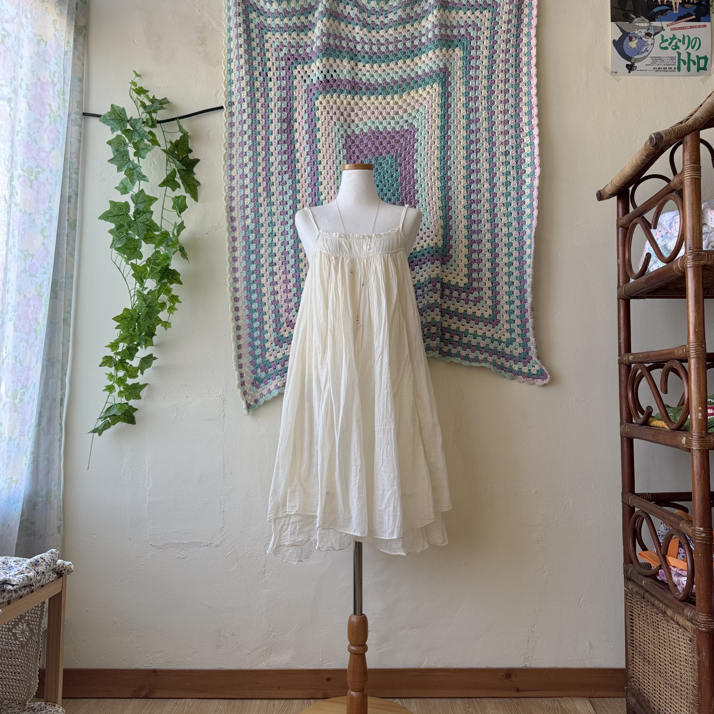 아이보리 색감의 캉캉 끈원피스예요