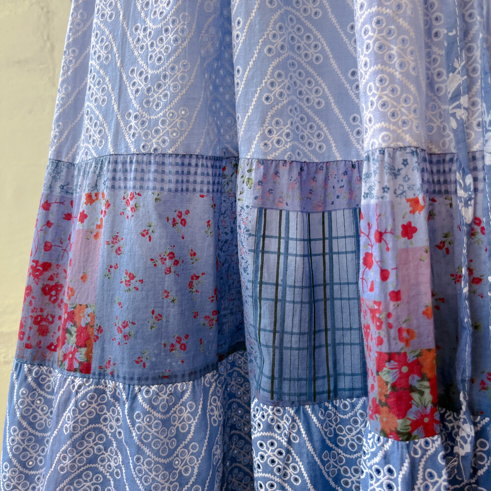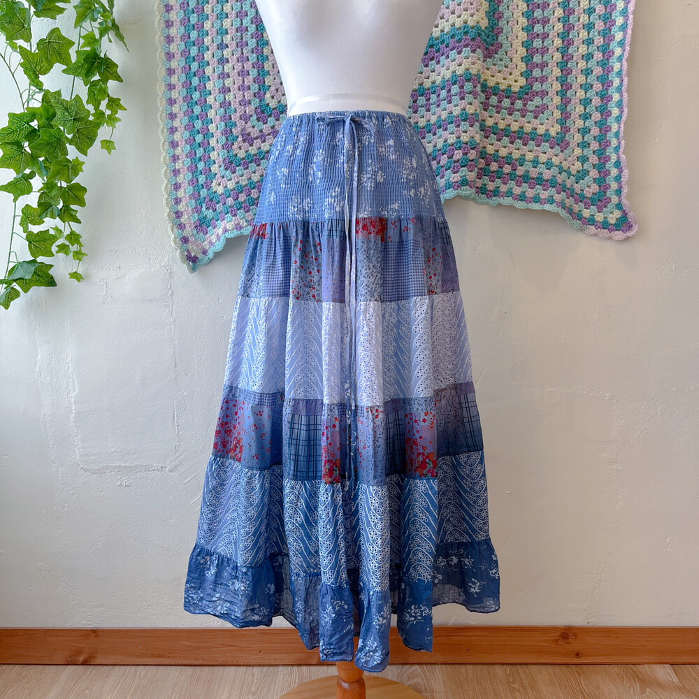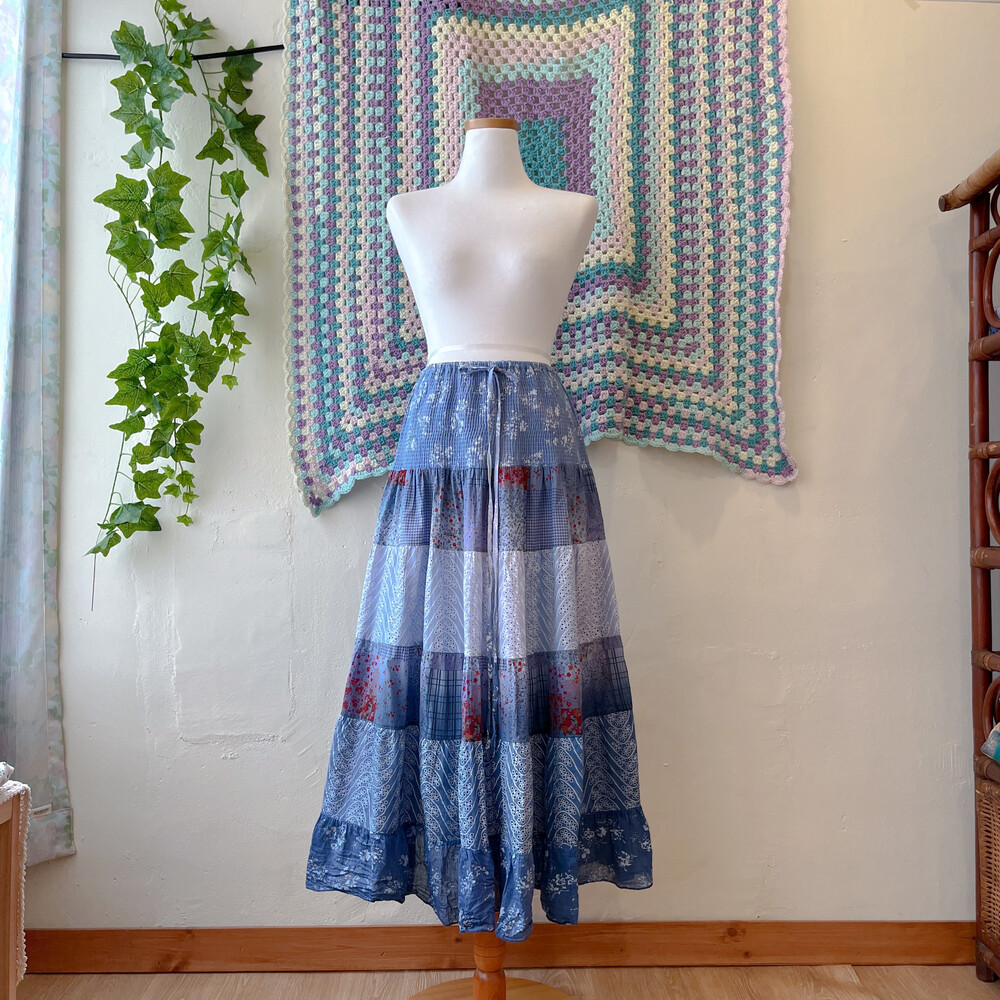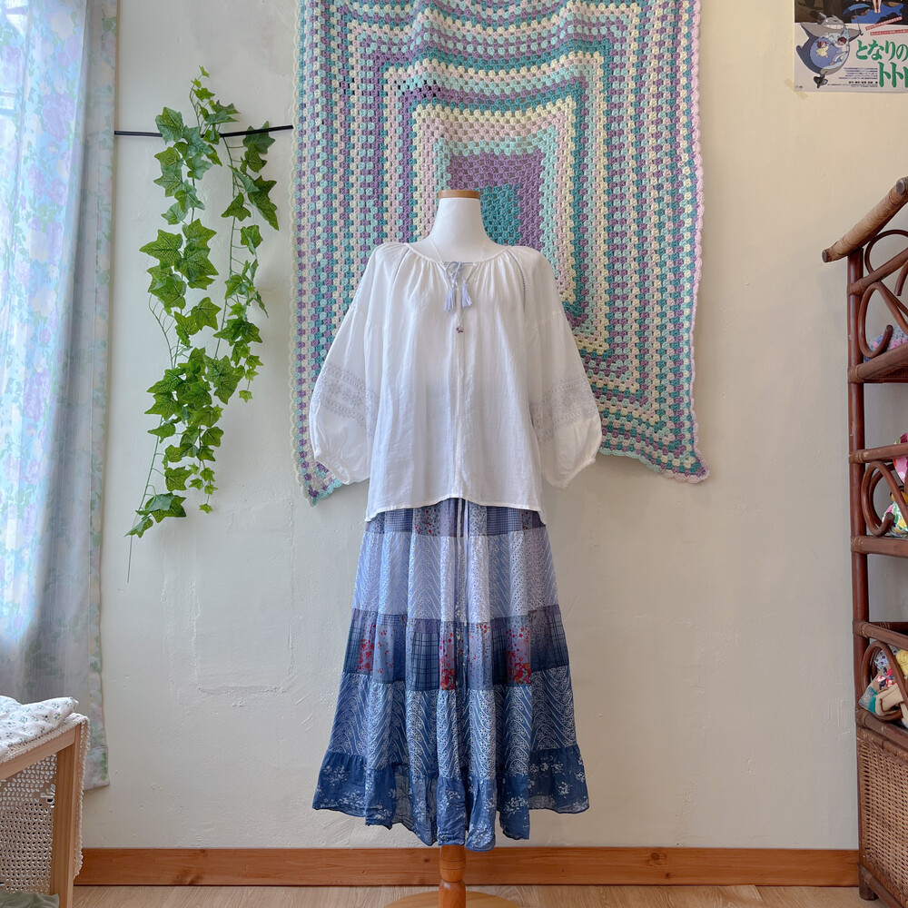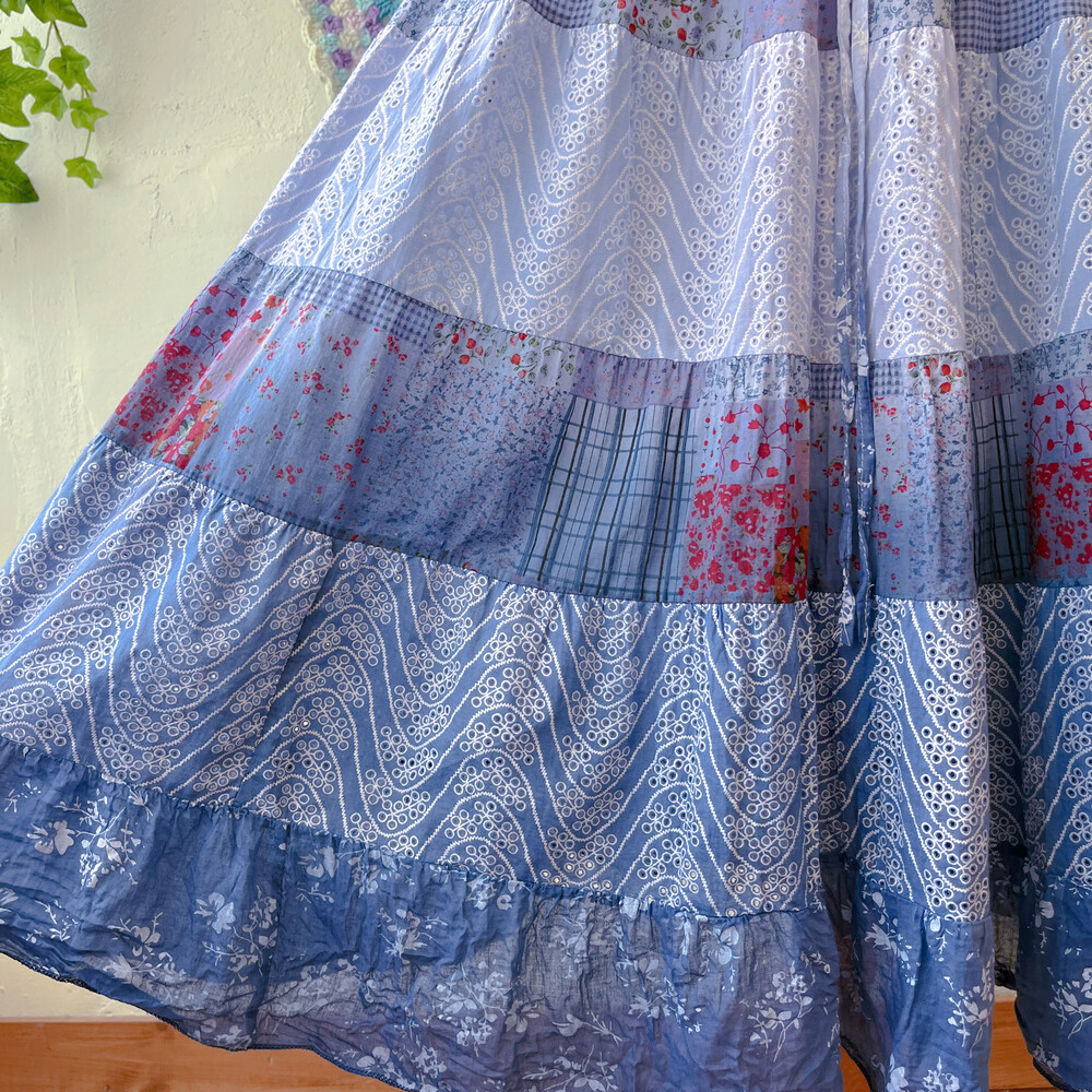 블루 색감의 그라데이션 패치 코튼 스커트예요