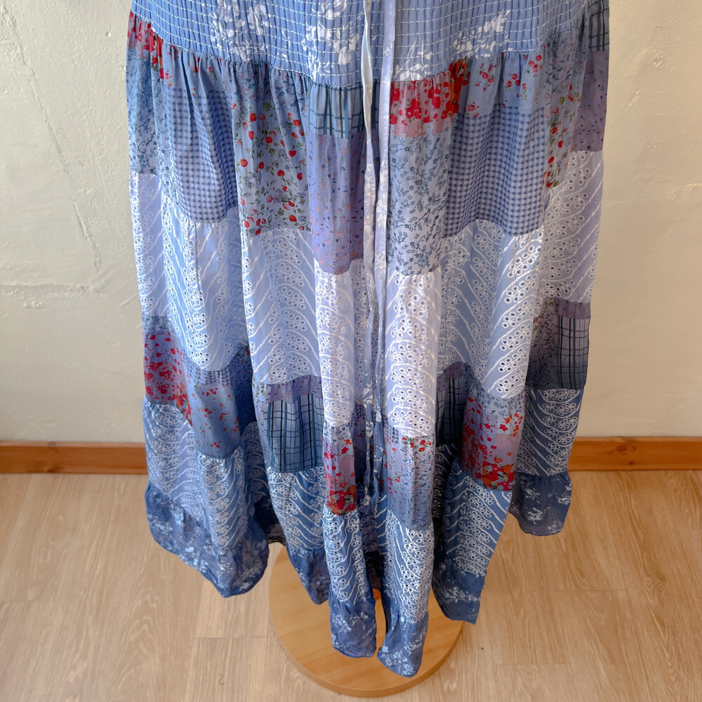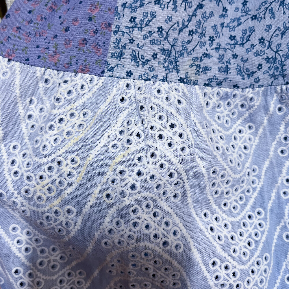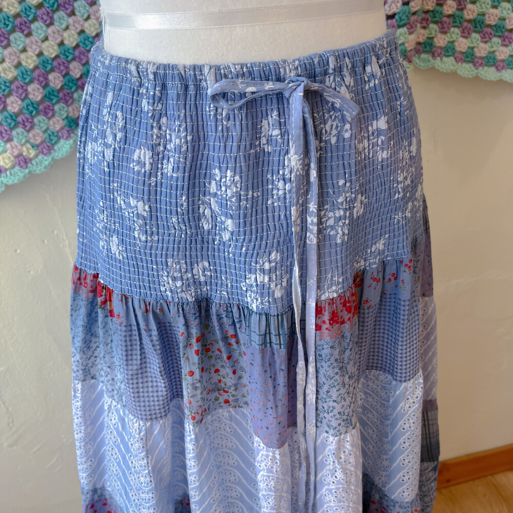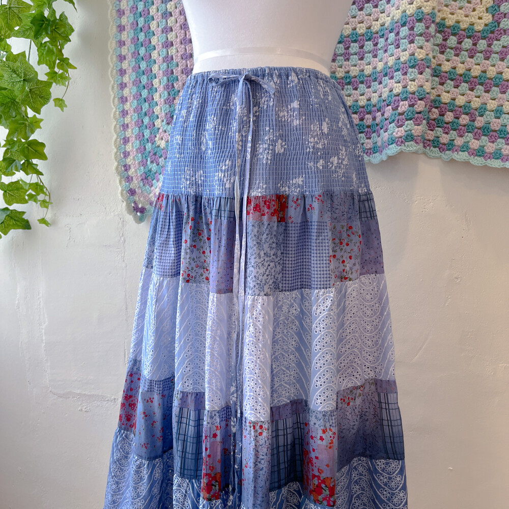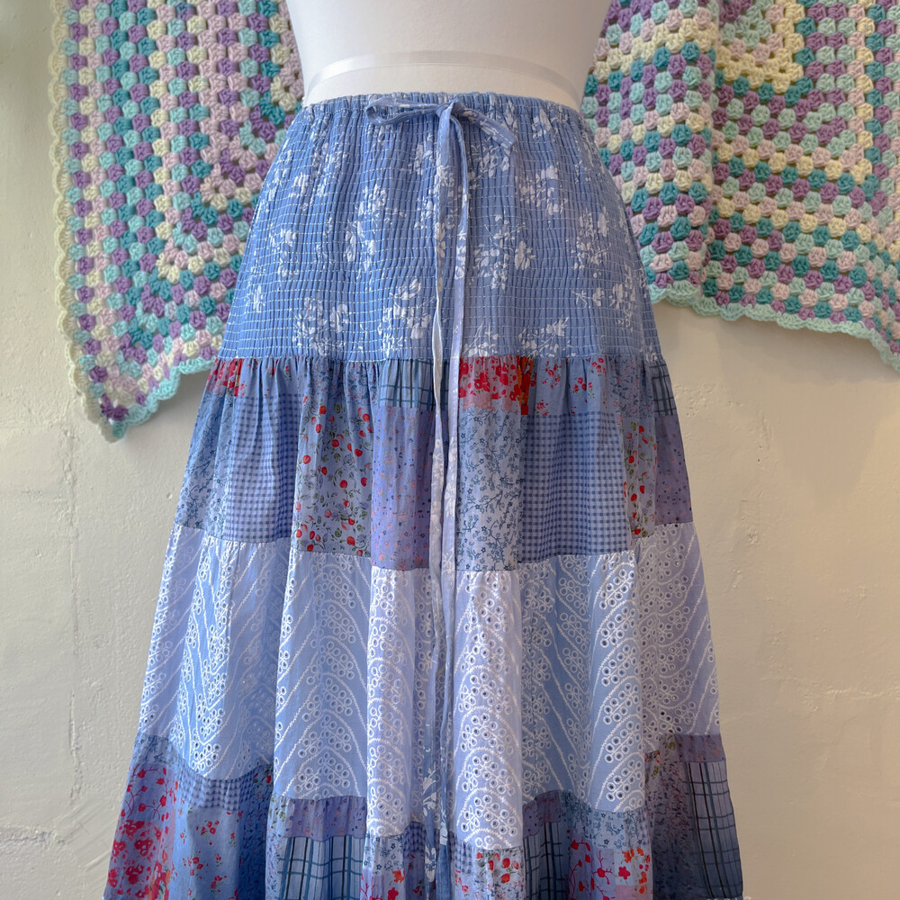 블루 색감의 그라데이션 패치 코튼 스커트예요