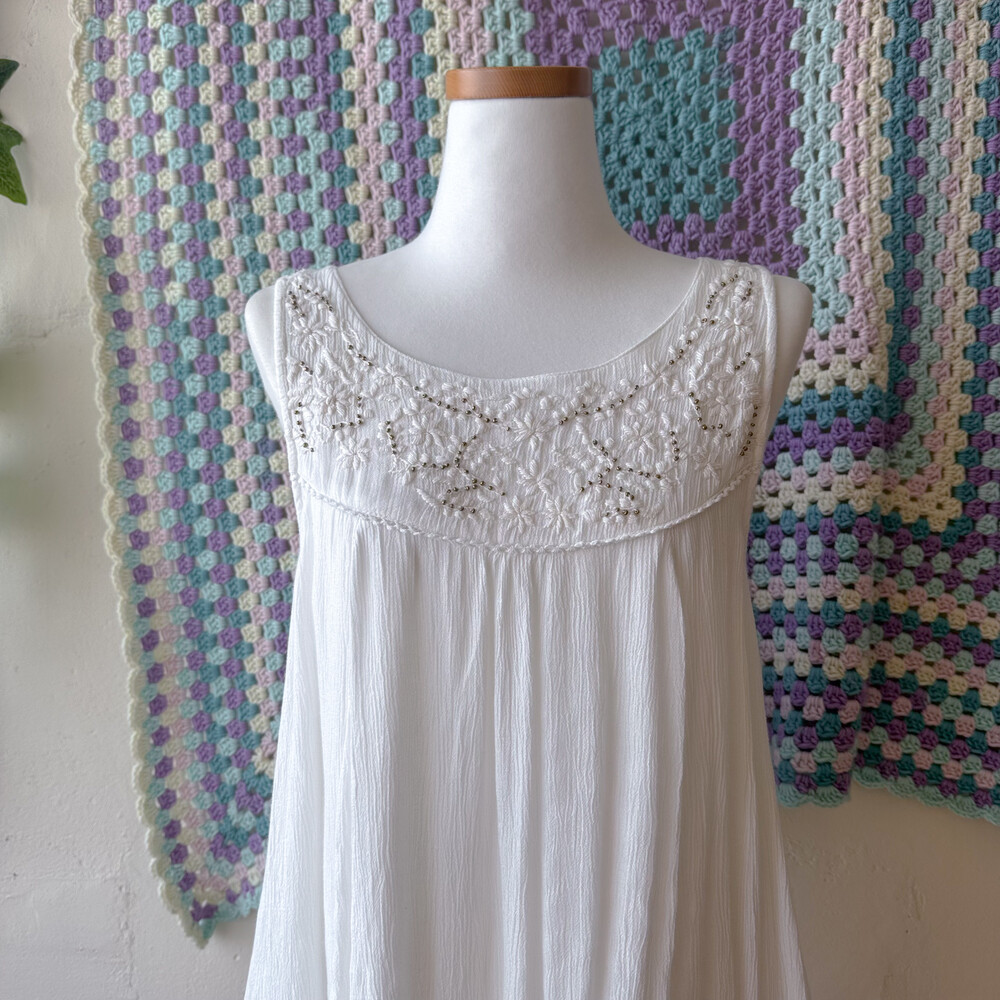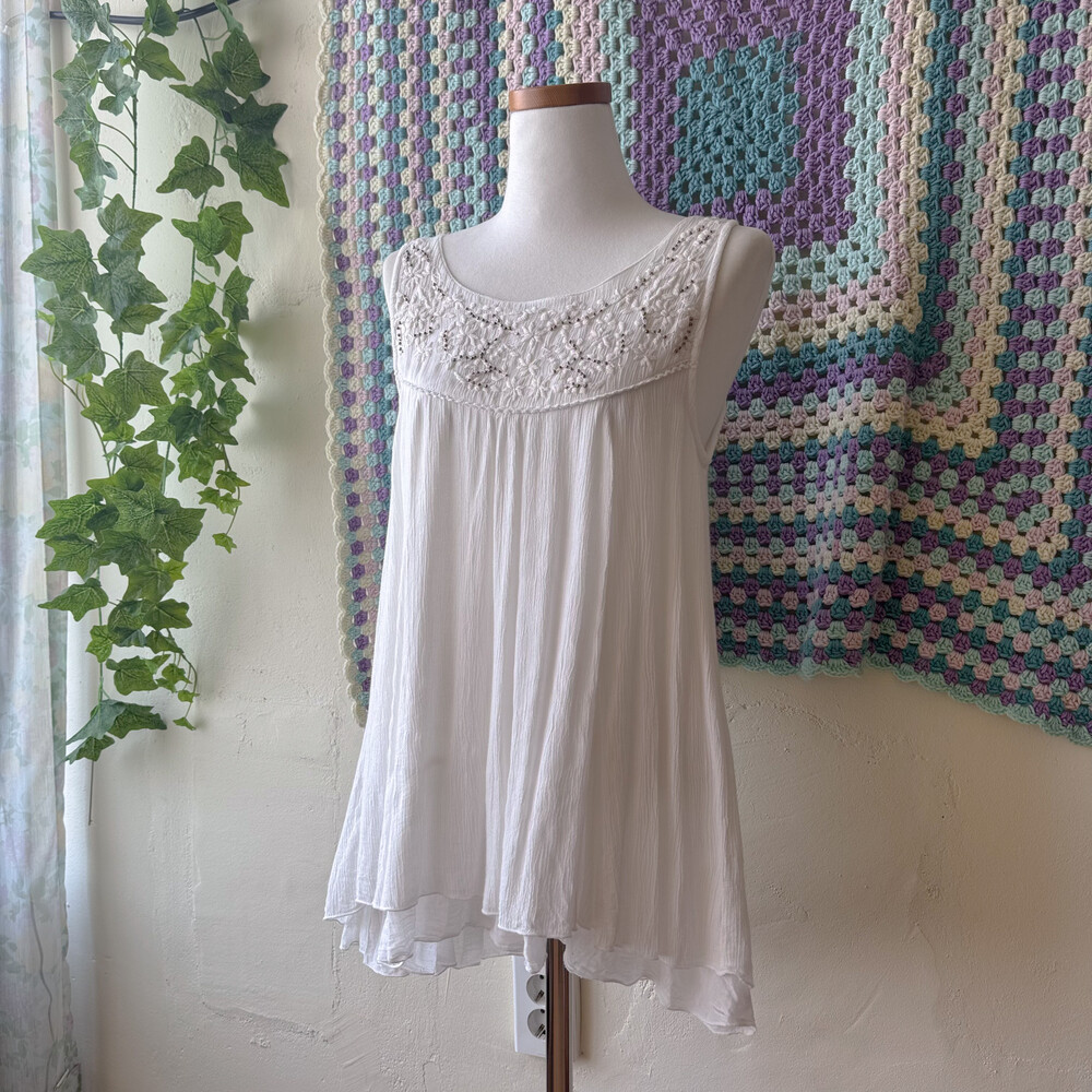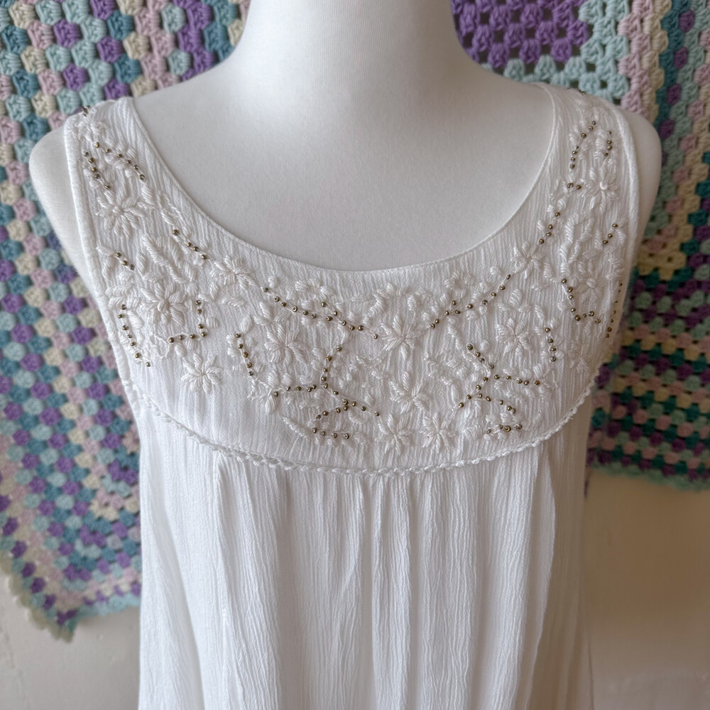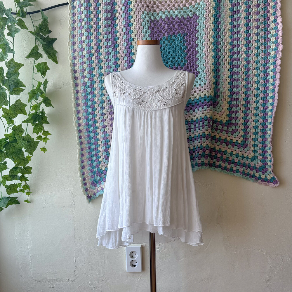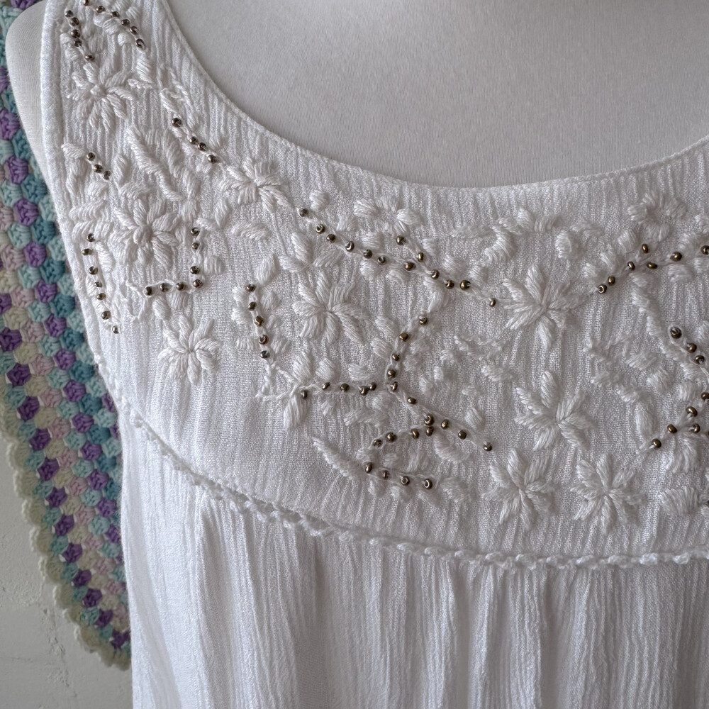 화이트 색감의 자수, 비즈 포인트 튜닉이에요
