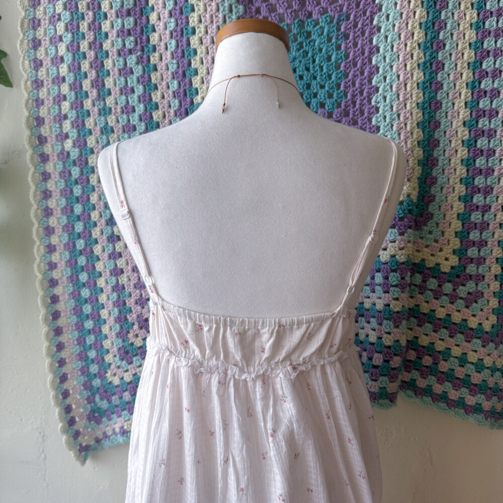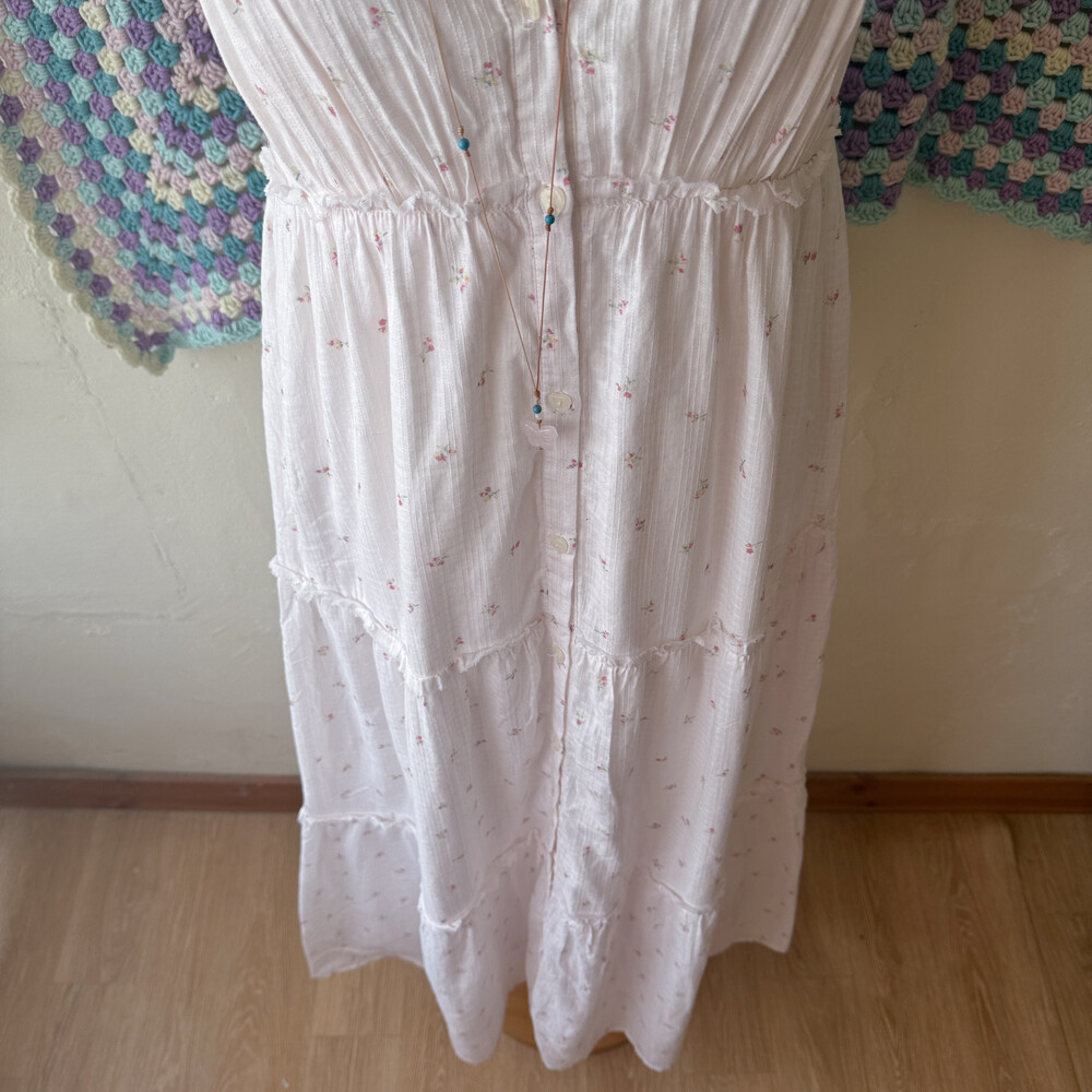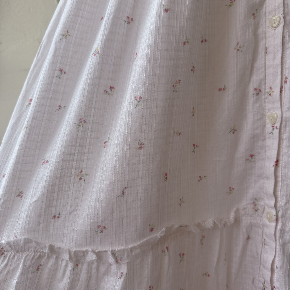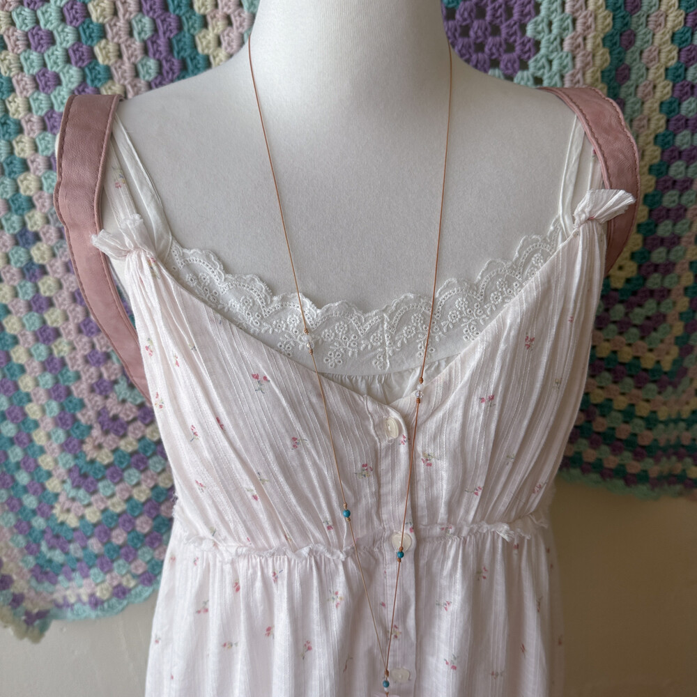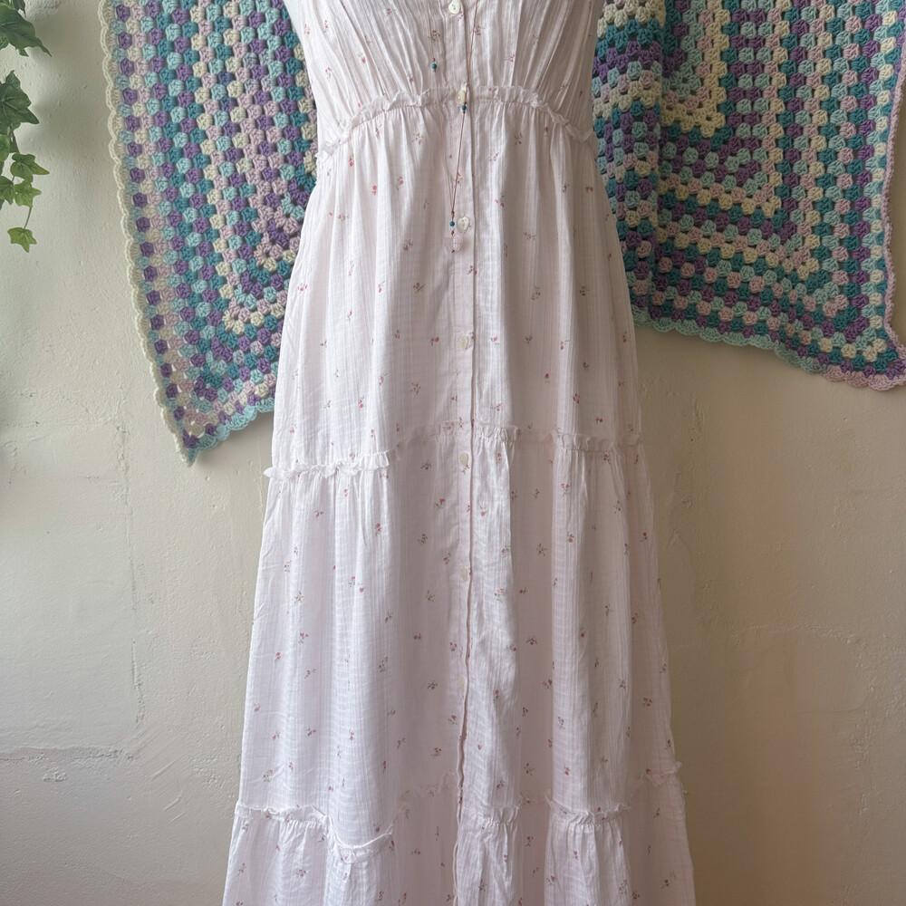 핑크가 한 방울 들어간 밀키한 색감의 잔꽃 끈원피스예요