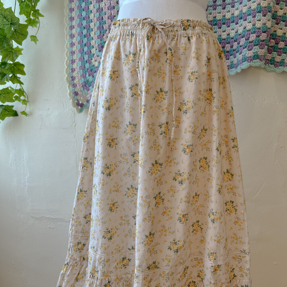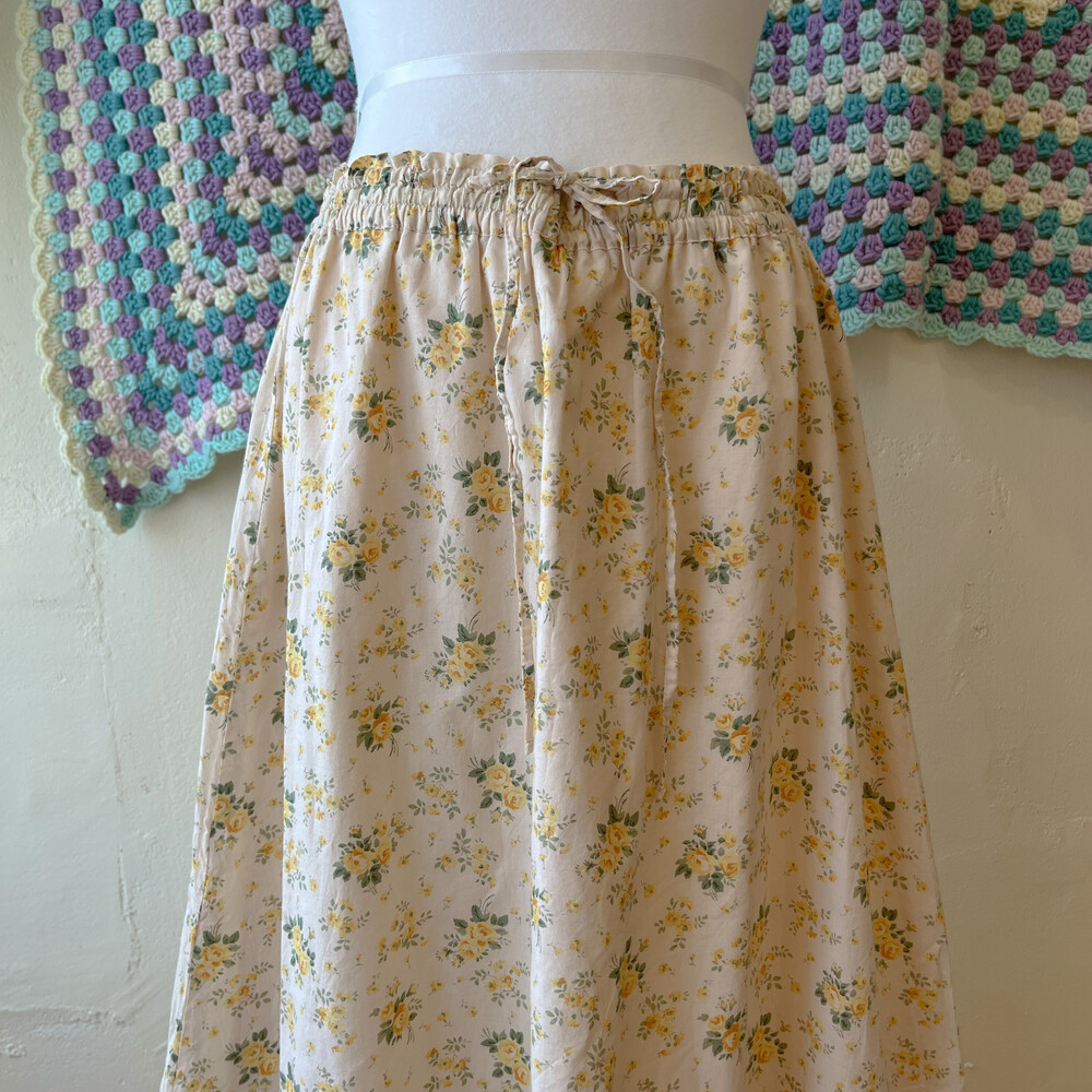 노랑 꽃무늬의 코튼 롱스커트예요