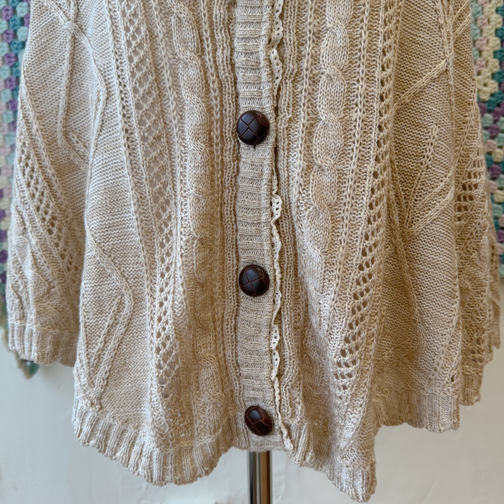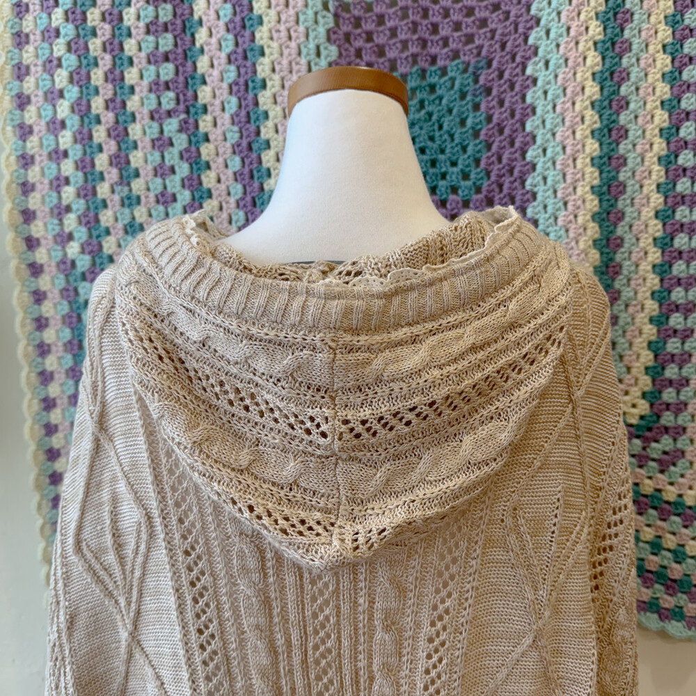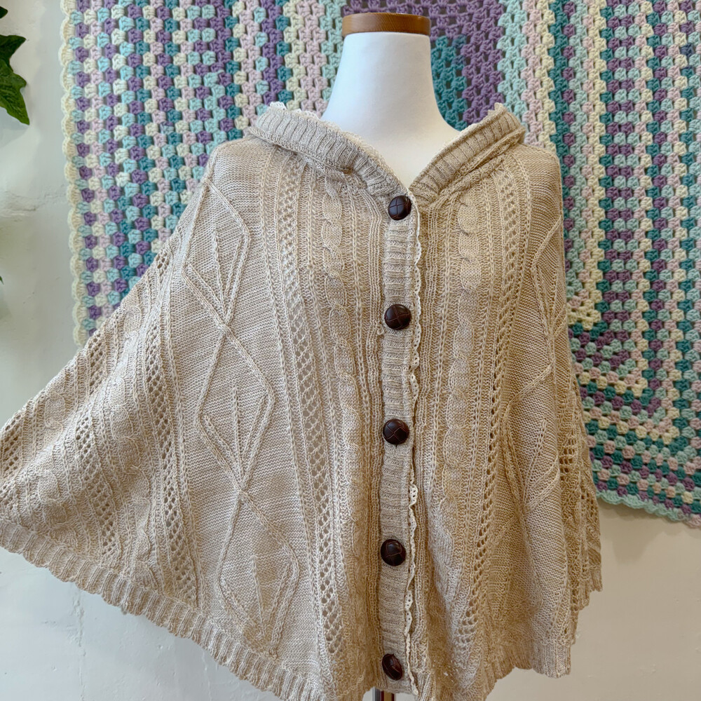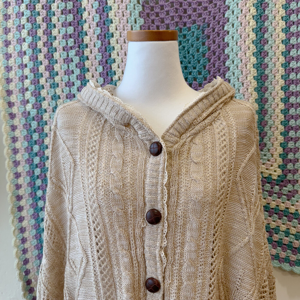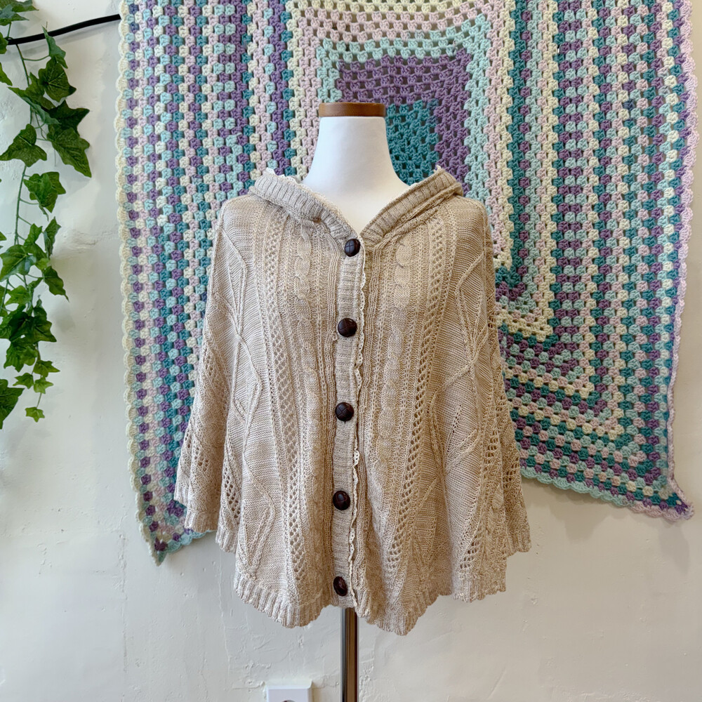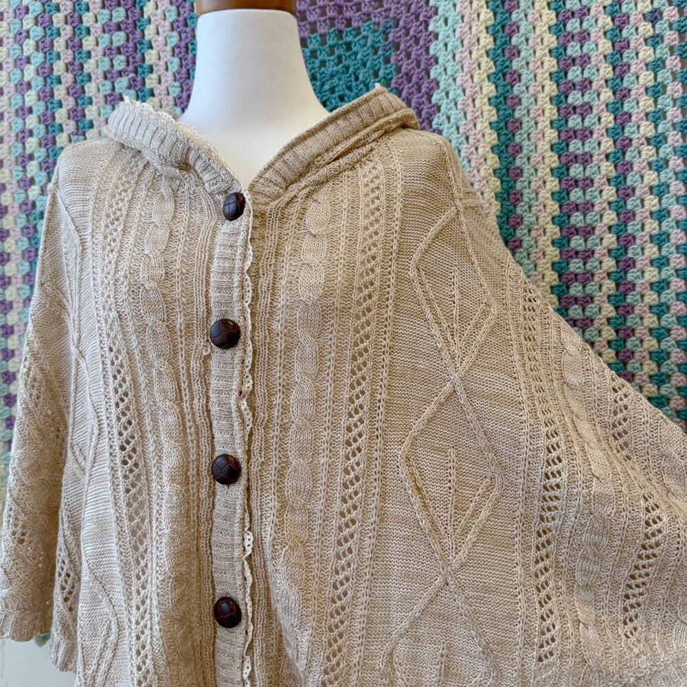 베이지 색감의 후드 아가일 판초(케이프)예요