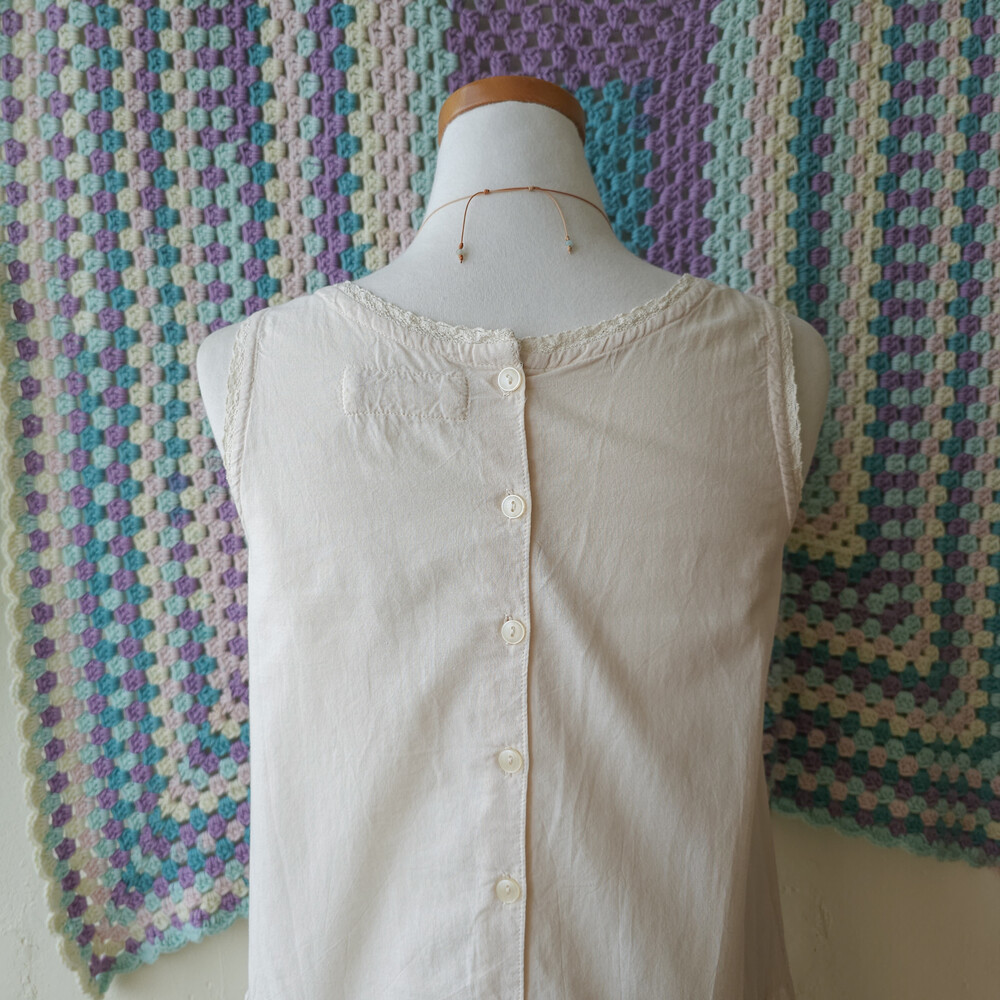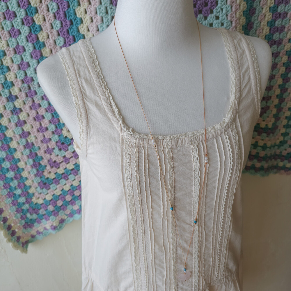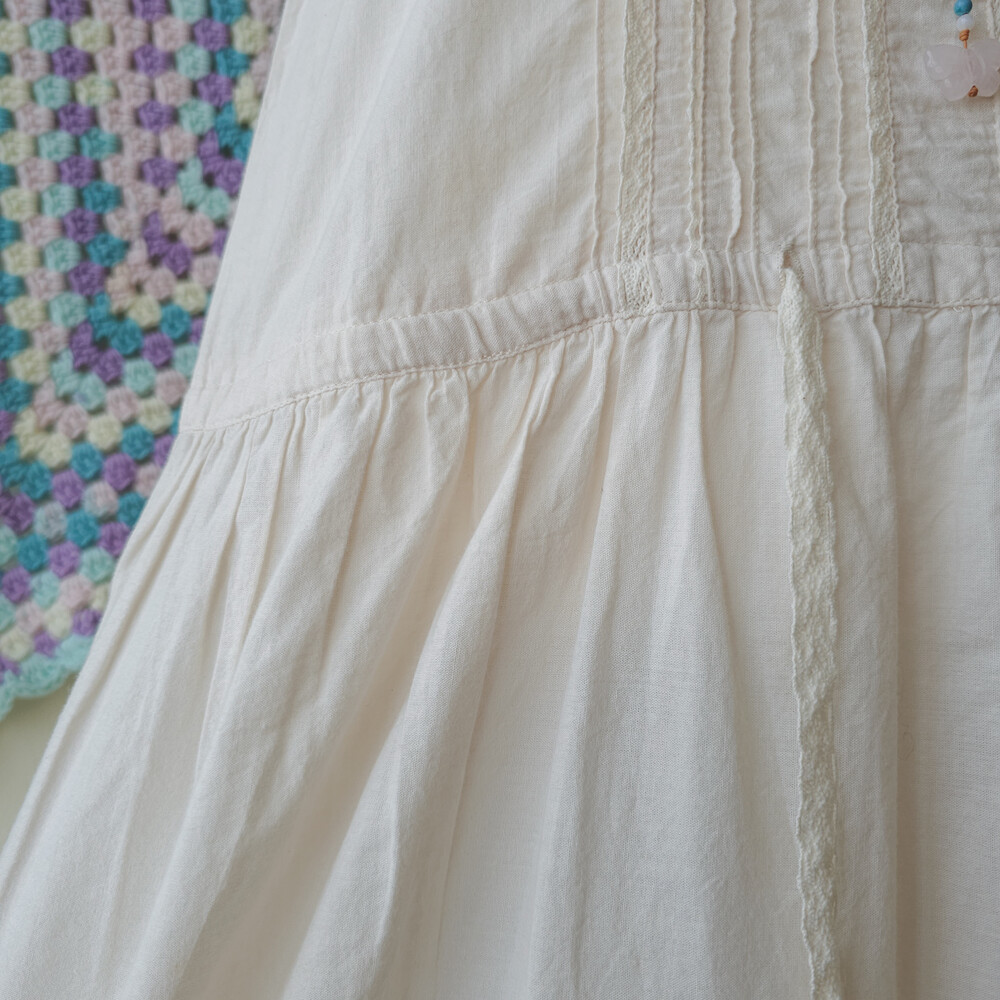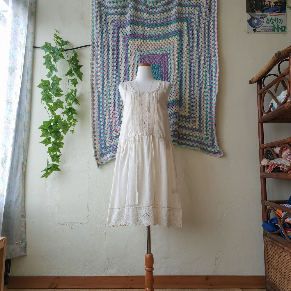 백버튼 디자인에 핀턱과 스트랩이 레이스로 디자인되어 있는