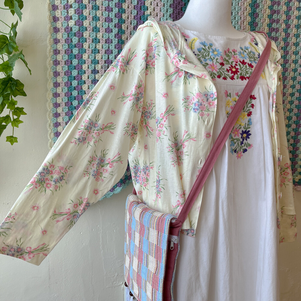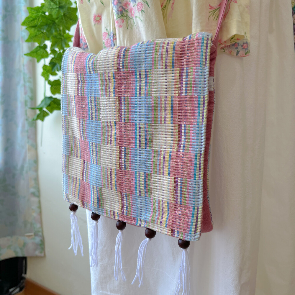 pink&blue square tassel cross bag