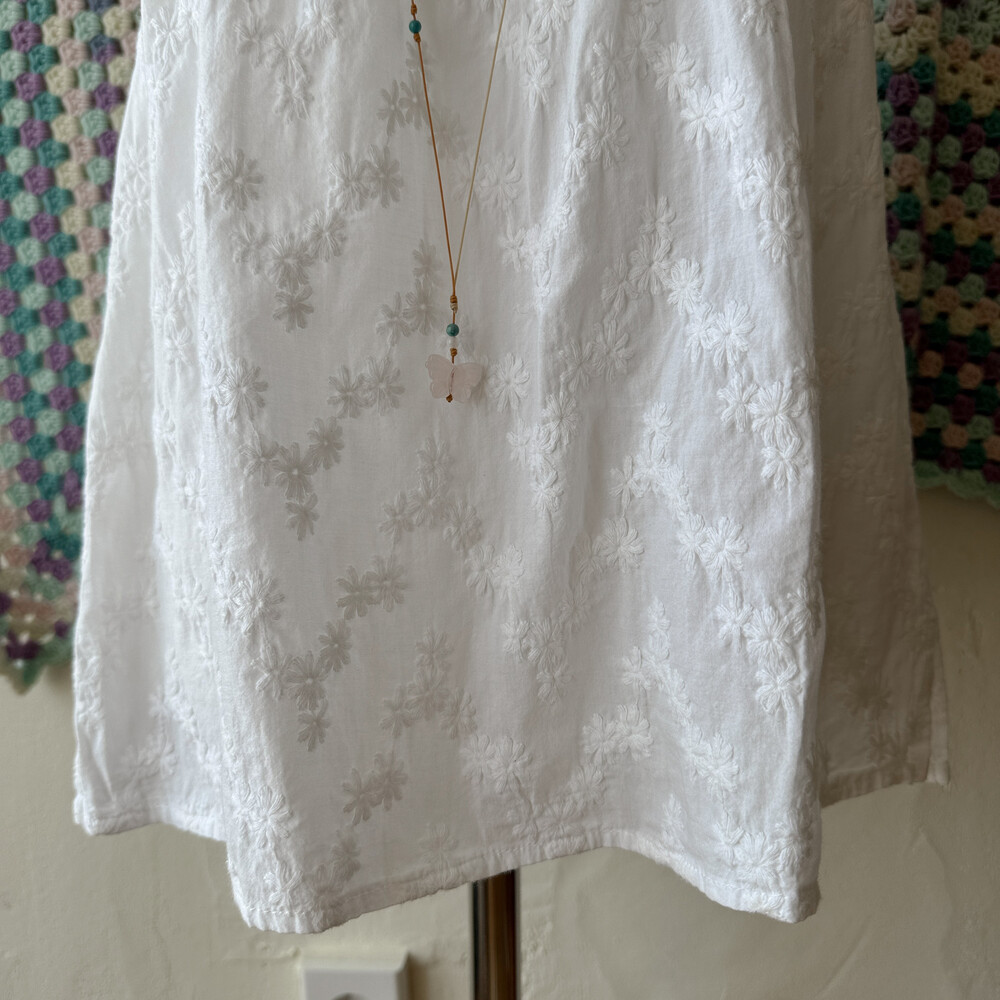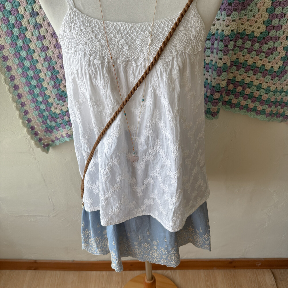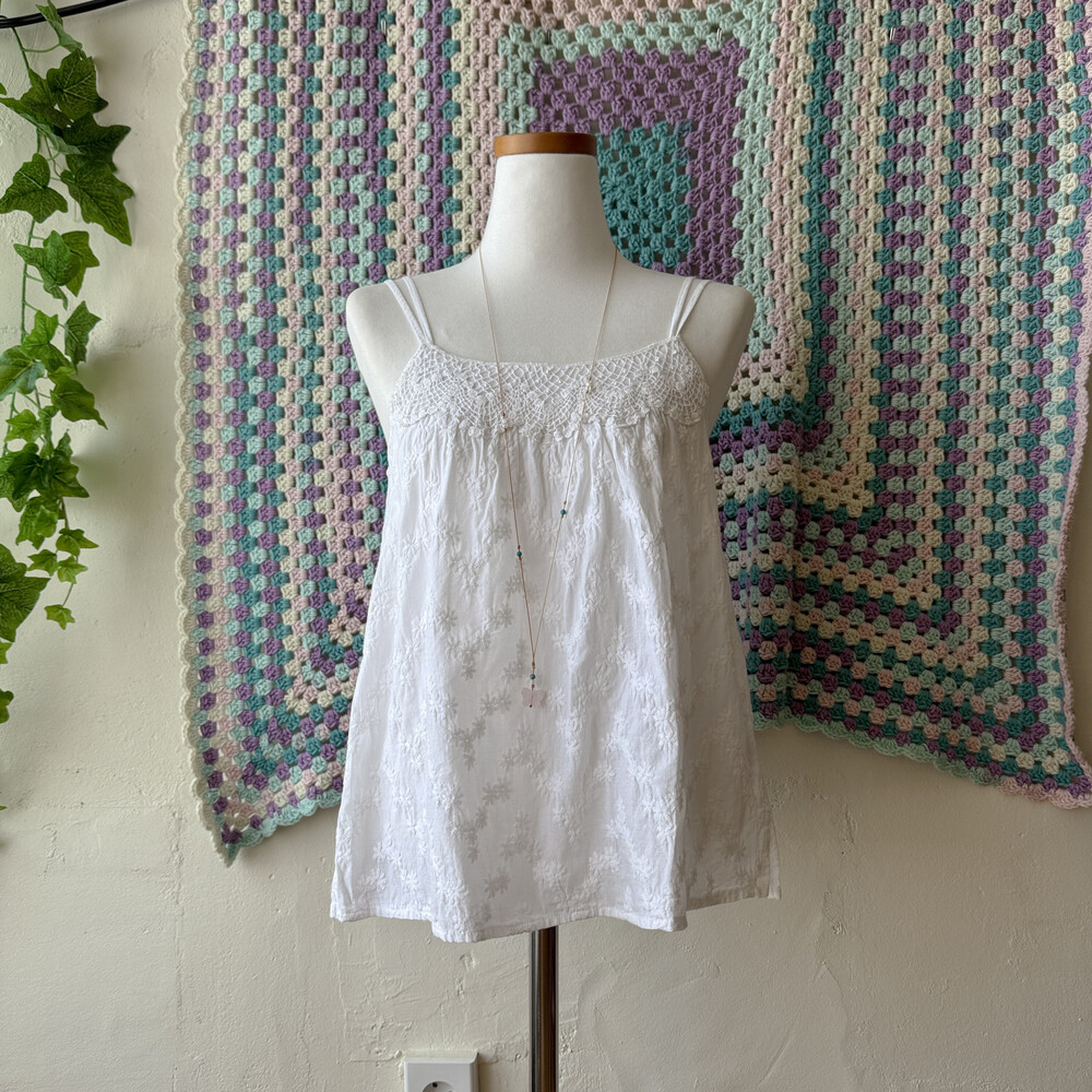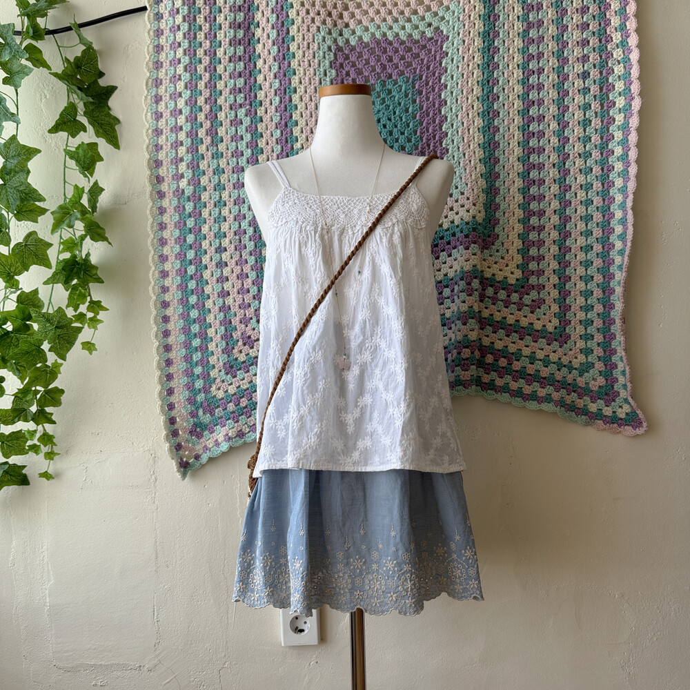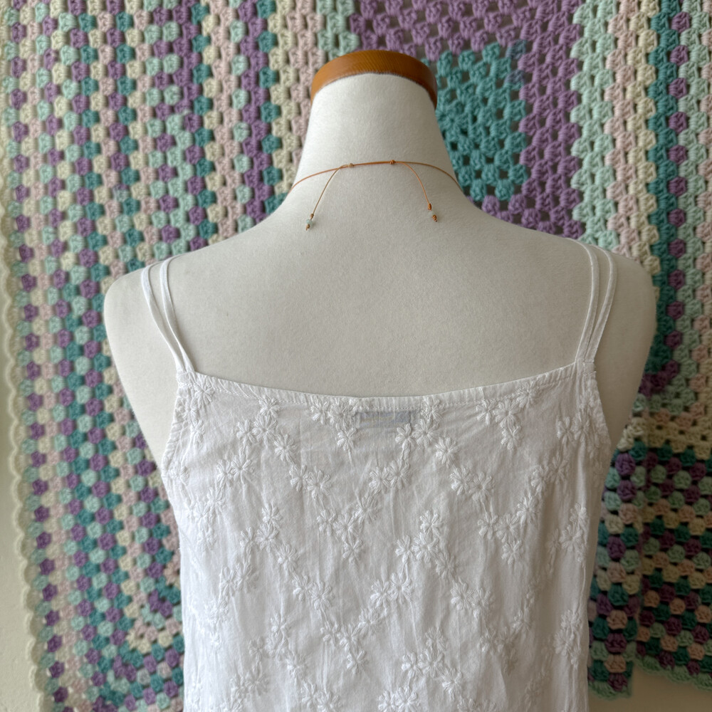 white embroidery 2 strap sleeveless bl