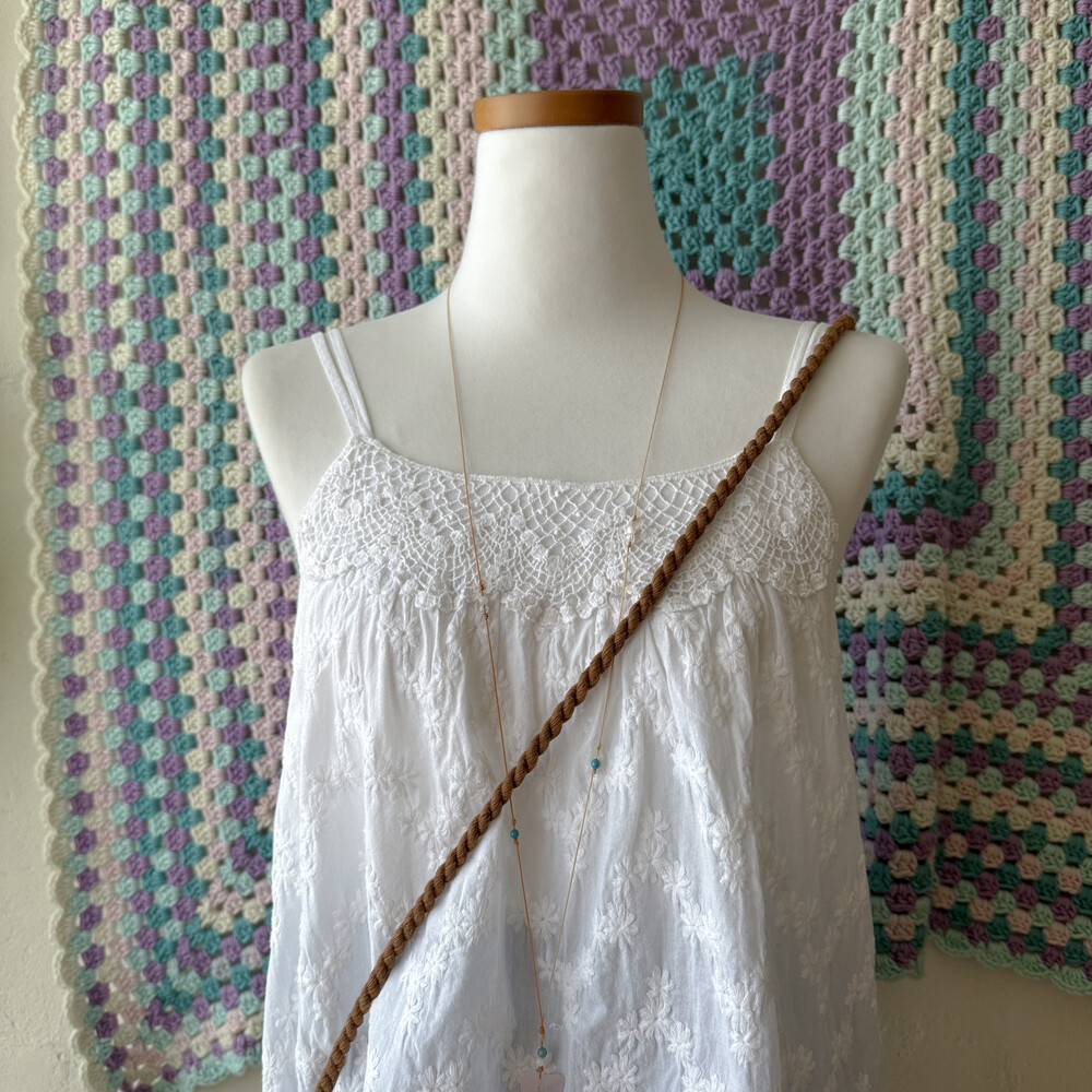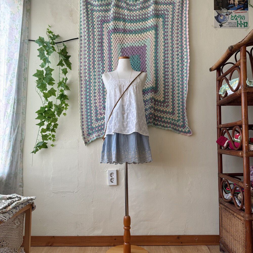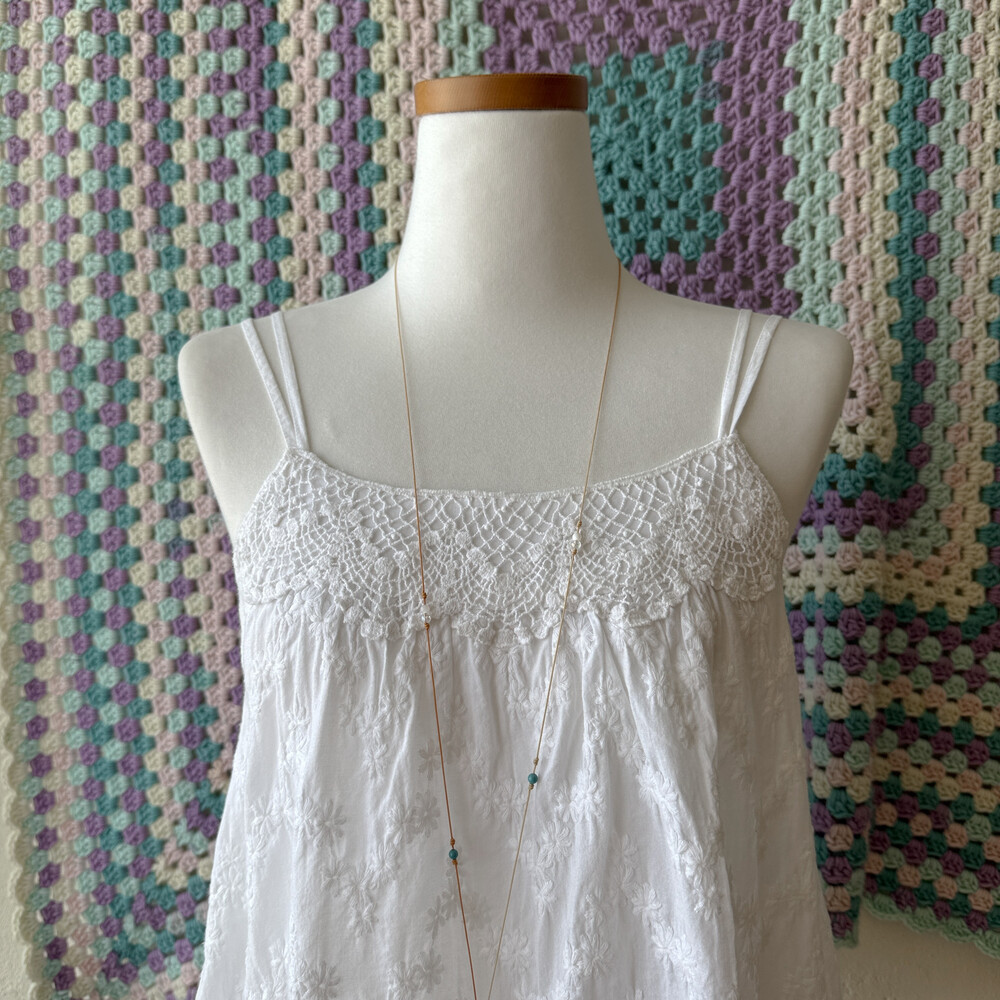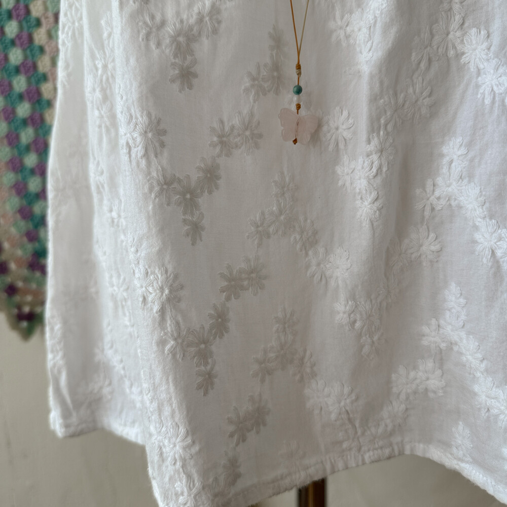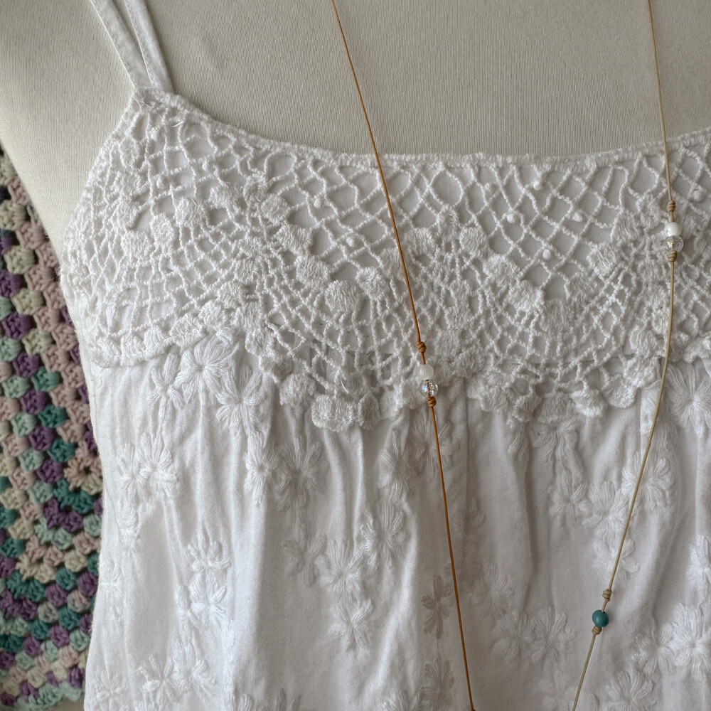 white embroidery 2 strap sleeveless bl