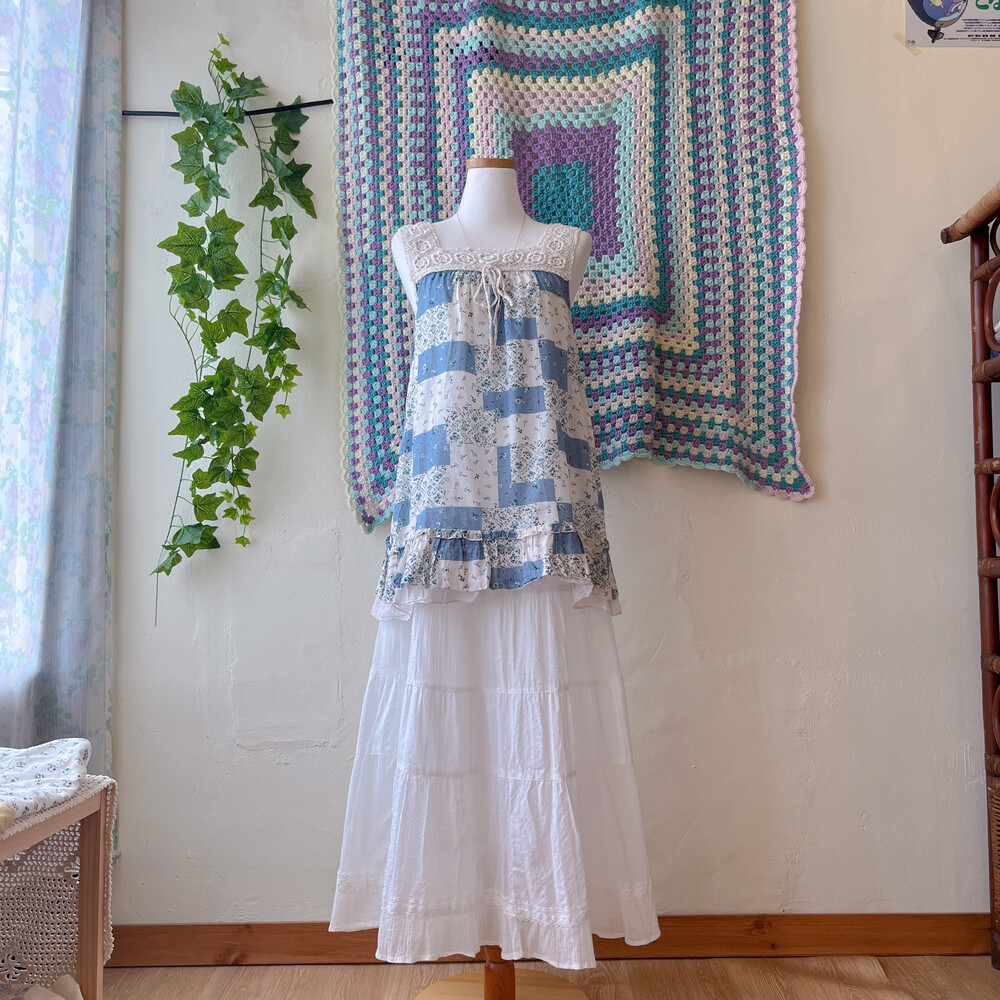 웜한 블루 색감의 민소매 코튼 튜닉이에요